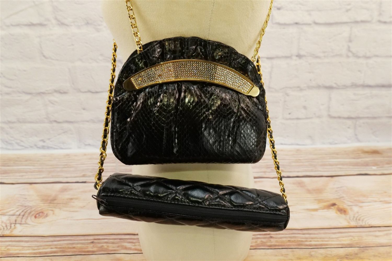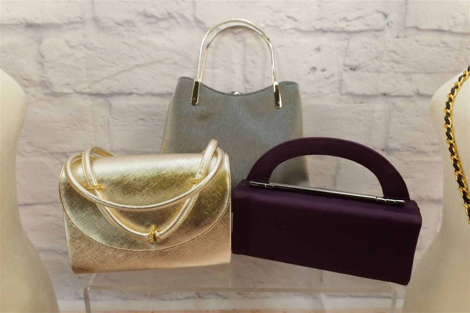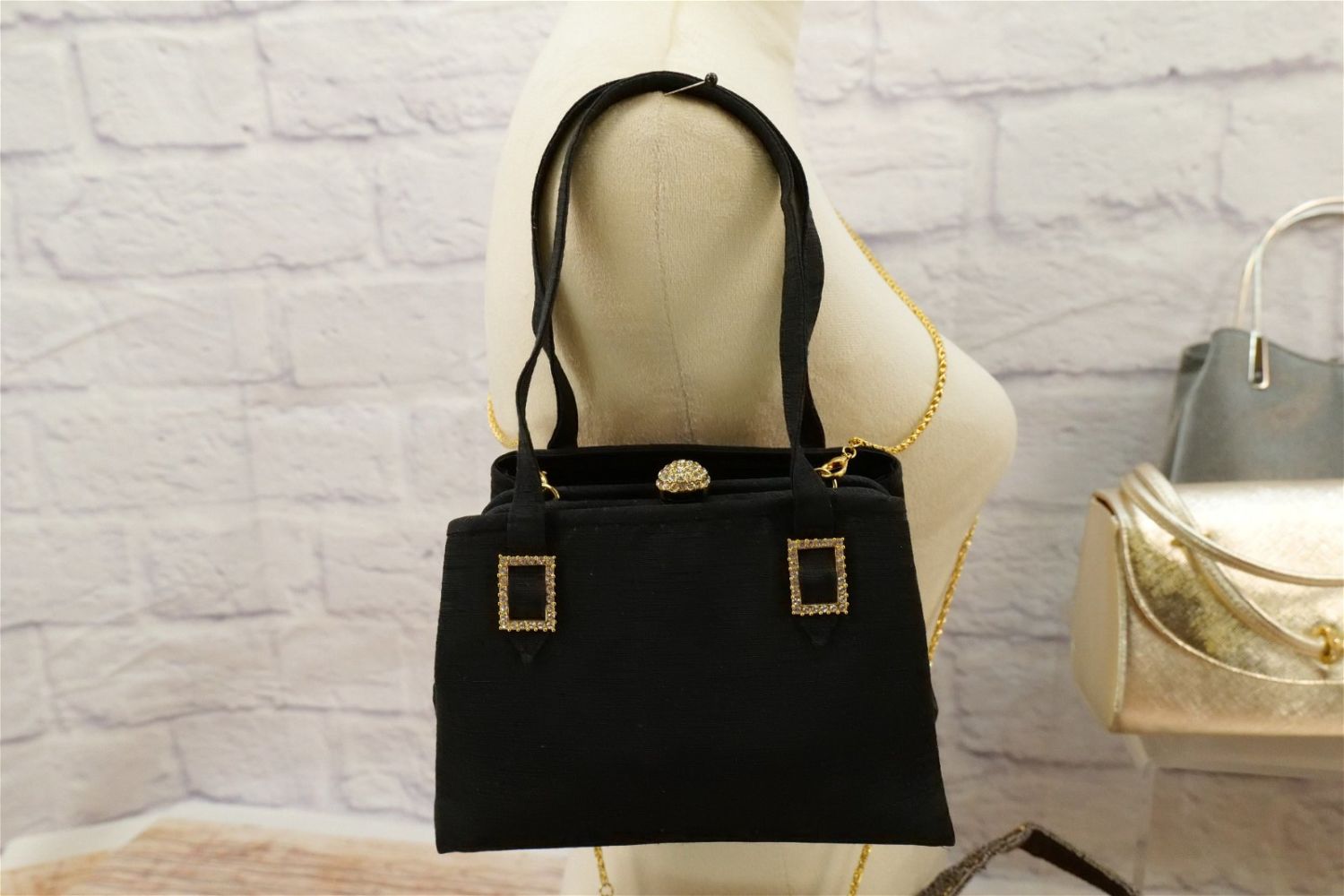 Lot of Evening Bags including many metallic cloth bags, rhinestone accent and beaded bags. Many French bags and other makers such as Inge Christopher, Lewis and More. Some come with dust bags. All invoices must be paid within 24 hours of the sale. We offer multiple shipping options besides the Liveauctioneers Liveship quoted on this listing., We also offer Pick-Ups Friday, Saturday, and Monday immediately following the sale. BY APPOINTMENT ONLY.