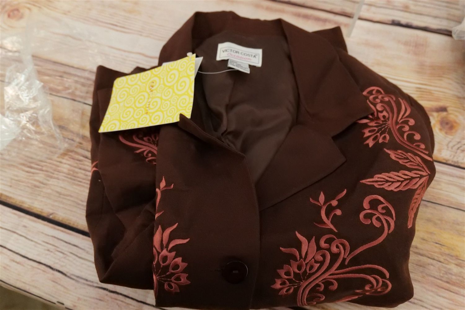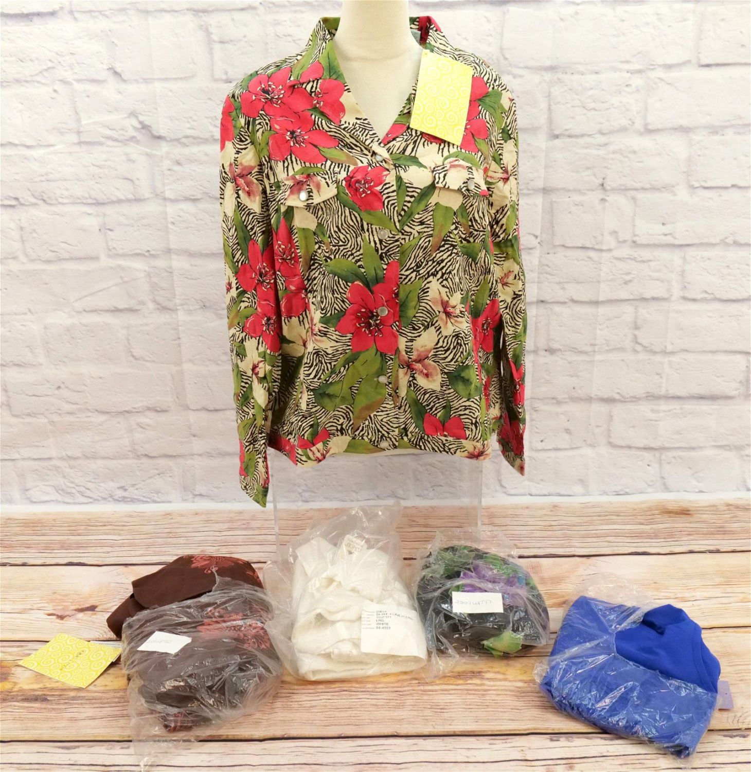 Large Lot of Ladies Designer Clothing from Designers such as Hot in Hollywood, Victor Costa, Signatures by Jeffrey Banks, and NT Norm Thompson. All size Large. Lot includes Tunics, Blazer, Long Sleeve Shirts and Long Sleeve Button Down. Various Colors and Designs. All invoices must be paid within 24 hours of the sale. We offer multiple shipping options besides the Liveauctioneers Liveship quoted on this listing., We also offer Pick-Ups Friday, Saturday, and Monday immediately following the sale. BY APPOINTMENT ONLY.