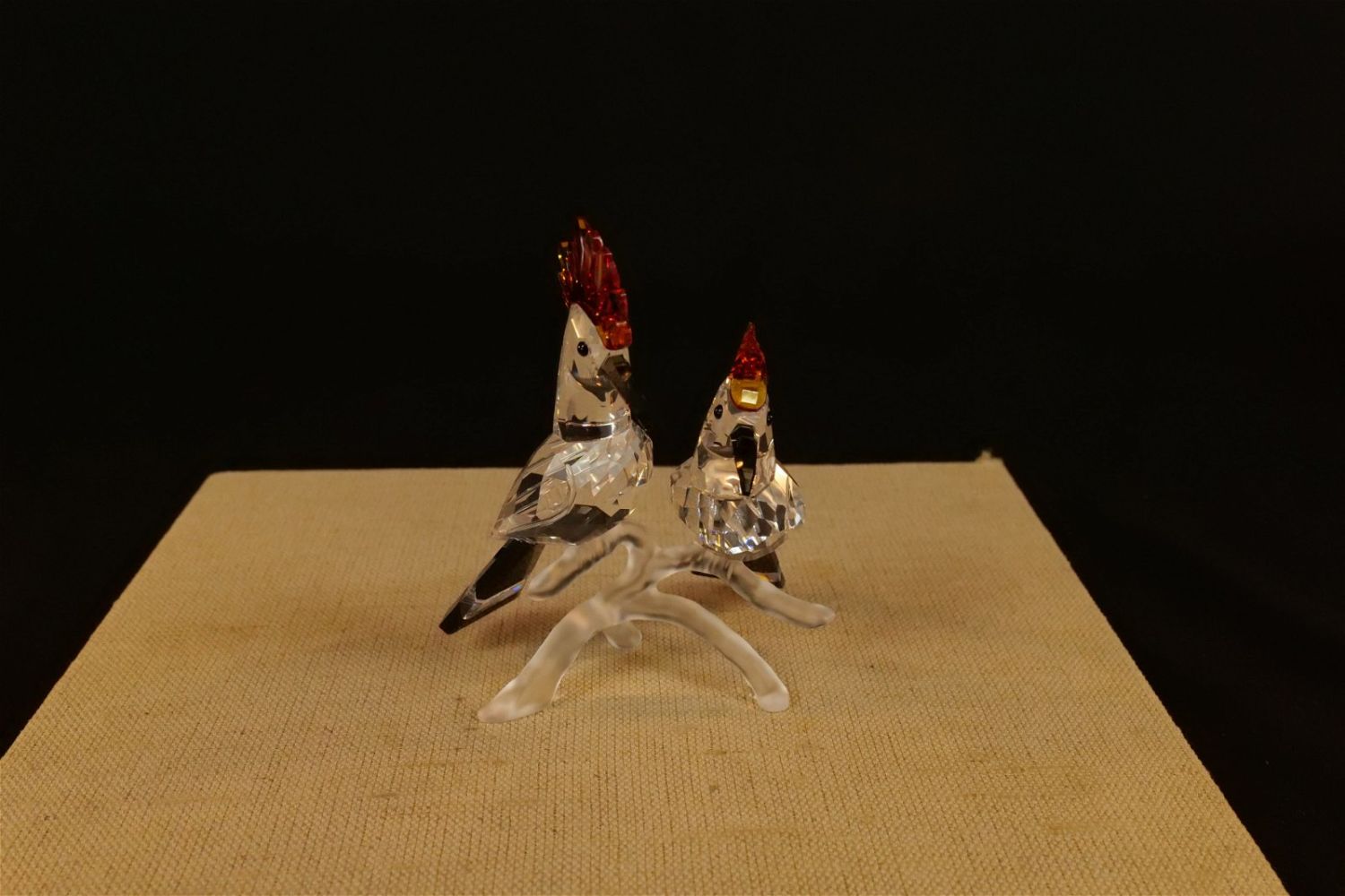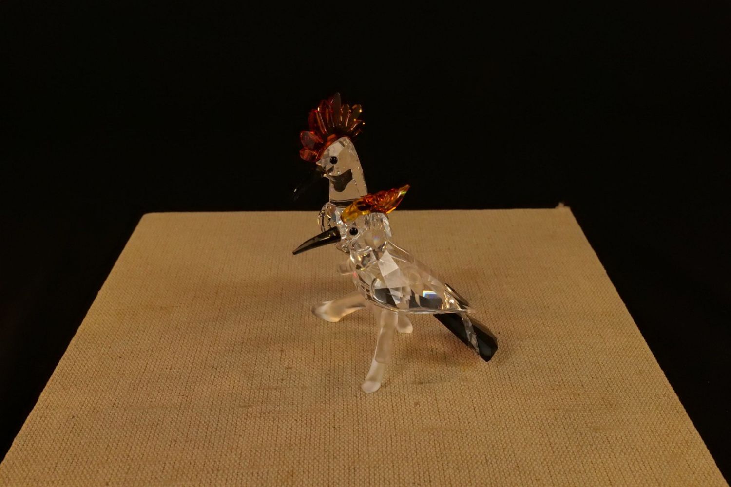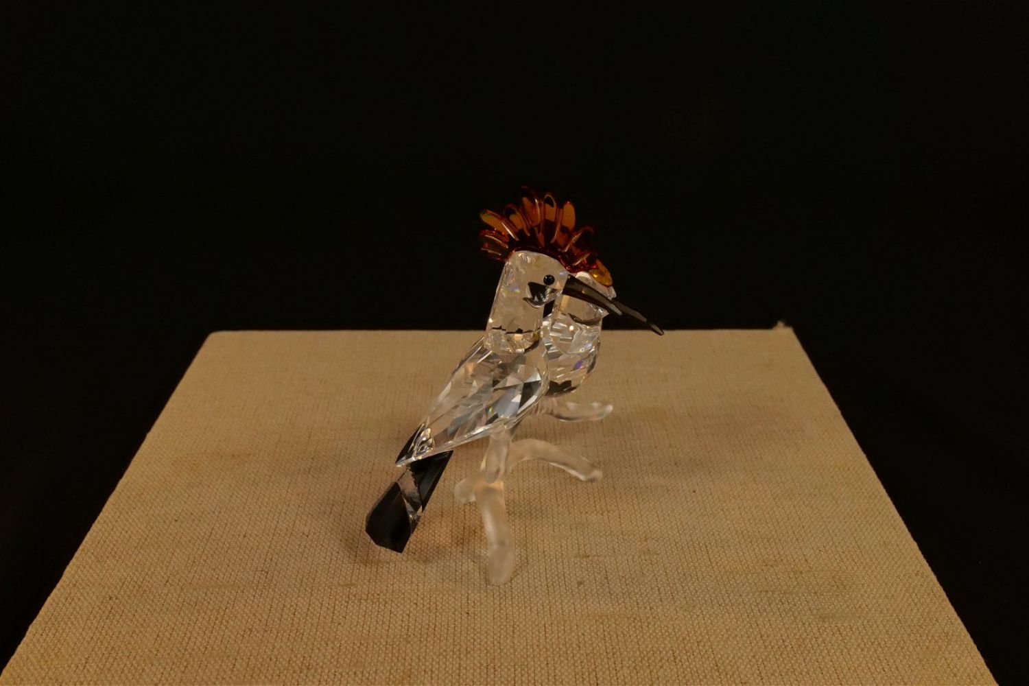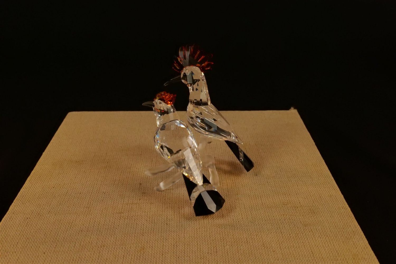 Swarovski Crystal Hoopoes Bird Figurine. Item #0925080. Retired. Birds feature Black Diamond Crystal Beaks with Topaz Crowns and Jet and Clear Crystal Tails. Measures 4" tall. Comes with original box. All invoices must be paid within 24 hours of the sale. We offer multiple shipping options besides the Liveauctioneers Liveship quoted on this listing. We also offer Pick-Ups Thursday, Friday, Saturday, and Monday immediately following the sale. BY APPOINTMENT ONLY.