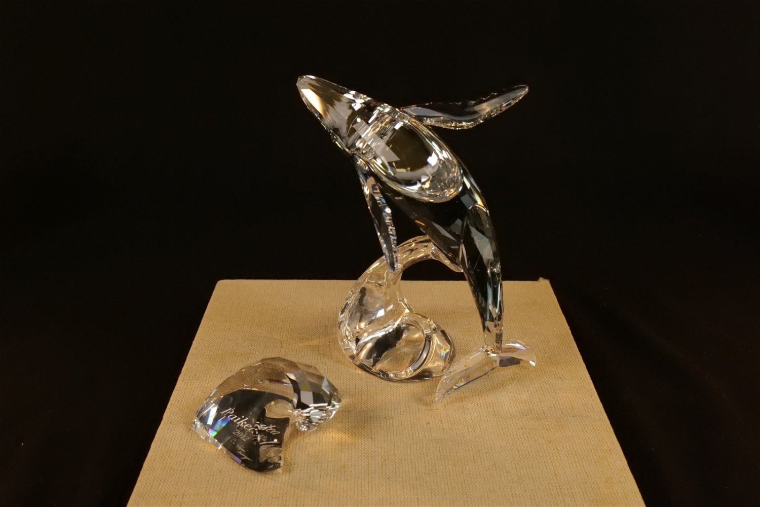 Swarovski Crystal Paikea Humpback Whale Figurine – SCS 2012 Annual Edition. Item #1095228. Comes as a set with Plaque. Whale measures approx. 6.5" tall x 5.5" long. Comes in original box. All invoices must be paid within 24 hours of the sale. We offer multiple shipping options besides the Liveauctioneers Liveship quoted on this listing. We also offer Pick-Ups Thursday, Friday, Saturday, and Monday immediately following the sale. BY APPOINTMENT ONLY.