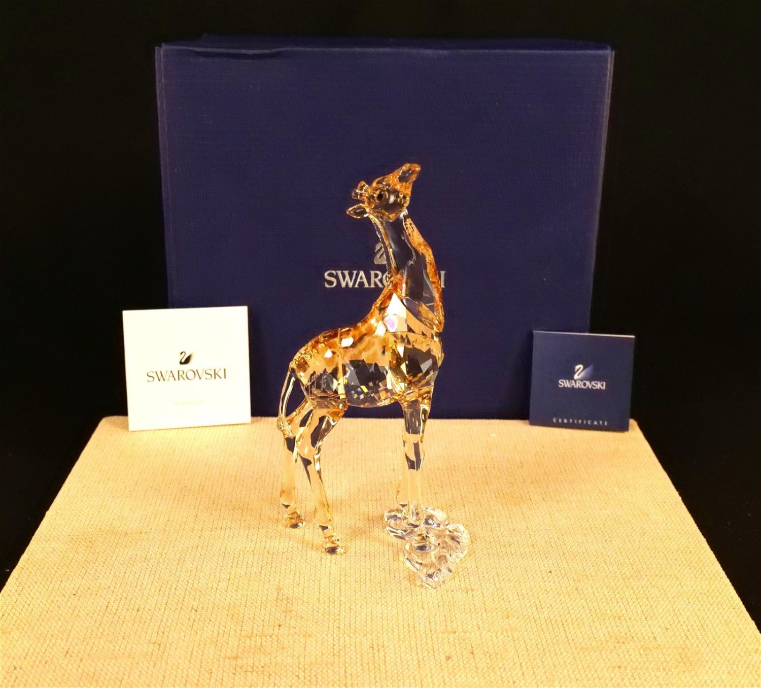 Swarovski Crystal Mudiwa Giraffe Baby Figurine – SCS 2018. Item #5302151. Measures 5" tall x 3" long. Comes in original box. All invoices must be paid within 24 hours of the sale. We offer multiple shipping options besides the Liveauctioneers Liveship quoted on this listing. We also offer Pick-Ups Thursday, Friday, Saturday, and Monday immediately following the sale. BY APPOINTMENT ONLY.