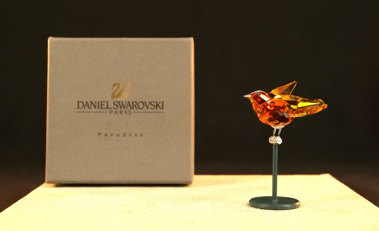 Swarovski Crystal Paradise Bamoa Sun Bird Figurine. Item #284067. Comes on metal base. Measures 3" tall x 2.5" long. Comes with original box. All invoices must be paid within 24 hours of the sale. We offer multiple shipping options besides the Liveauctioneers Liveship quoted on this listing. We also offer Pick-Ups Thursday, Friday, Saturday, and Monday immediately following the sale. BY APPOINTMENT ONLY.