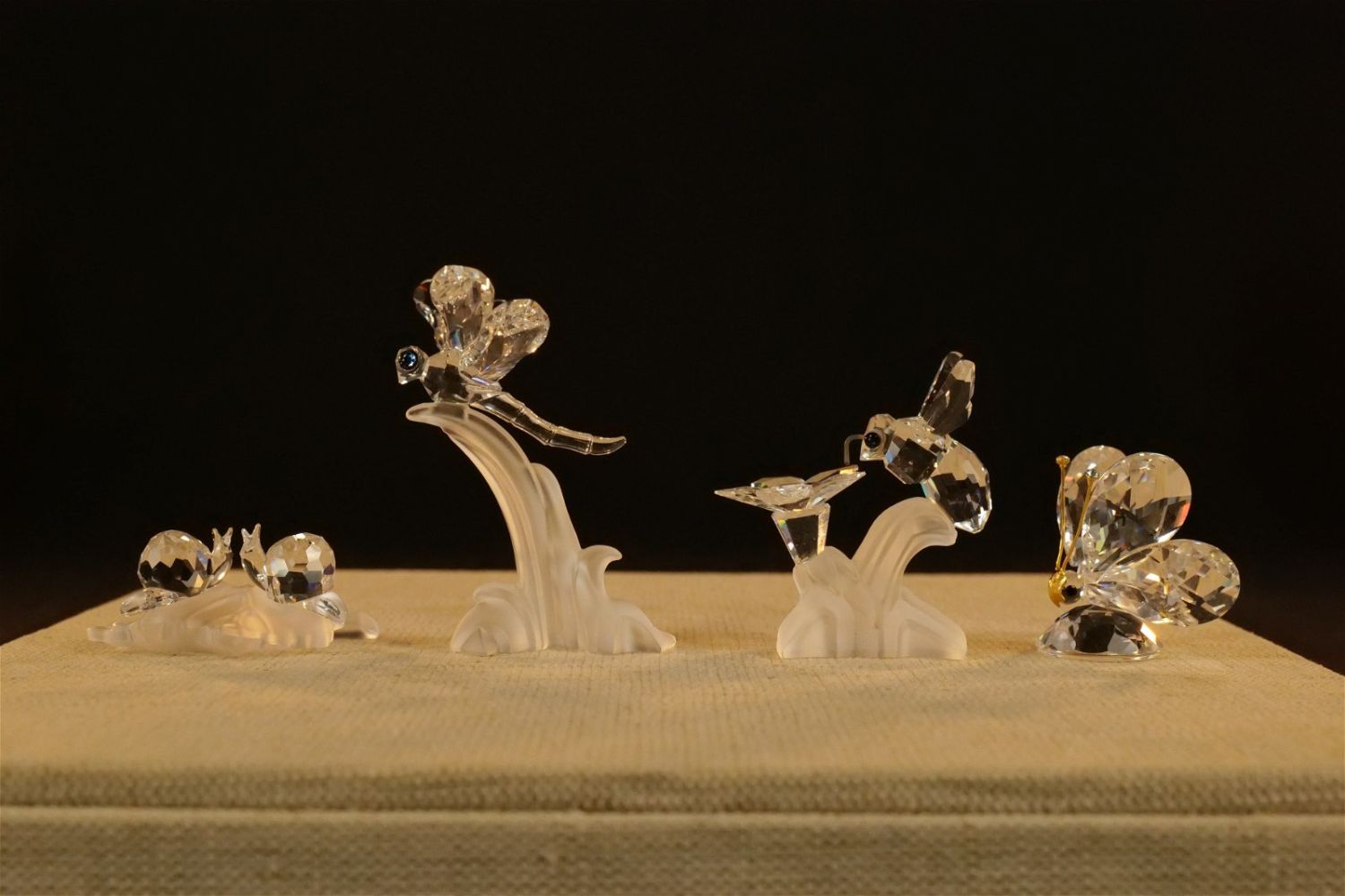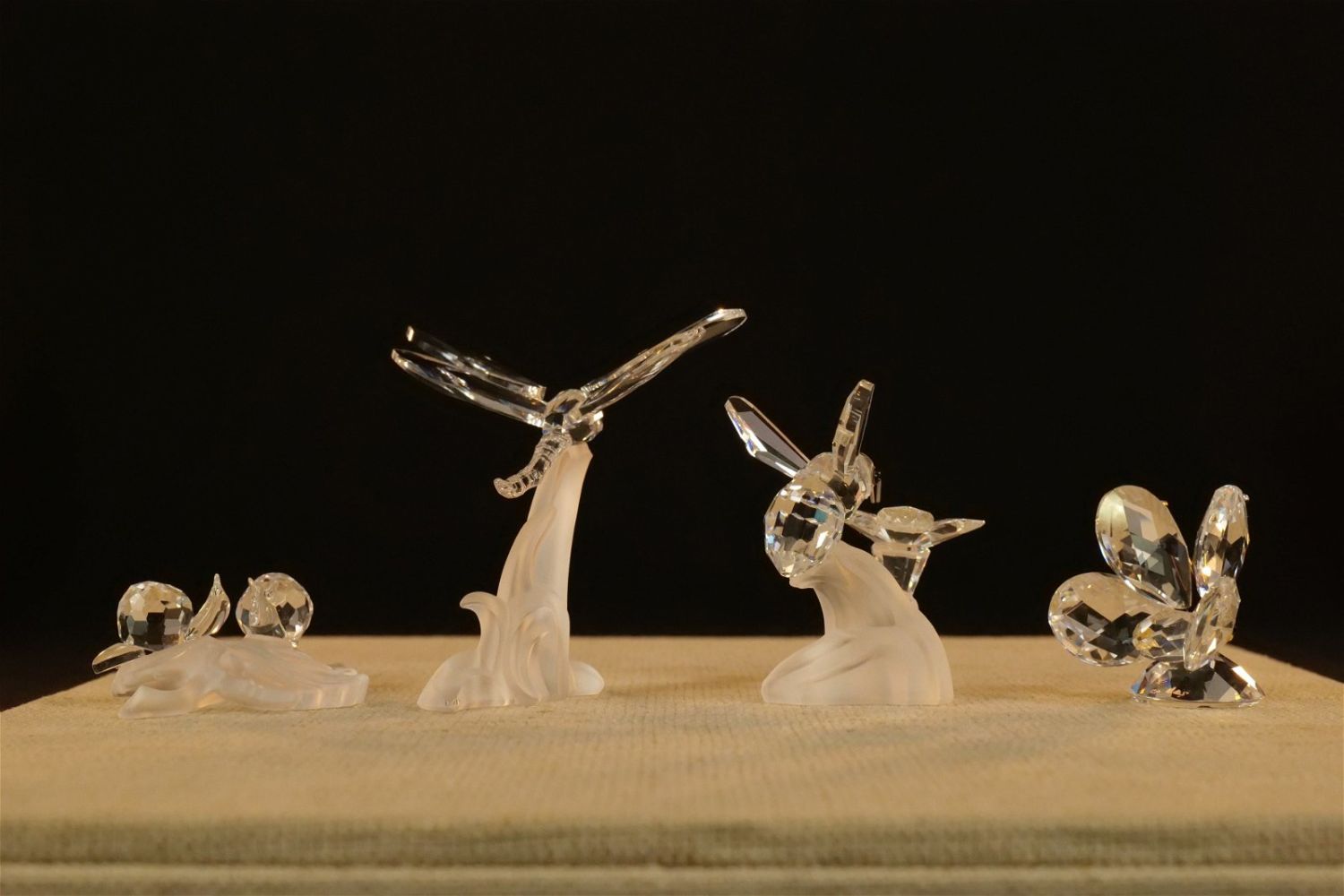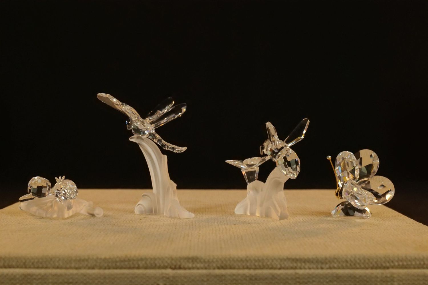 Lot of 4 Swarovski Crystal Figurines including Dragonfly on Frosted Branch #7615, Bumble Bee on Flower #166185 – Not with original box but comes with a box, Mini Butterfly #012774, and Baby Snails on Leaf #268196. Largest measures 2.5" tall x 2.5" wingspan. All except the bee comes with original boxes. All invoices must be paid within 24 hours of the sale. We offer multiple shipping options besides the Liveauctioneers Liveship quoted on this listing. We also offer Pick-Ups Thursday, Friday, Saturday, and Monday immediately following the sale. BY APPOINTMENT ONLY.