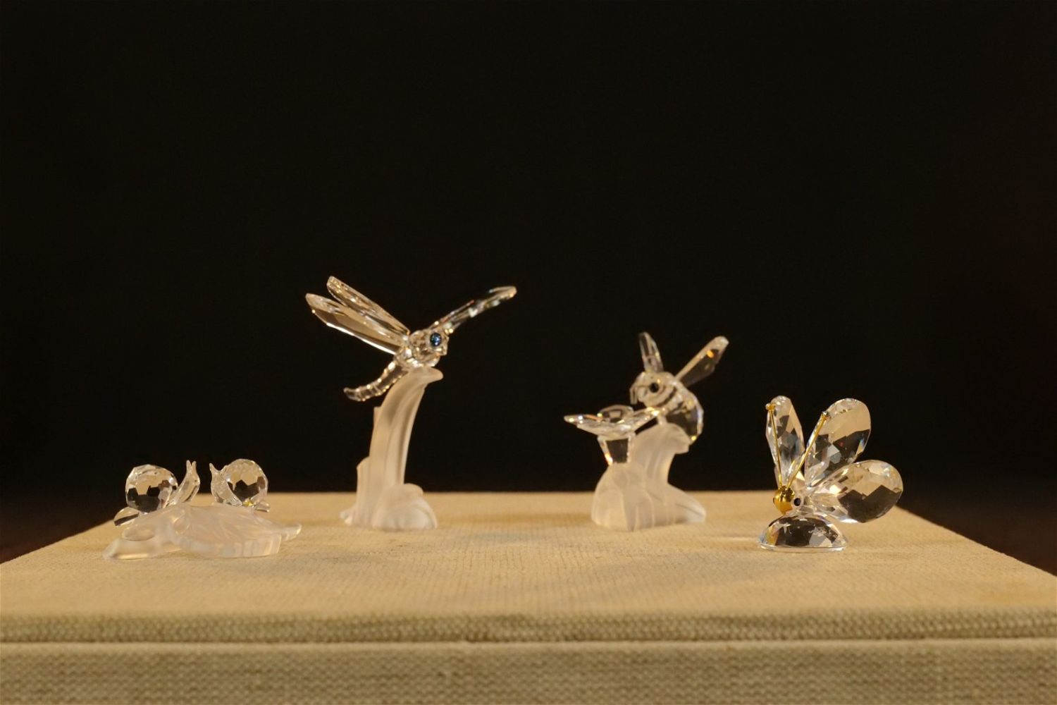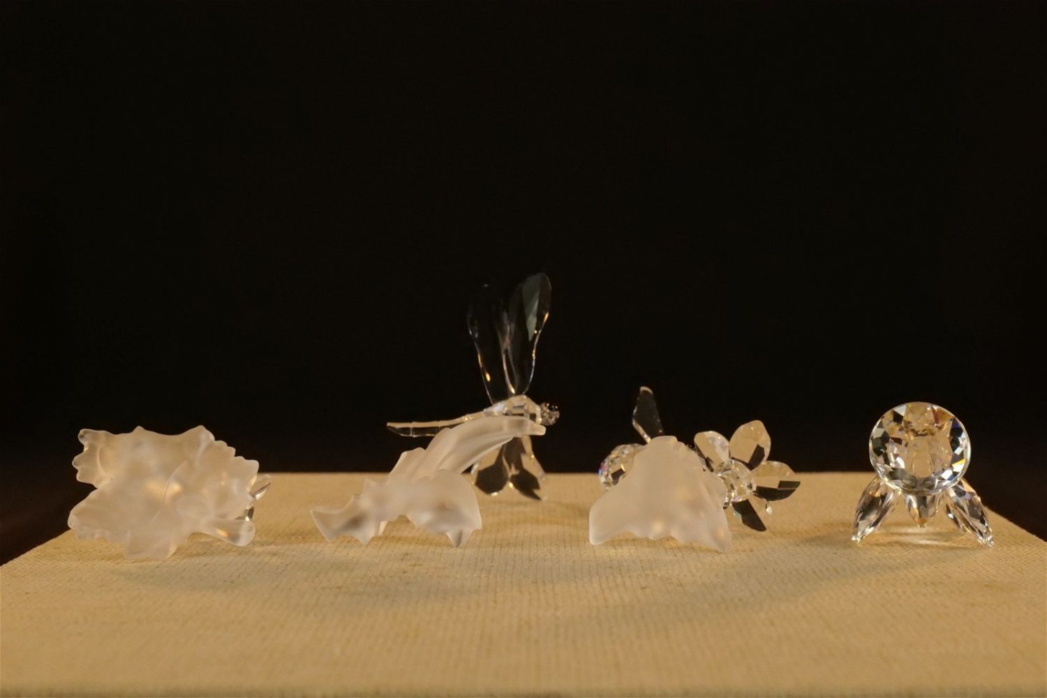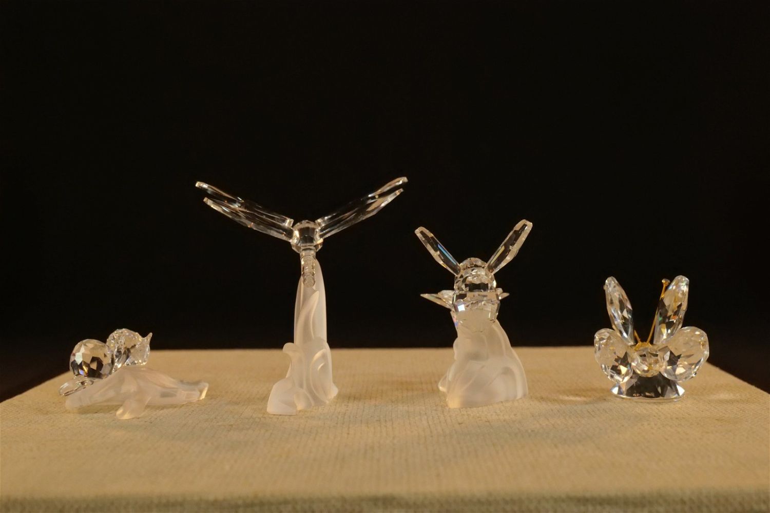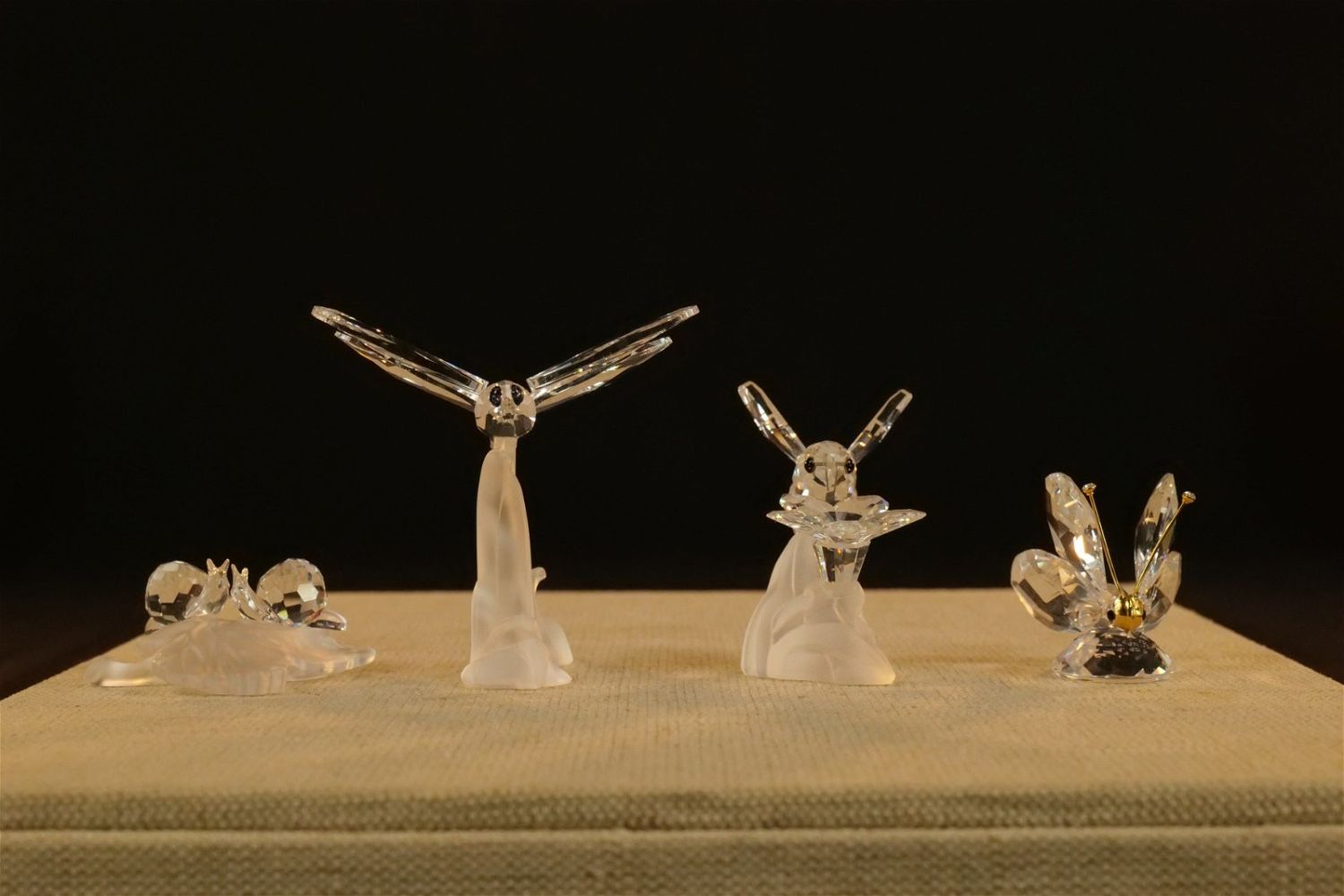 Lot of 4 Swarovski Crystal Figurines including Dragonfly on Frosted Branch #7615, Bumble Bee on Flower #166185 – Not with original box but comes with a box, Mini Butterfly #012774, and Baby Snails on Leaf #268196. Largest measures 2.5" tall x 2.5" wingspan. All except the bee comes with original boxes. All invoices must be paid within 24 hours of the sale. We offer multiple shipping options besides the Liveauctioneers Liveship quoted on this listing. We also offer Pick-Ups Thursday, Friday, Saturday, and Monday immediately following the sale. BY APPOINTMENT ONLY.