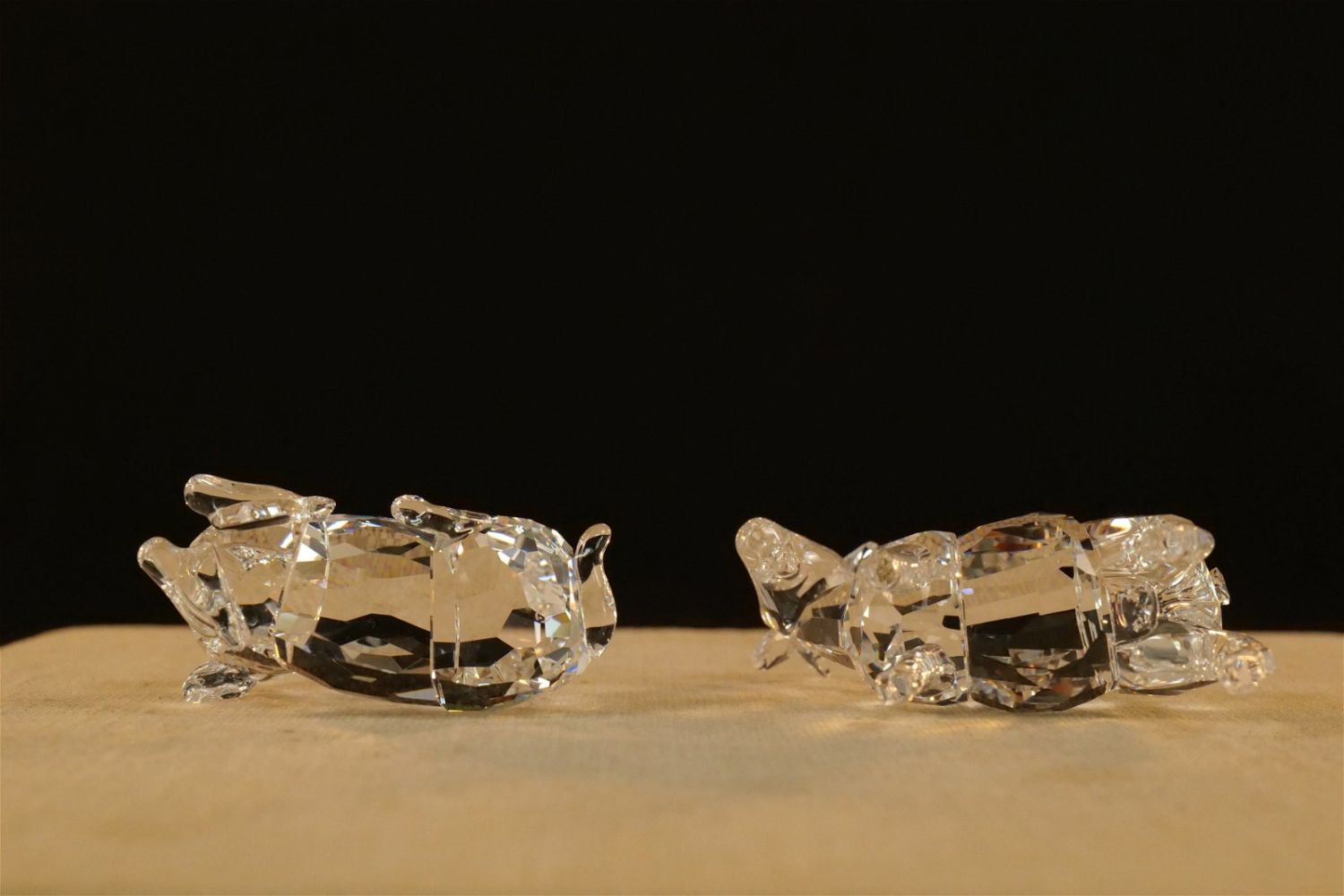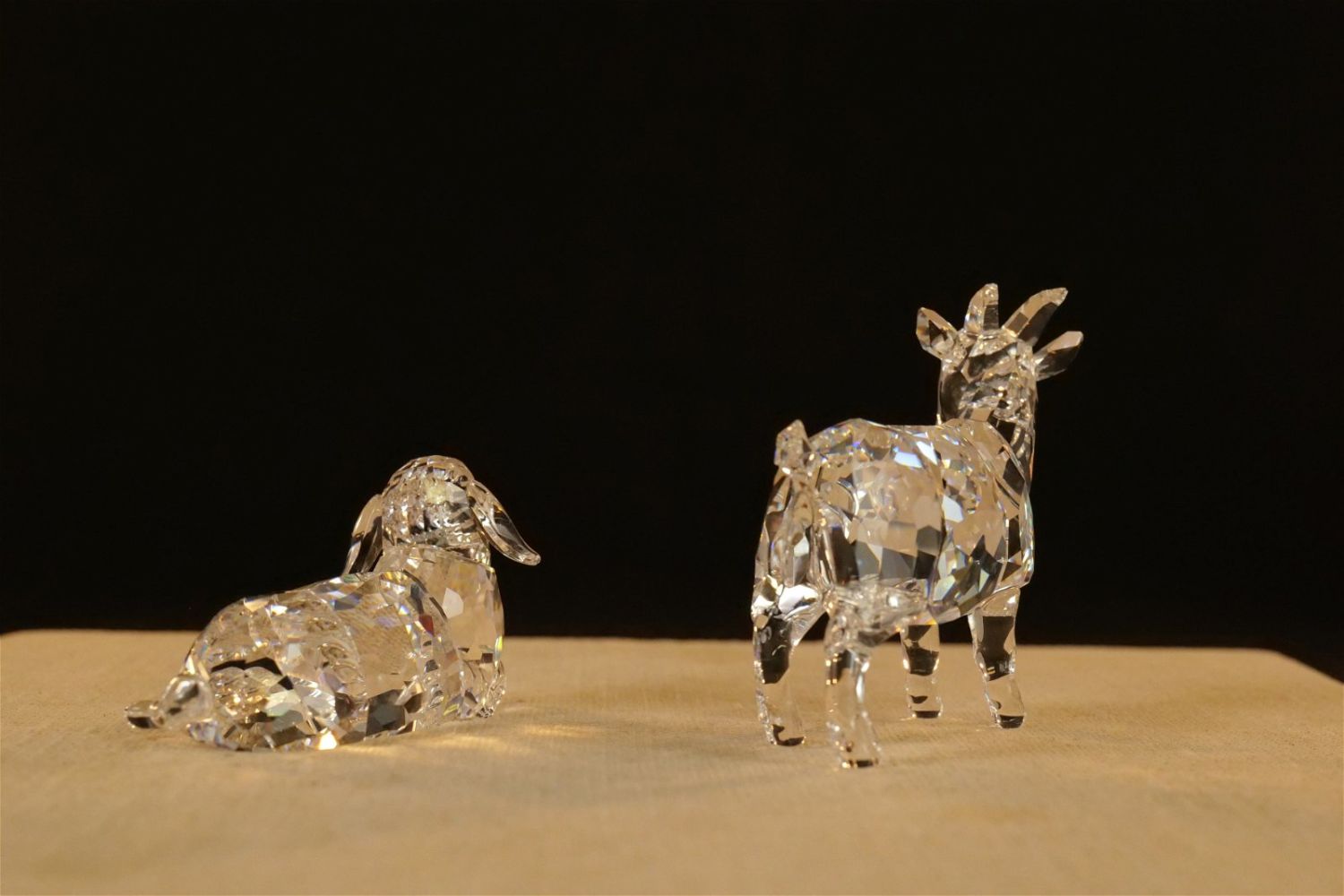 Lot of 2 Swarovski Crystal Farm Animal Figurines including Goat #897351 and Mother Sheep Laying #631437. Largest measures 2.5" tall. Both come in original packaging. All invoices must be paid within 24 hours of the sale. We offer multiple shipping options besides the Liveauctioneers Liveship quoted on this listing. We also offer Pick-Ups Thursday, Friday, Saturday, and Monday immediately following the sale. BY APPOINTMENT ONLY.