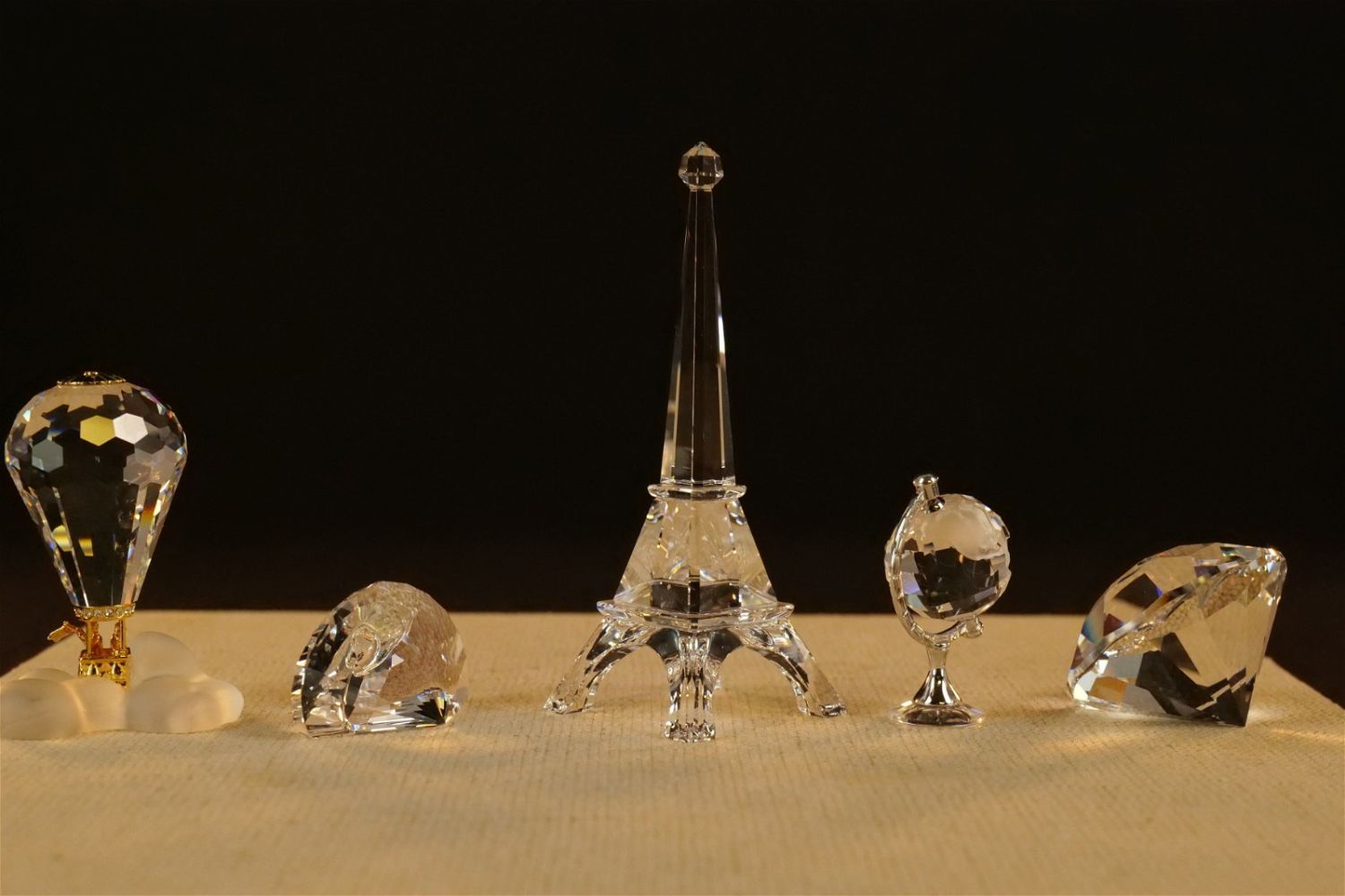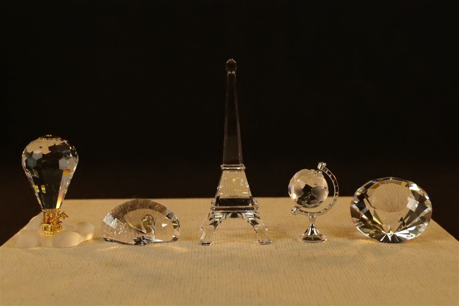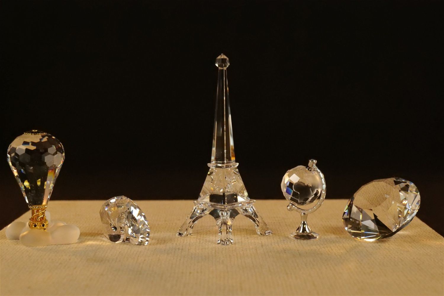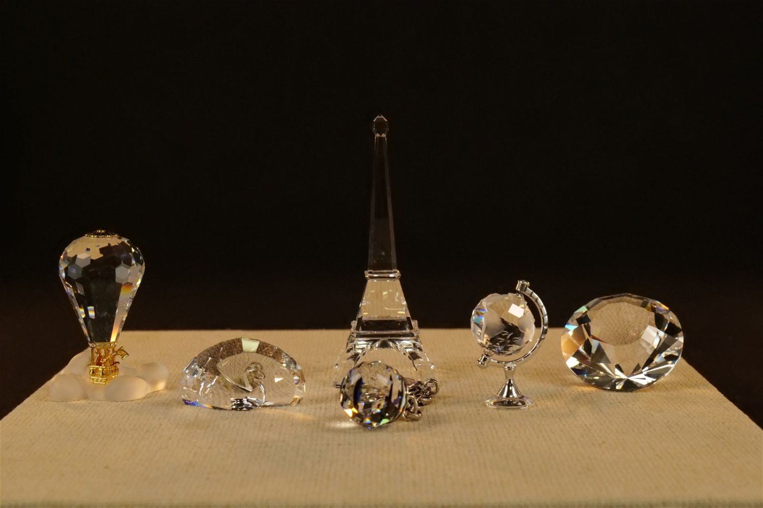 Group Lot of Swarovski Crystal Figurines including Eiffel Tower #5038300, Peacock Paperweight #9100, Diamond #9100, Globe Rhodium #626853, Crystal Memories Hot Air Balloon #102951, and Island Keychain #9100. Largest measures 3.75" tall. All come with original boxes. All invoices must be paid within 24 hours of the sale. We offer multiple shipping options besides the Liveauctioneers Liveship quoted on this listing. We also offer Pick-Ups Thursday, Friday, Saturday, and Monday immediately following the sale. BY APPOINTMENT ONLY.