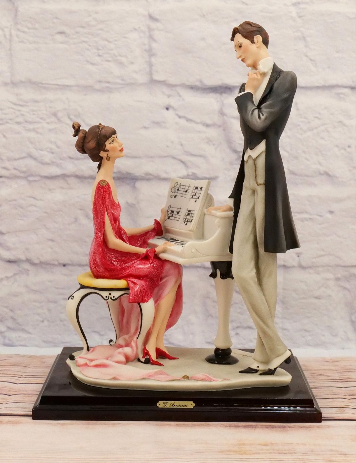 Giuseppe Armani The Piano Figurine. Art 433-C – 1987. Hand Signed by Armani. Made in Italy. Measures 14" tall. All invoices must be paid within 24 hours of the sale. We offer multiple shipping options besides the Liveauctioneers Liveship quoted on this listing. We also offer Pick-Ups Thursday, Friday, Saturday, and Monday immediately following the sale. BY APPOINTMENT ONLY.