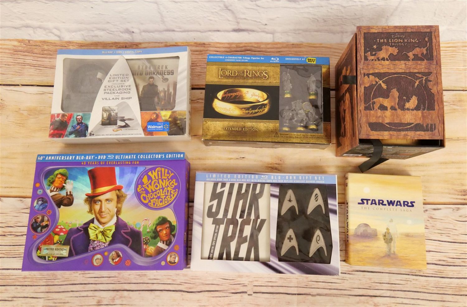 Group Lot of Blu-Ray Box Sets including Star Trek Into Darkness – Sealed, Lord of the Rings Best Buy Exclusive – Factory Sealed but 1 figure is broken on the inside, Star Trek Set with Starfleet Badges – Sealed, Star Wars The Complete Saga – Opened, The Lion King The Circle of Life – Opened, and Willy Wonka – Opened Box but New Condition. All invoices must be paid within 24 hours of the sale. We offer multiple shipping options besides the Liveauctioneers Liveship quoted on this listing. We also offer Pick-Ups Friday, Saturday, and Monday immediately following the sale. BY APPOINTMENT ONLY.
