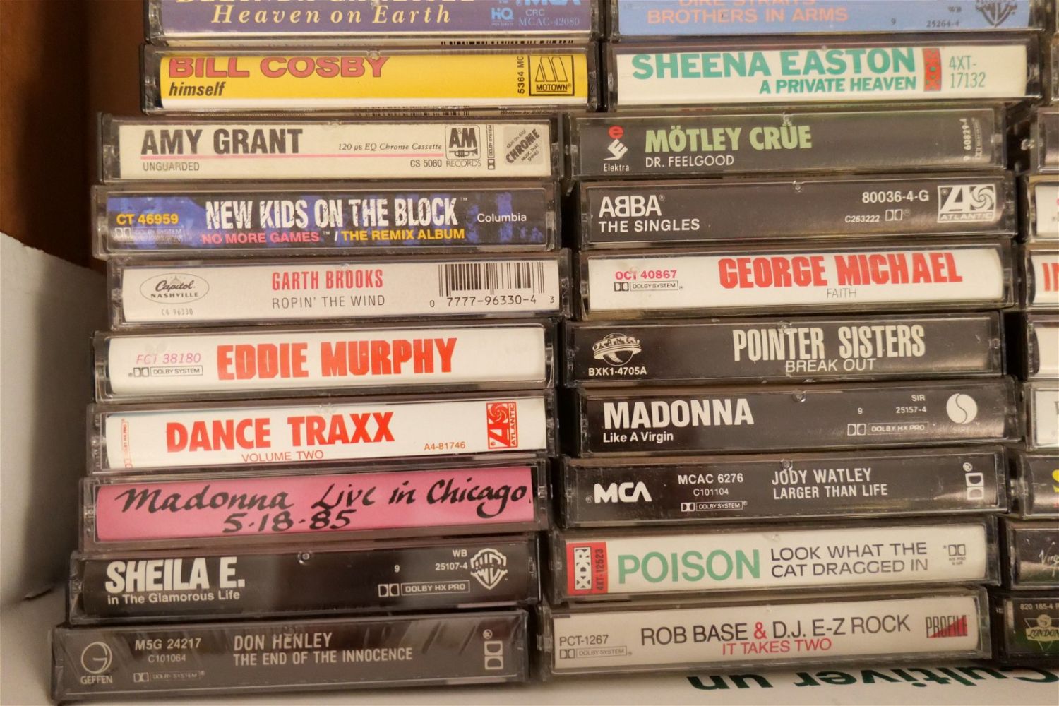 Large Lot of Cassette Tapes. Including Shelia E, Madonna, Stevie Nicks, Bruce Springsteen, Michael Jackson, INXS, Blondie, Culture Club, Pat Benatar, and More. All invoices must be paid within 24 hours of the sale. We offer multiple shipping options besides the Liveauctioneers Liveship quoted on this listing. We also offer Pick-Ups Friday, Saturday, and Monday immediately following the sale. BY APPOINTMENT ONLY.