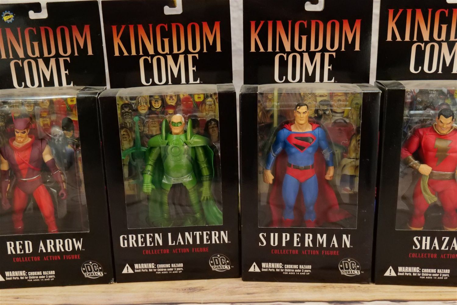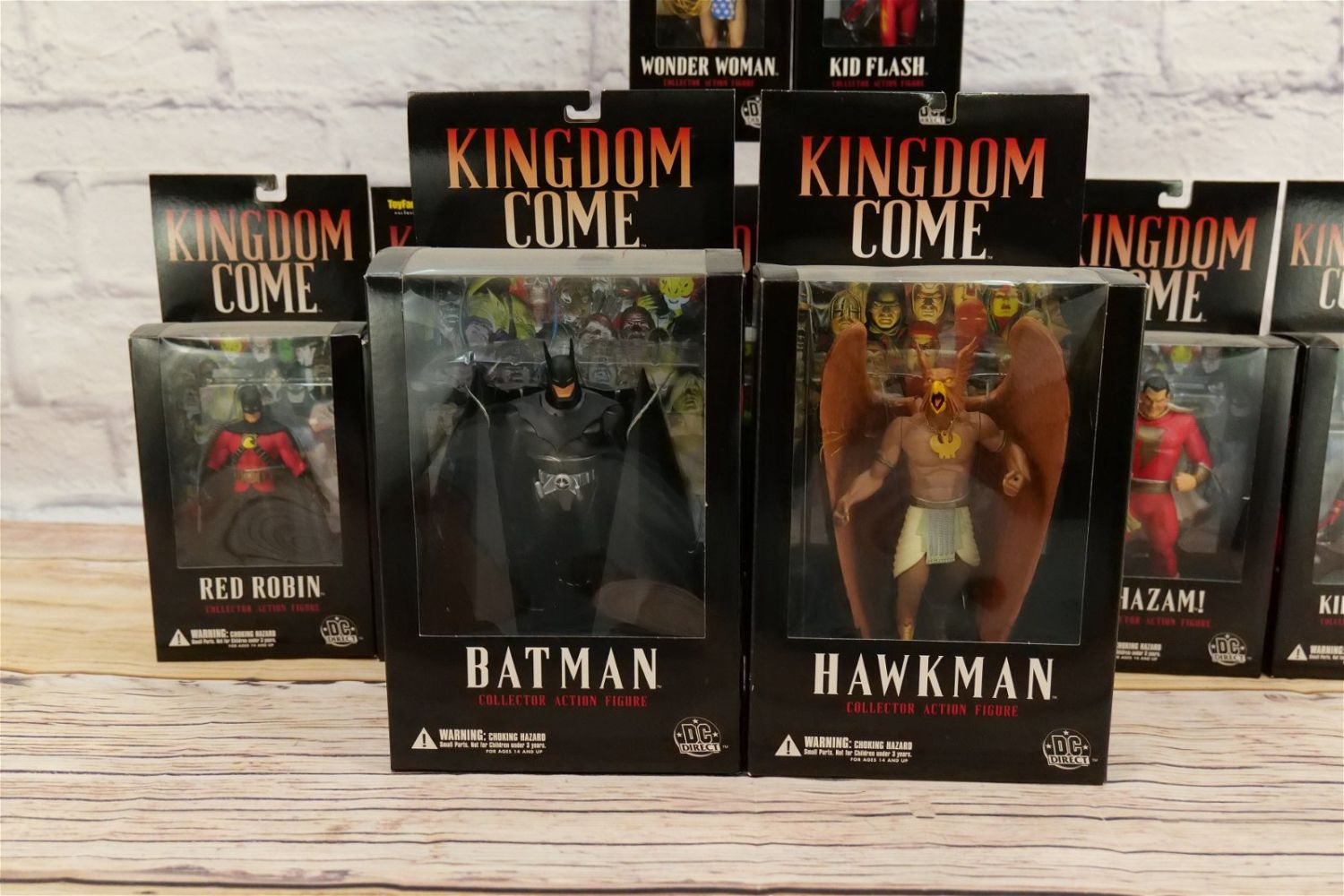 Lot of DC Direct Kingdom Come Action Figures – Wave 1 & 2. Lot includes Hawkman, Green Lantern, Superman, (3) Kid Flash, Shazam, Wonder Woman, Red Arrow – Toyfare, Red Robin and Larger Batman. All new in boxes. All invoices must be paid within 24 hours of the sale. We offer multiple shipping options besides the Liveauctioneers Liveship quoted on this listing. We also offer Pick-Ups Friday, Saturday, and Monday immediately following the sale. BY APPOINTMENT ONLY.