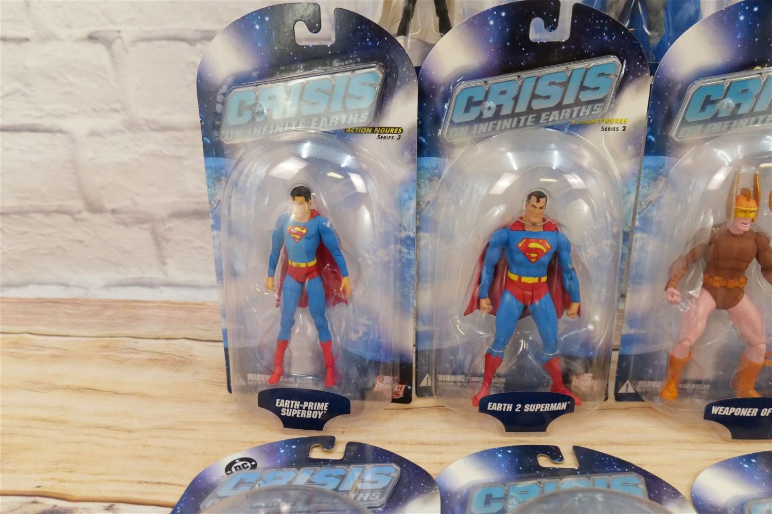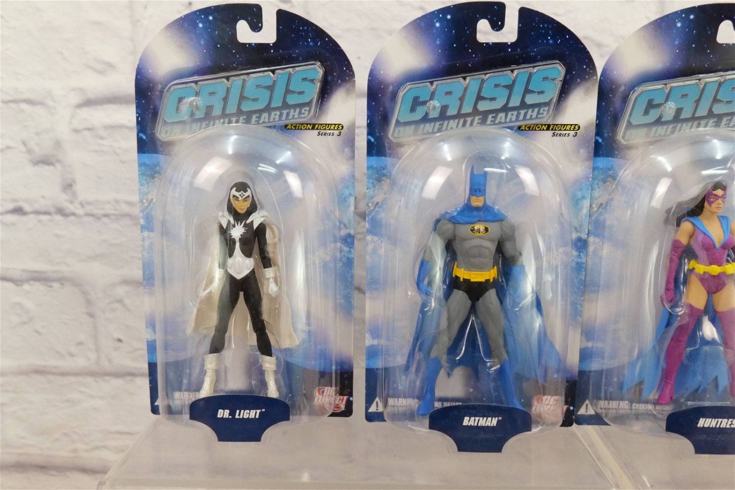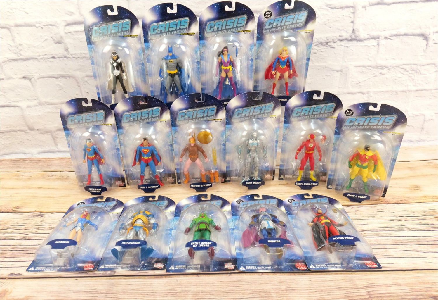 Lot of DC Direct Crisis on Infinite Earth Action Figures – Series 1, 2, & 3. Series 1 Figures include Harbinger, Supergirl, Monitor, Psycho-Pirate, & Earth 2 Robin. Series 2 Figures include Earth 2 Superman, Robot Brainiac, Barry Allen Flash, Anti-Monitor, & Battle Armor Lex Luthor. Series 3 Figures include Earth Prime Superboy, Weaponer of Qward, Batman, Dr. Light, & Huntress. All new in package. All invoices must be paid within 24 hours of the sale. We offer multiple shipping options besides the Liveauctioneers Liveship quoted on this listing. We also offer Pick-Ups Friday, Saturday, and Monday immediately following the sale. BY APPOINTMENT ONLY.