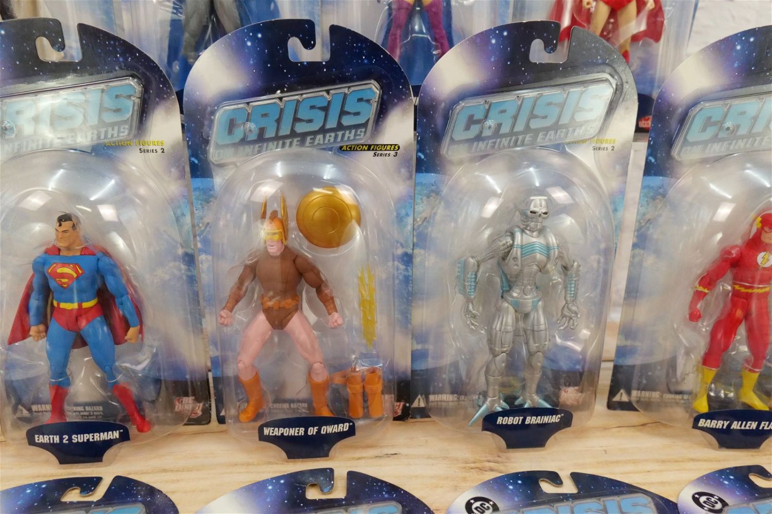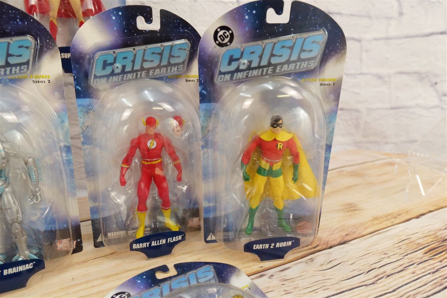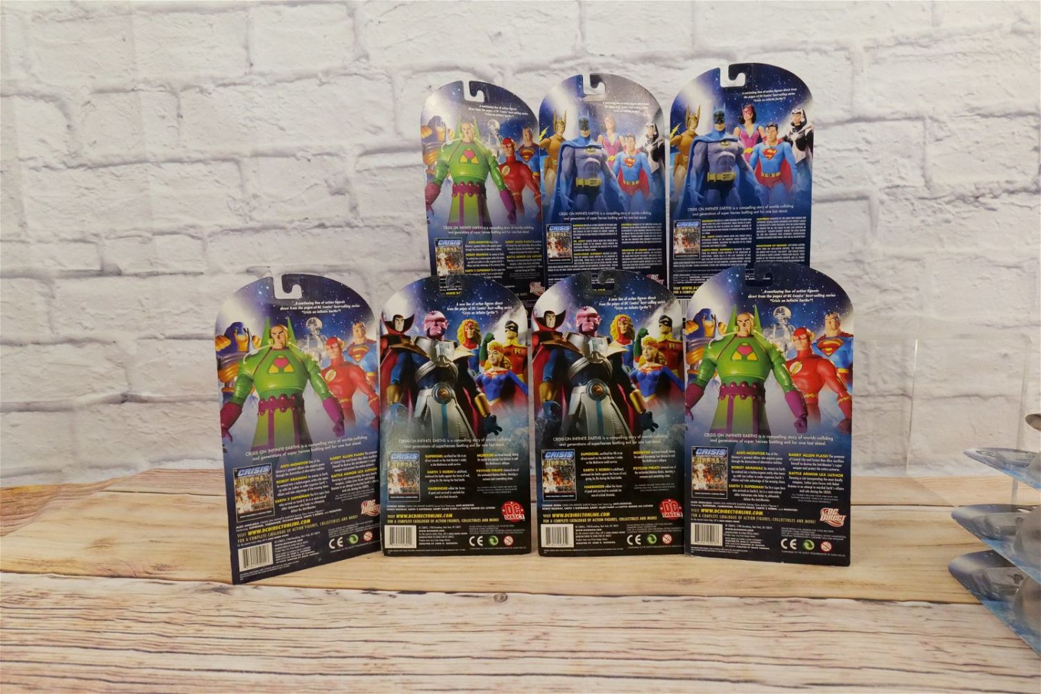 Lot of DC Direct Crisis on Infinite Earth Action Figures – Series 1, 2, & 3. Series 1 Figures include Harbinger, Supergirl, Monitor, Psycho-Pirate, & Earth 2 Robin. Series 2 Figures include Earth 2 Superman, Robot Brainiac, Barry Allen Flash, Anti-Monitor, & Battle Armor Lex Luthor. Series 3 Figures include Earth Prime Superboy, Weaponer of Qward, Batman, Dr. Light, & Huntress. All new in package. All invoices must be paid within 24 hours of the sale. We offer multiple shipping options besides the Liveauctioneers Liveship quoted on this listing. We also offer Pick-Ups Friday, Saturday, and Monday immediately following the sale. BY APPOINTMENT ONLY.