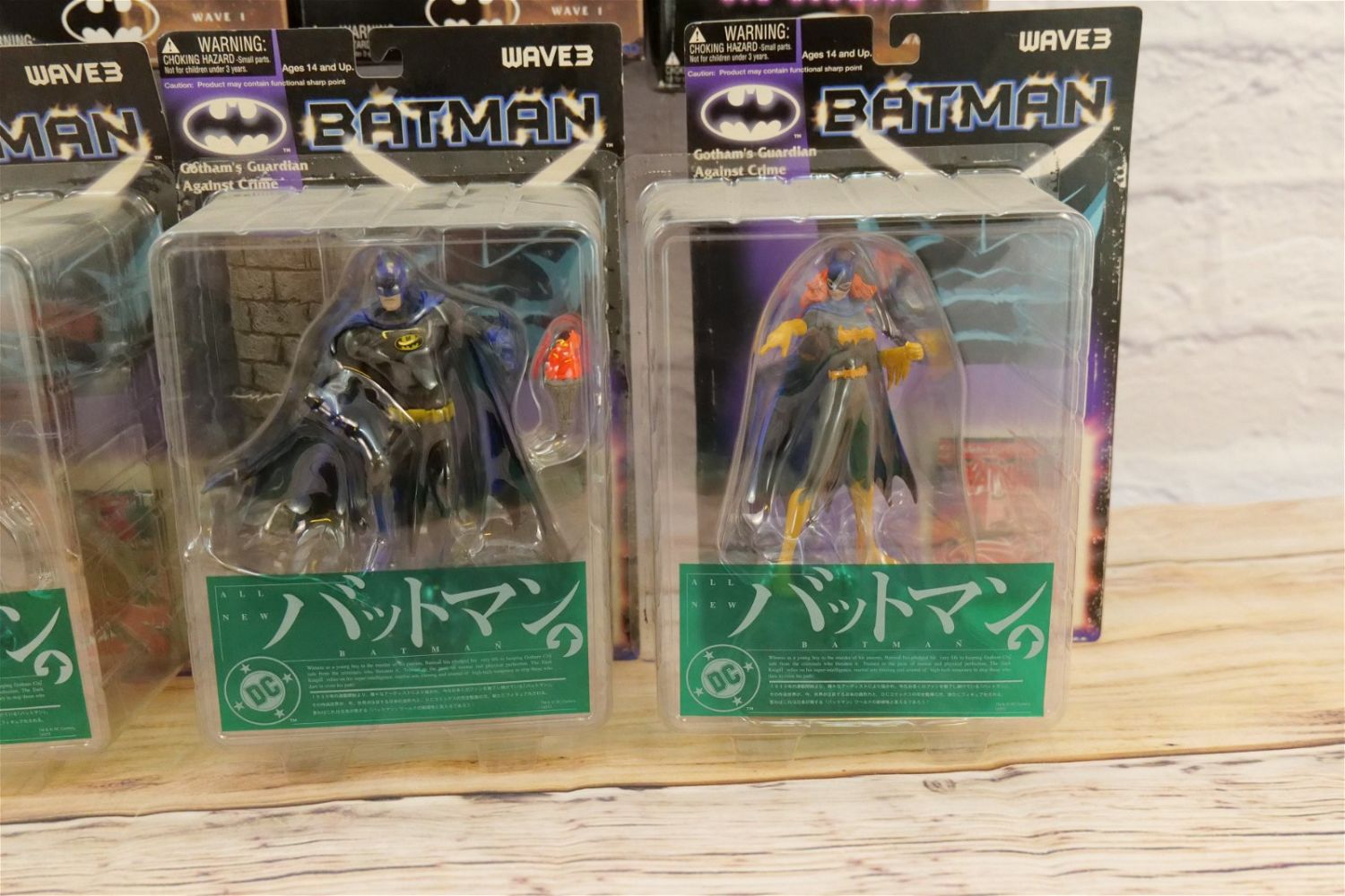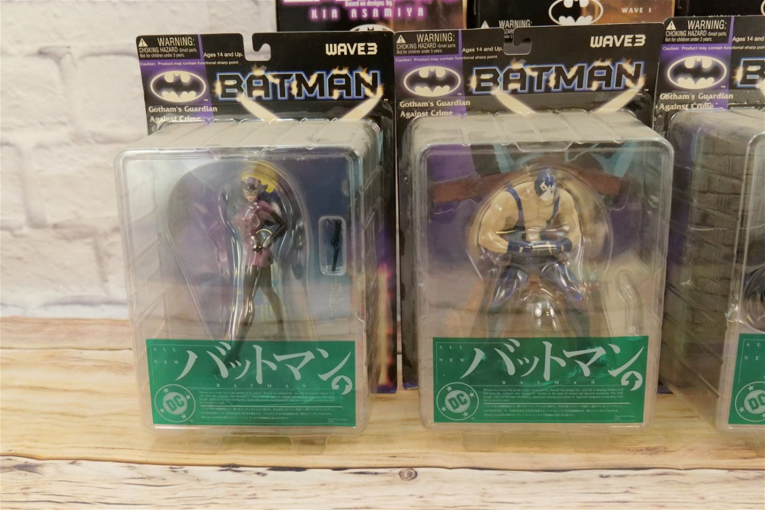 Lot of Batman Yamato Action Figures – Wave 3 and Kia Asamiya Wave 1. The Wave 3 Figures include Batman, Batgirl, Catwoman, and Bane. The Kia Asimaya Figures include Two-Face, The Joker, Catwoman, and Batman. All new in package. All invoices must be paid within 24 hours of the sale. We offer multiple shipping options besides the Liveauctioneers Liveship quoted on this listing. We also offer Pick-Ups Friday, Saturday, and Monday immediately following the sale. BY APPOINTMENT ONLY.