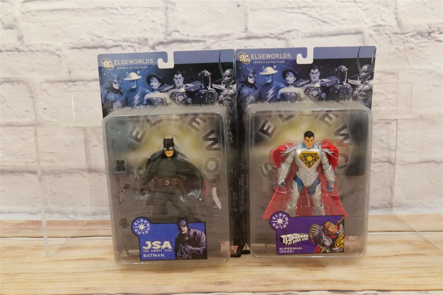 Lot of DC Direct Elseworlds Action Figures – Series 3 & 4. Series 3 Figures include Elseworld’s Finest Batgirl, Red Son Green Lantern, Elseworld’s Finest Supergirl, JSA Liberty Files The Flash. Series 4 Figures include JSA Liberty Files Batman, Superman The Dark Side – Superman (Good) and Superman (Dark) and Amazonia. All new in packages. All invoices must be paid within 24 hours of the sale. We offer multiple shipping options besides the Liveauctioneers Liveship quoted on this listing. We also offer Pick-Ups Friday, Saturday, and Monday immediately following the sale. BY APPOINTMENT ONLY.