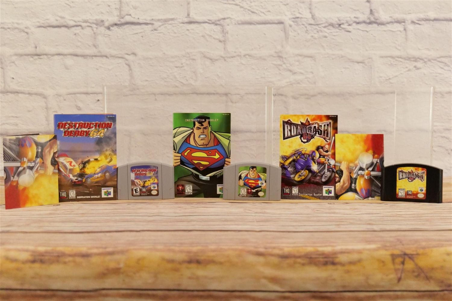 Lot of 6 Nintendo 64 Video Games including Destruction Derby 64, Superman, Hercules, Road Rash, The Legend of Zelda, and Castlevania. All come with Instruction Booklets. All invoices must be paid within 24 hours of the sale. We offer multiple shipping options besides the Liveauctioneers Liveship quoted on this listing. We also offer Pick-Ups Friday, Saturday, and Monday immediately following the sale. BY APPOINTMENT ONLY.