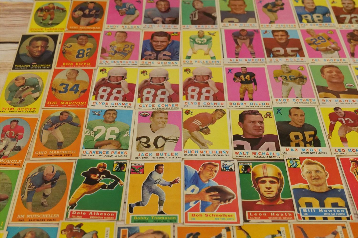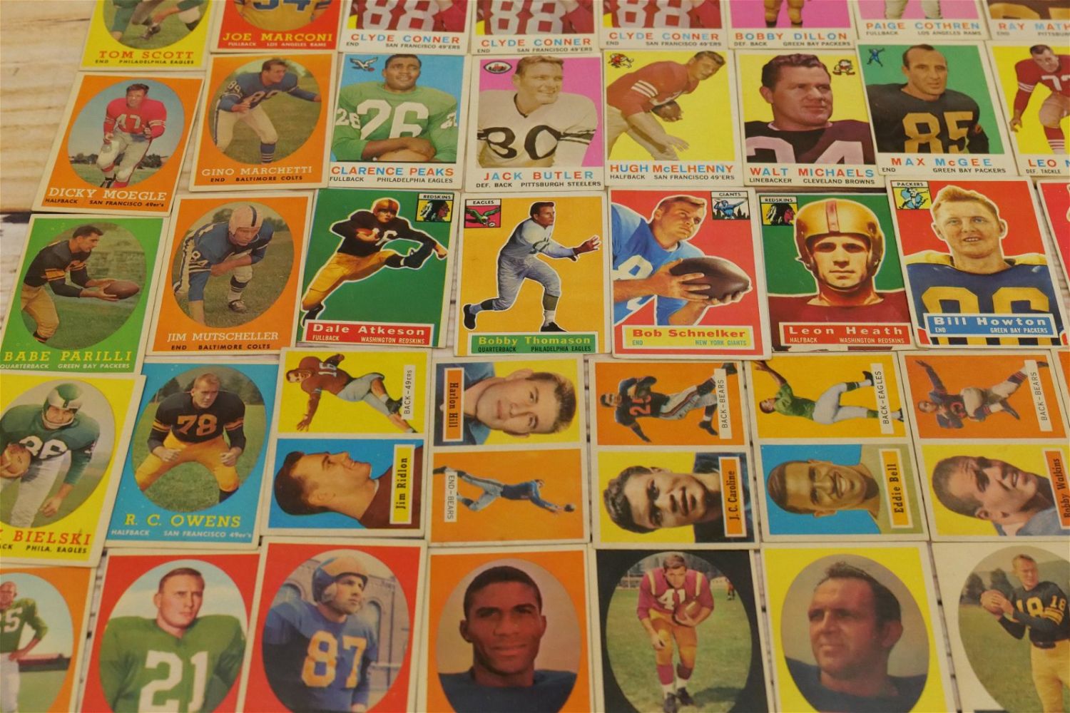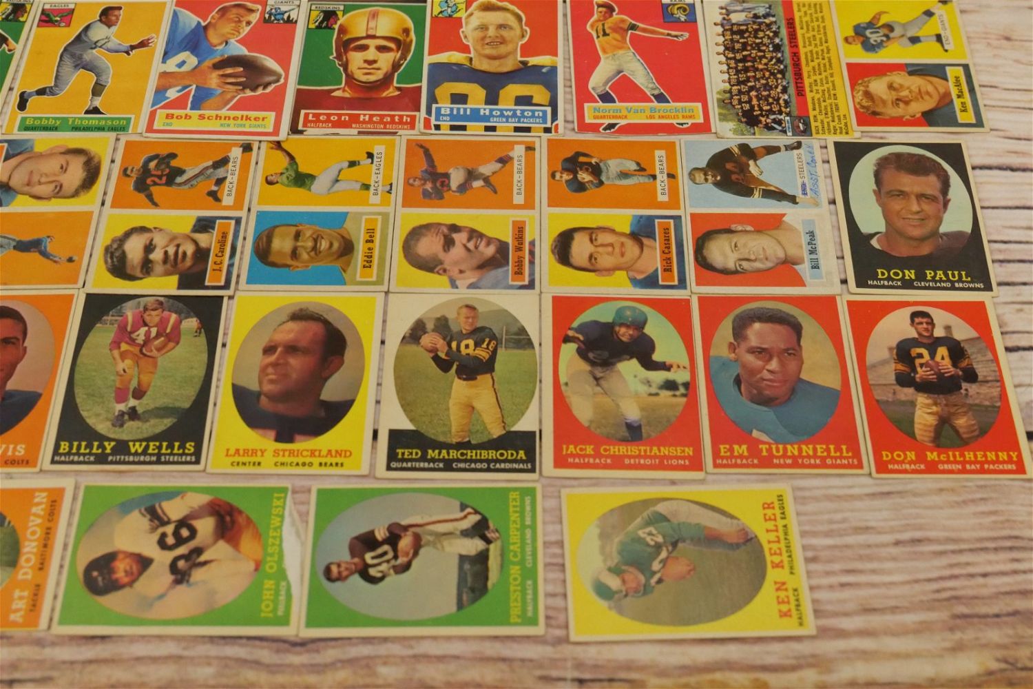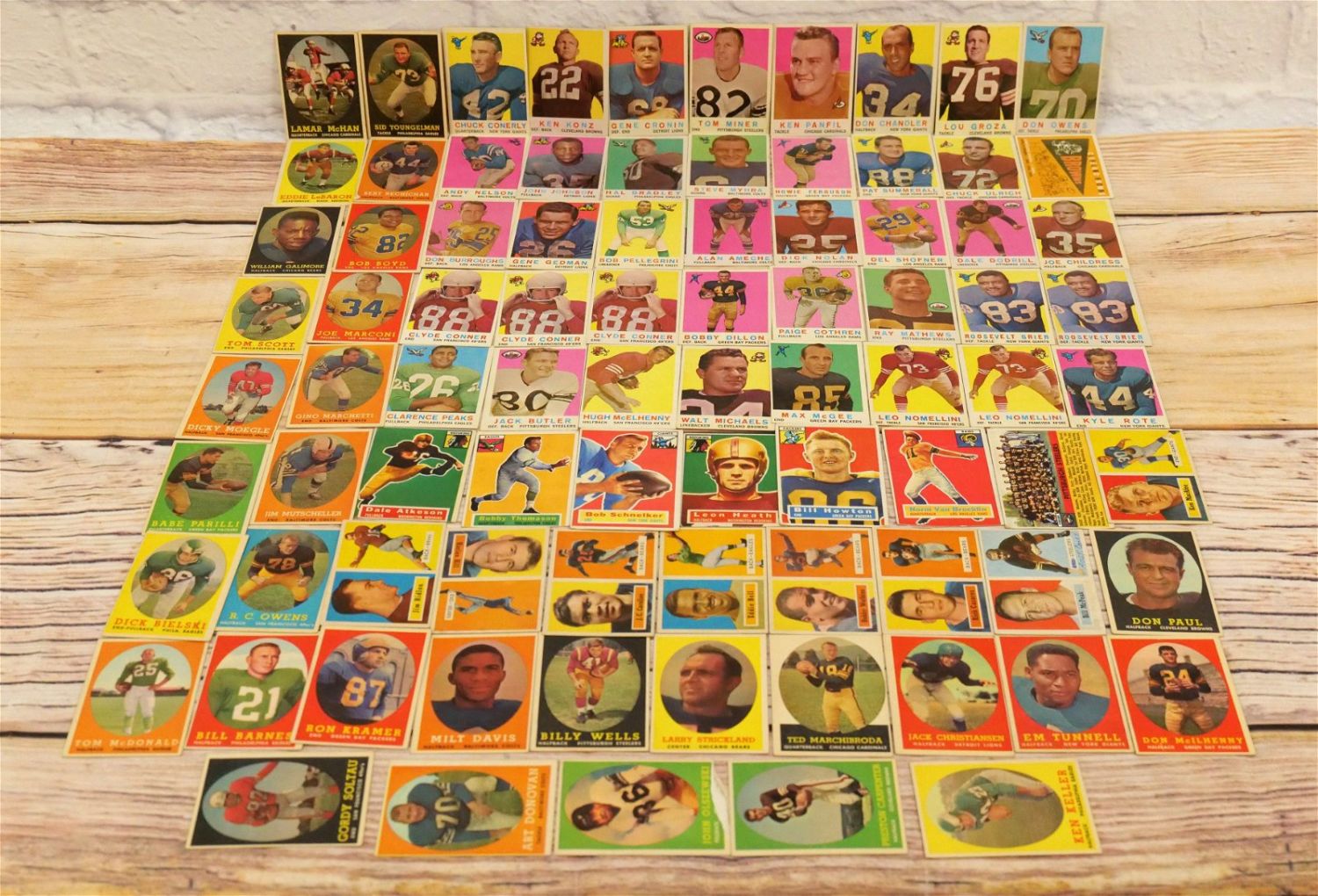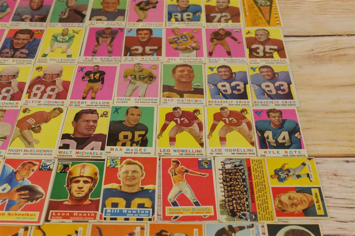 Lot of 85 Vintage NFL Sports Cards. Including Cards from Topps 1956, 1957, and 1958. Card Conditions Vary. A few doubles are included. All invoices must be paid within 24 hours of the sale. We offer multiple shipping options, We also offer Pick-Ups Thursday, Friday, Saturday, and Monday immediately following the sale. BY APPOINTMENT ONLY.
