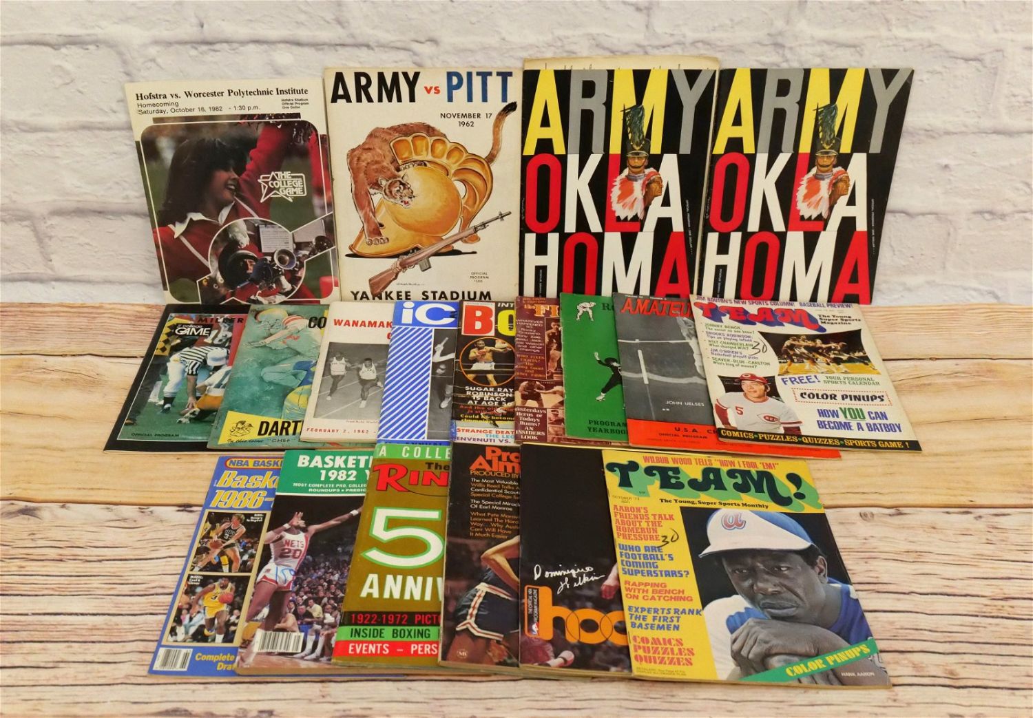 Lot of Mixed Sports Magazines and Programs including Hoop, The Ring, Team!, The Fight Game, International Boxing, Goal Magazine with Mike Bossy on Cover, Roller Derby Program, Army vs. Oklahoma Program and More. Includes 1960’s-1980’s. All invoices must be paid within 24 hours of the sale. We offer multiple shipping options, We also offer Pick-Ups Thursday, Friday, Saturday, and Monday immediately following the sale. BY APPOINTMENT ONLY.