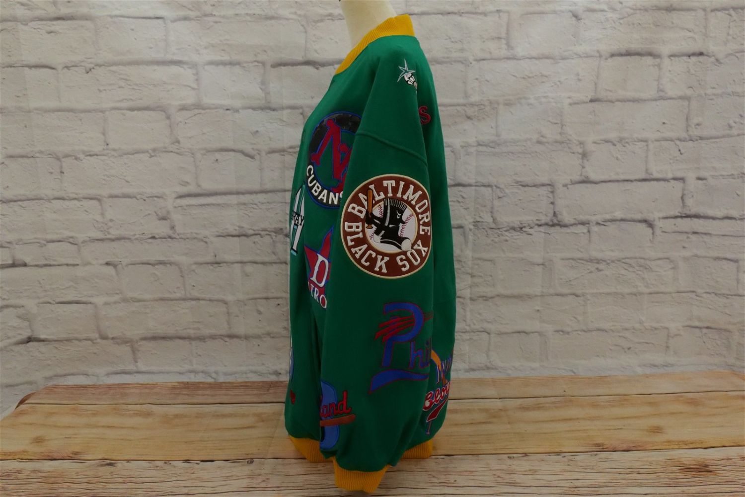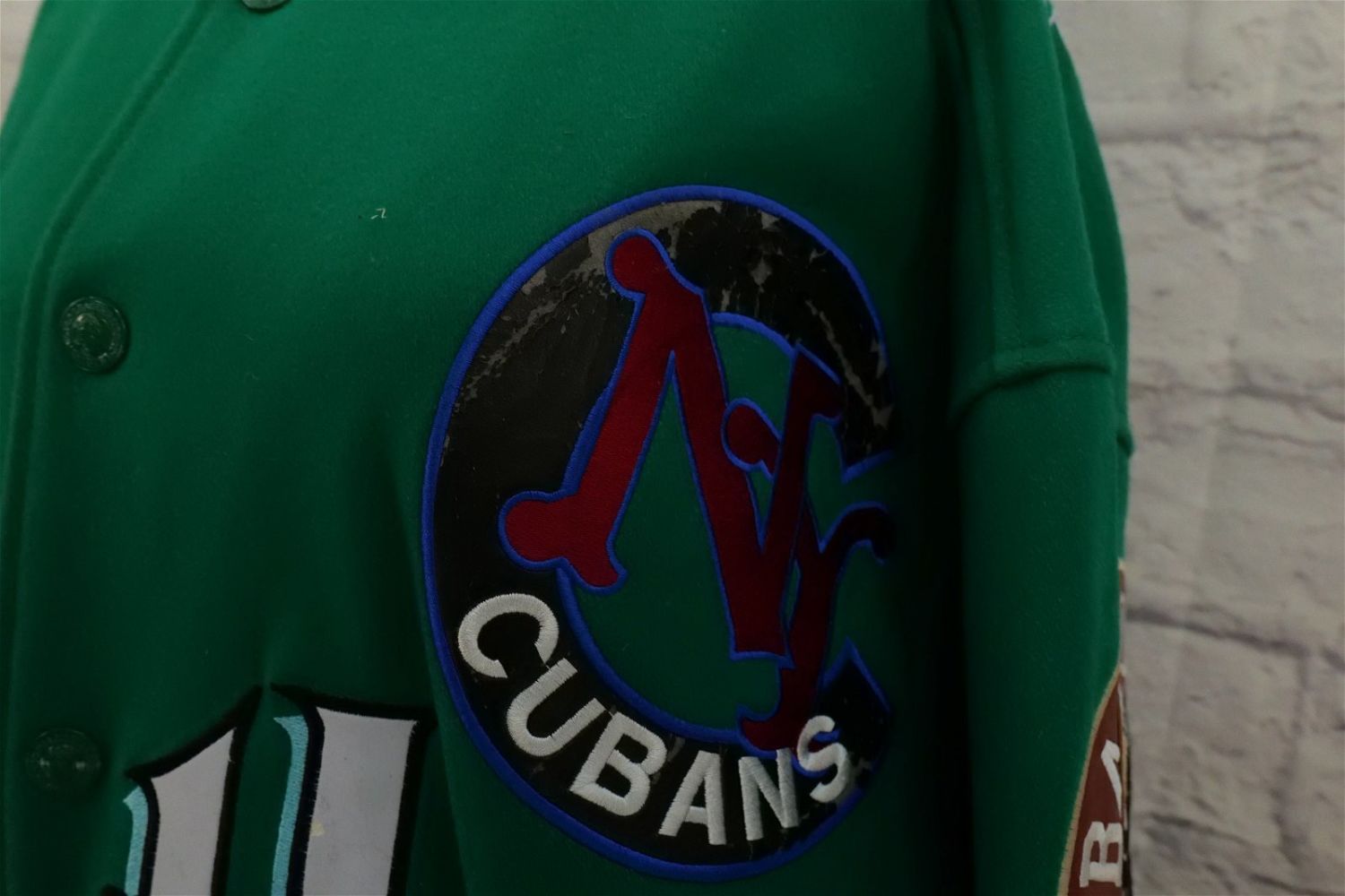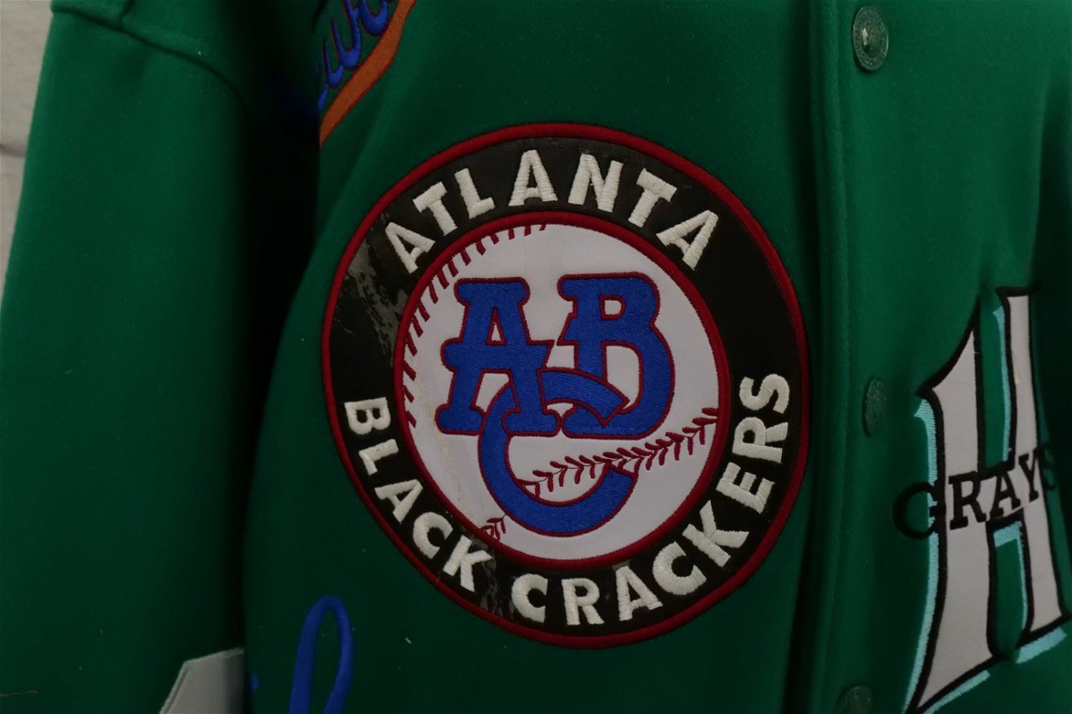 Negro League Baseball Museum Jacket. Size XXL. Jacket is Wool Blend with Polyester Lining. Some of the leather on the patches is damaged. All invoices must be paid within 24 hours of the sale. We offer multiple shipping options, We also offer Pick-Ups Thursday, Friday, Saturday, and Monday immediately following the sale. BY APPOINTMENT ONLY.