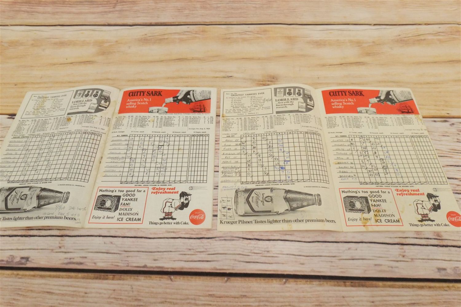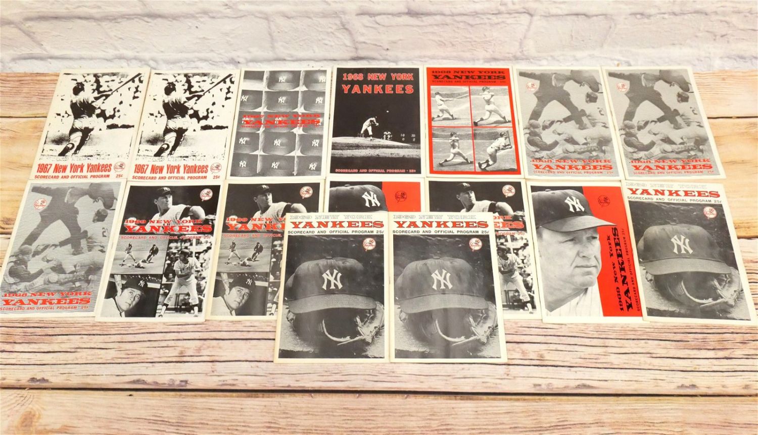 Lot of 16 New York Yankees Score Cards and Programs including (3) 1967, (5) 1968, and (8) 1969. Two score cards are unused. Some books may be incomplete. We did not look cover to cover for staining, cutouts, completion, etc.. Books vary from poor to excellent condition. All invoices must be paid within 24 hours of the sale. We offer multiple shipping options, We also offer Pick-Ups Thursday, Friday, Saturday, and Monday immediately following the sale. BY APPOINTMENT ONLY.