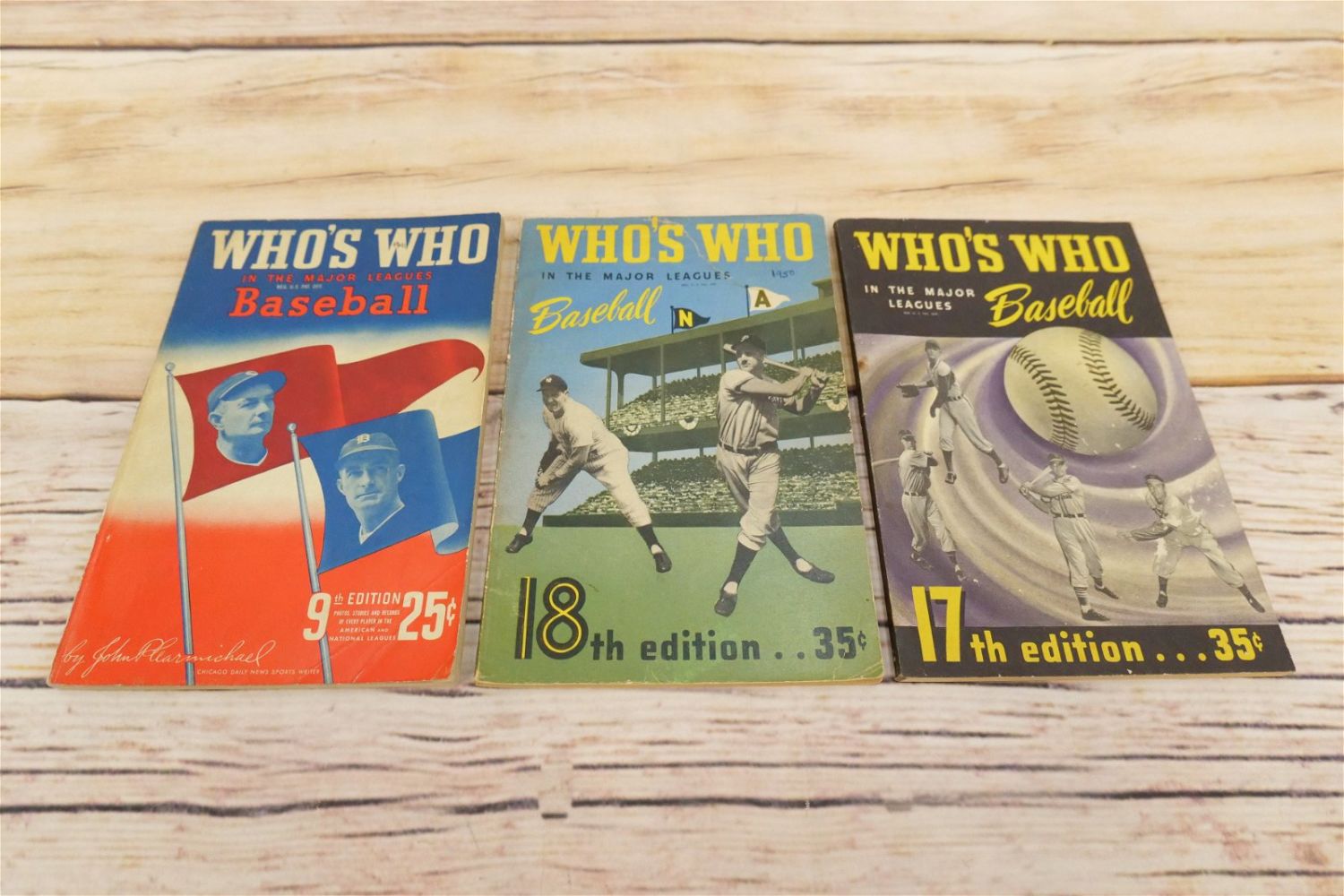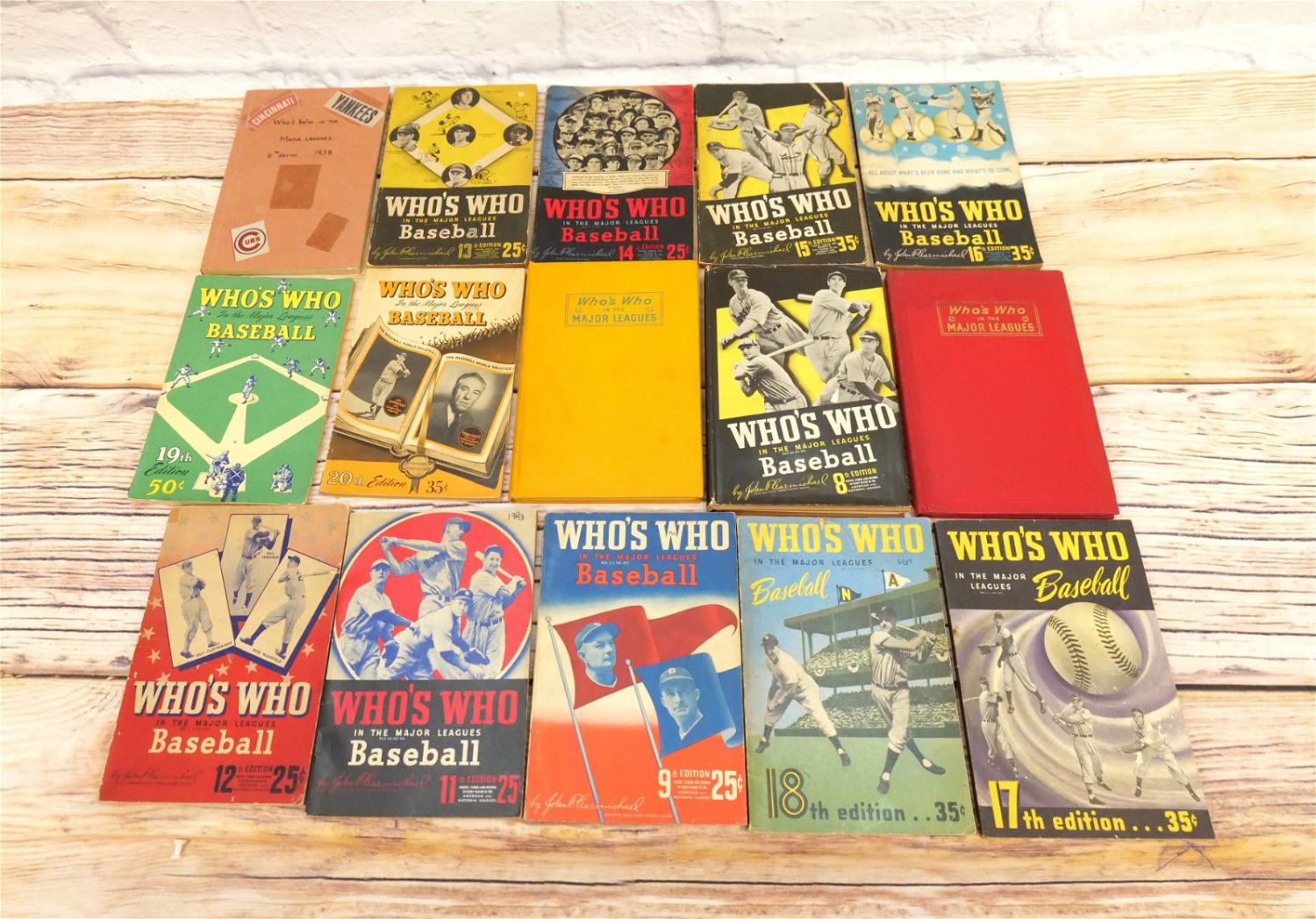 Lot of 15 Who’s Who in Baseball Books. Including 1938 – Coverless and missing inside title page, 1939 – Hardcover and Signed, 1940 Hardcover, 1941, 1942 – Hardcover, 1943-1952. Some books may be incomplete. We did not look cover to cover for staining, cutouts, completion, etc.. Books vary from poor to excellent condition. All invoices must be paid within 24 hours of the sale. We offer multiple shipping options, We also offer Pick-Ups Thursday, Friday, Saturday, and Monday immediately following the sale. BY APPOINTMENT ONLY.