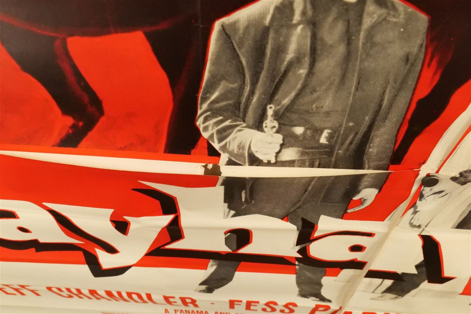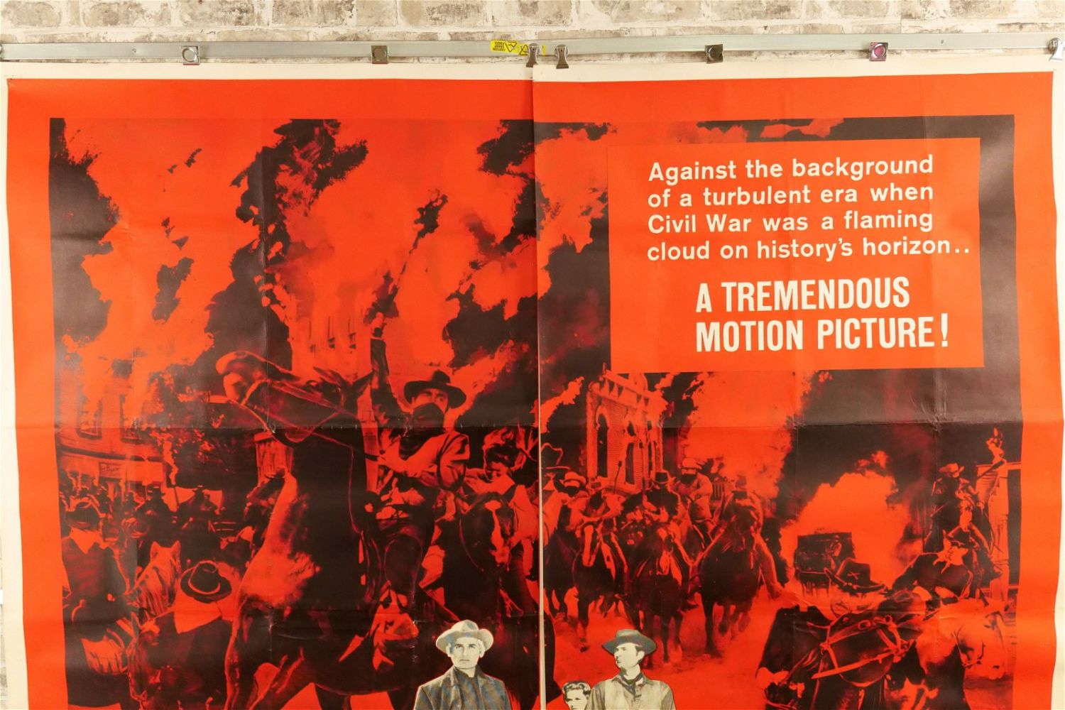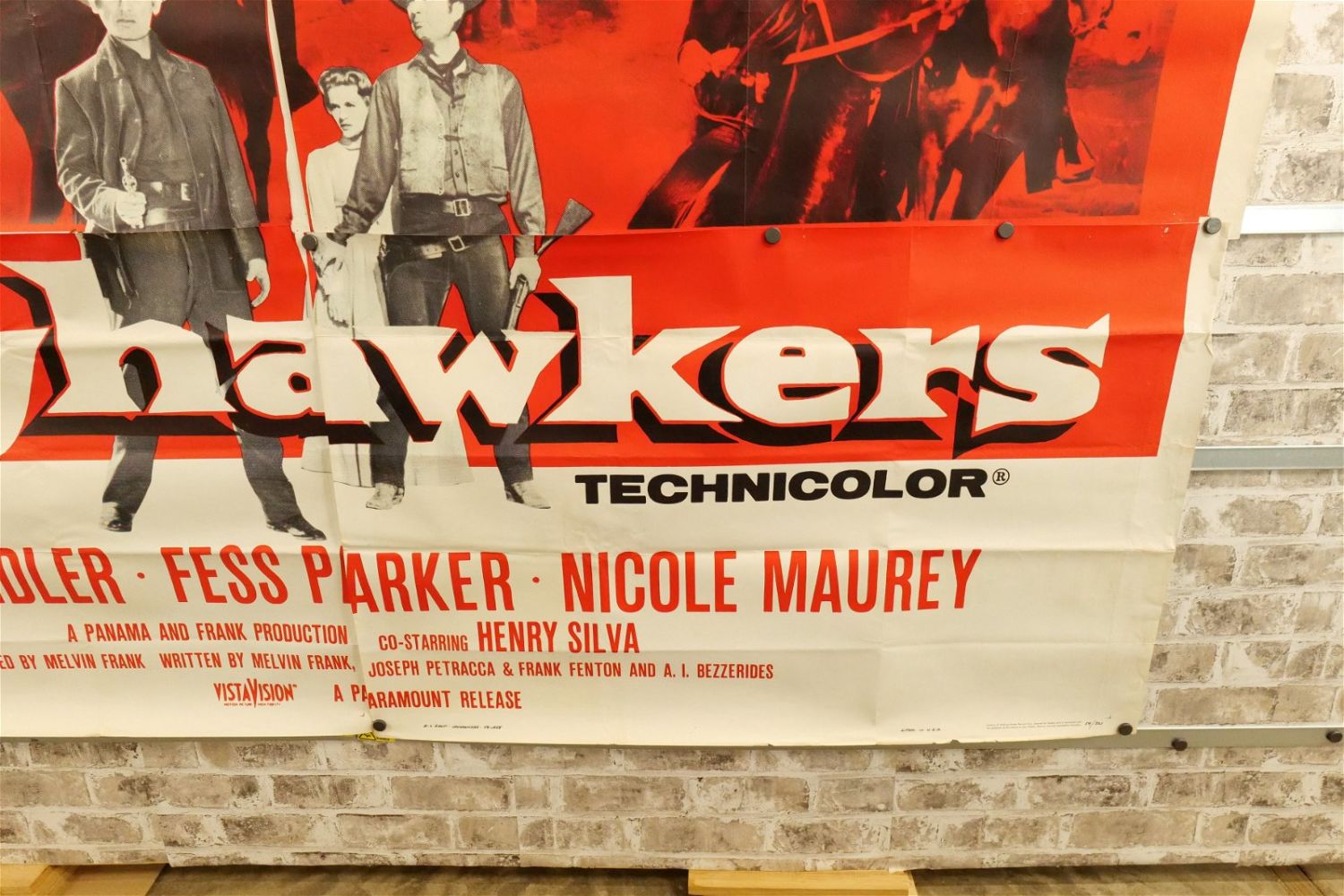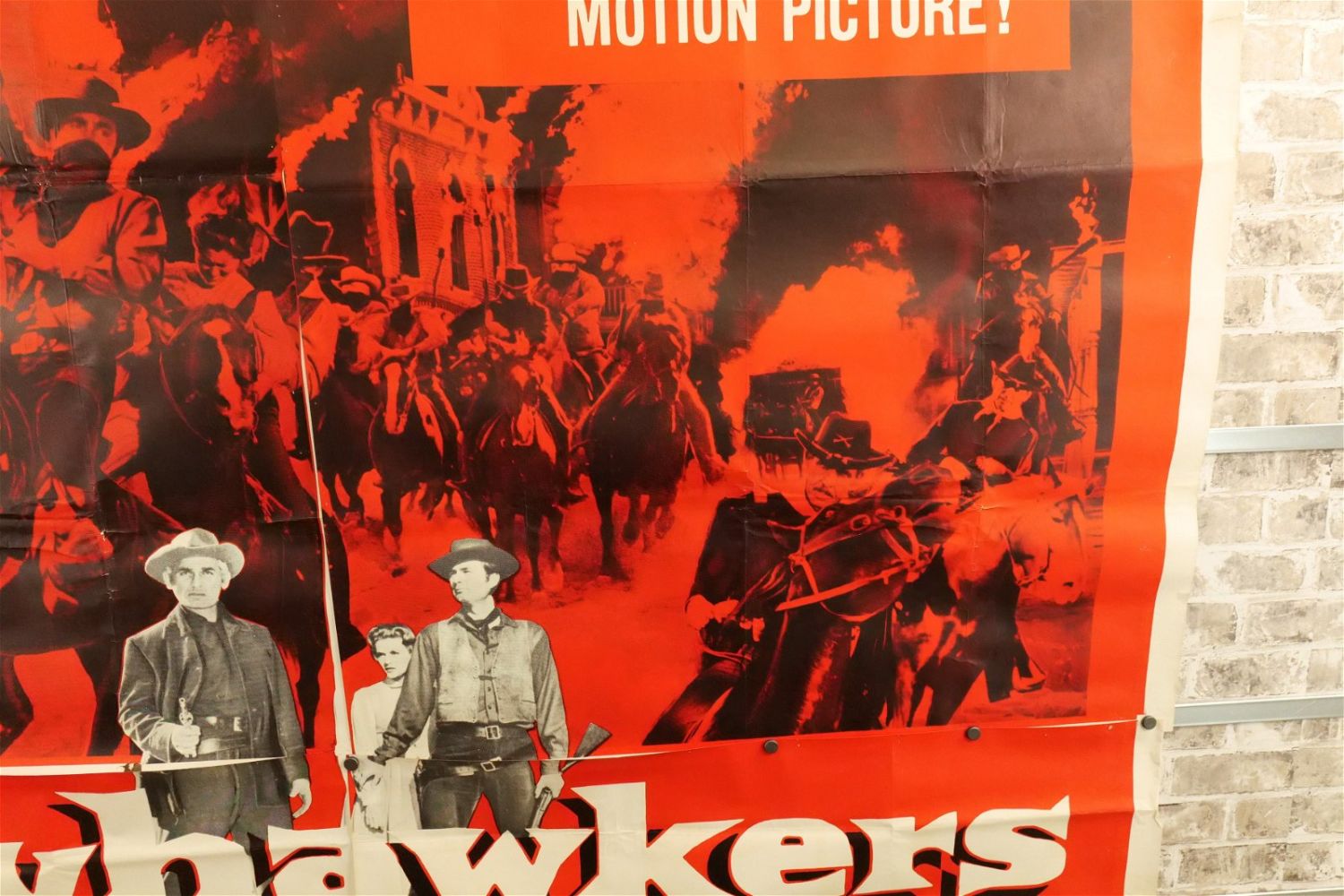 Jayhawkers 6 Sheet Movie Poster (1959) #59/321. Starring Jay Chandler and Fess Parker. Has some loss to paper at the bottom, crinkling, small tears, and small pinholes throughout from staples. Otherwise very good condition. Measures approx. 81" wide x 79.5" long. All have minor tearing and creasing unless noted in good condition. All invoices must be paid within 24 hours of the sale. We offer multiple shipping options please read the shipping terms for your options. We also offer Pick-Ups Thursday, Friday, Saturday, and Monday immediately following the sale. BY APPOINTMENT ONLY.