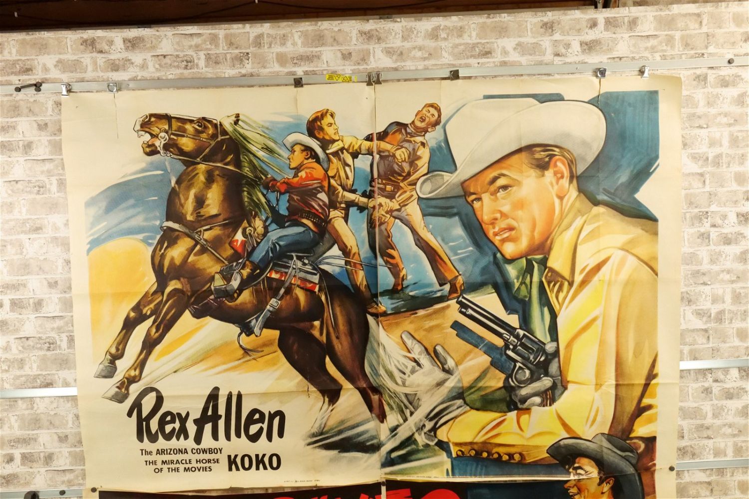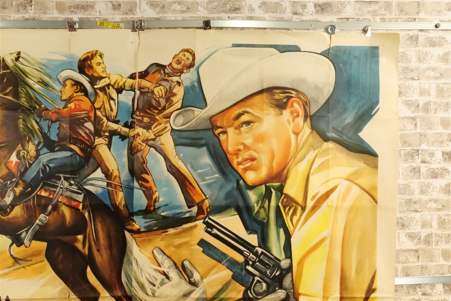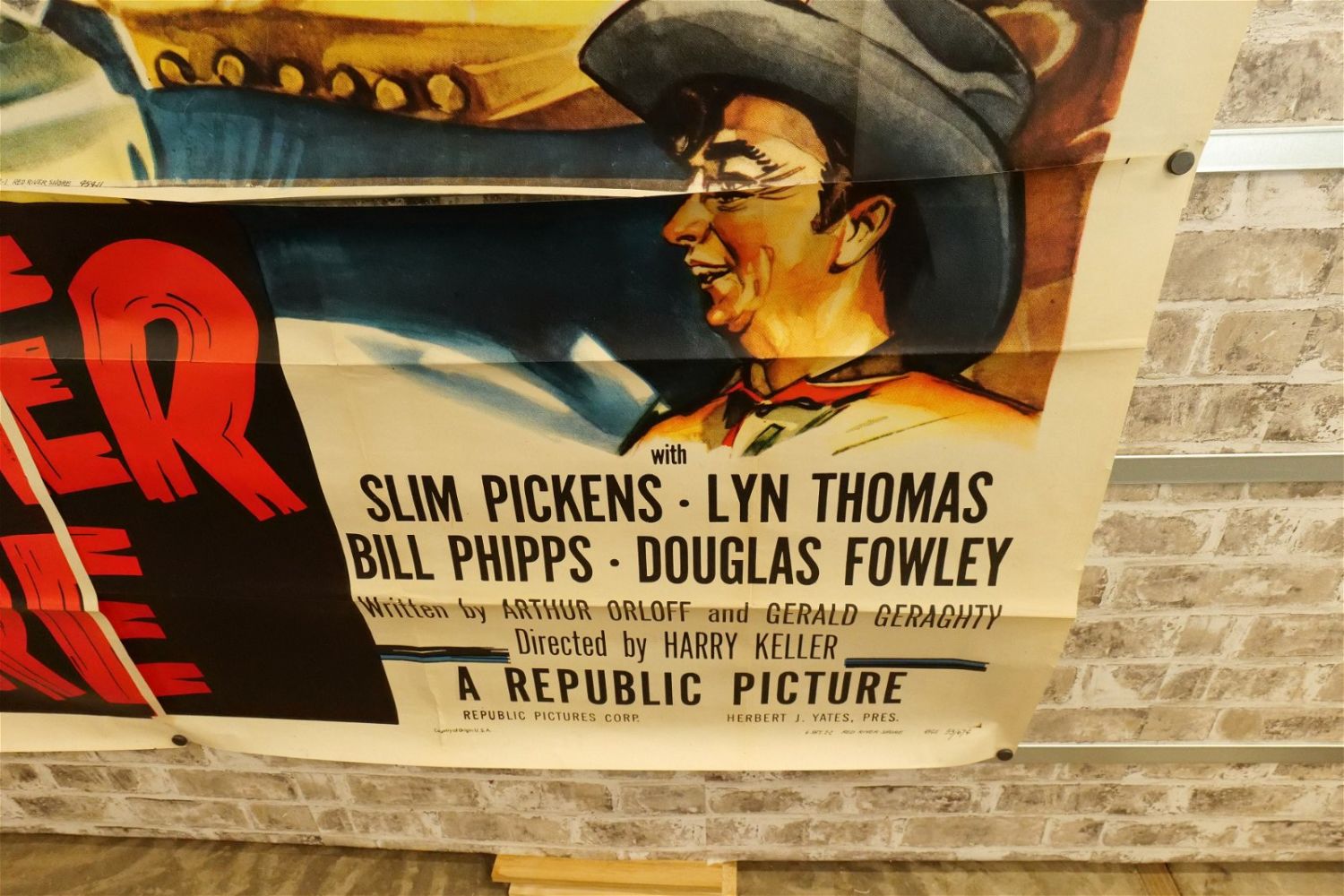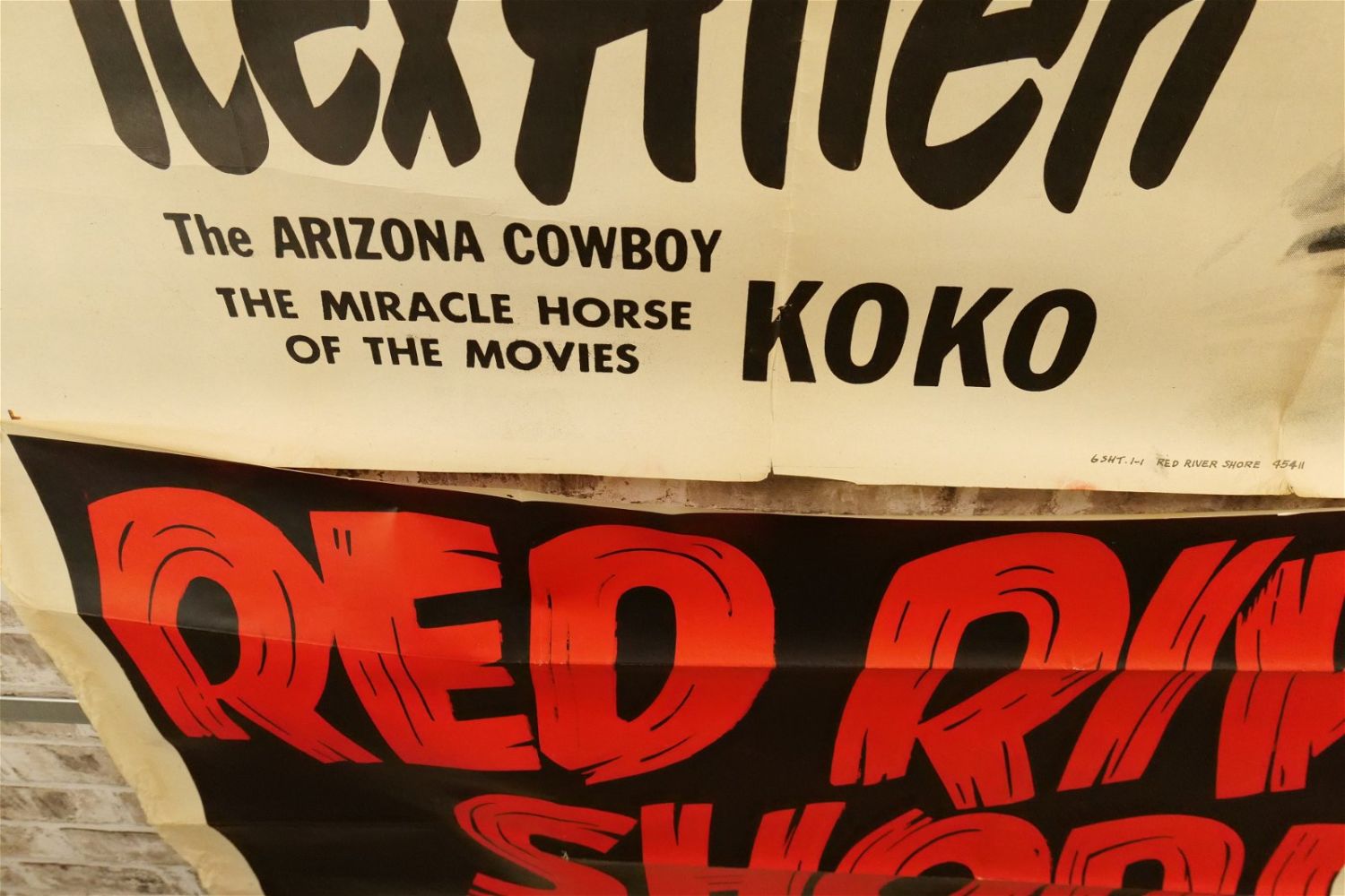 Red River Shore 6 Sheet Movie Poster (1953) #53/674 45411. Starring Rex Allen, Slim Pickens, and Lyn Thomas. Has tears and crinkling. Measures approx. 81" wide x 79.5" long. All have minor tearing and creasing unless noted in good condition. All invoices must be paid within 24 hours of the sale. We offer multiple shipping options please read the shipping terms for your options. We also offer Pick-Ups Thursday, Friday, Saturday, and Monday immediately following the sale. BY APPOINTMENT ONLY.