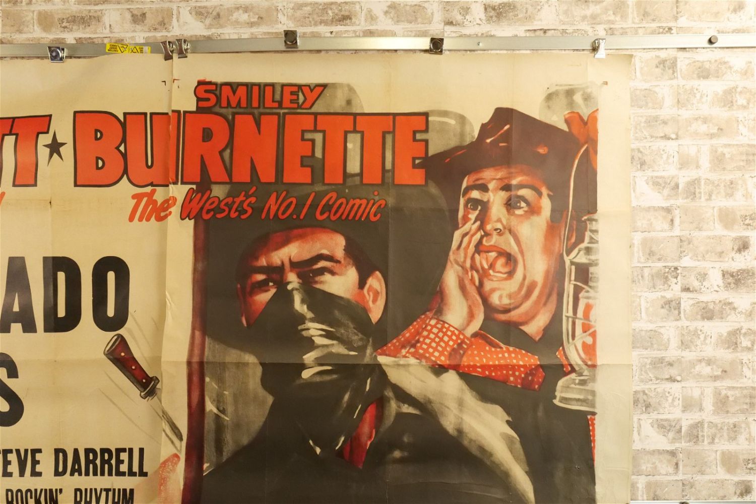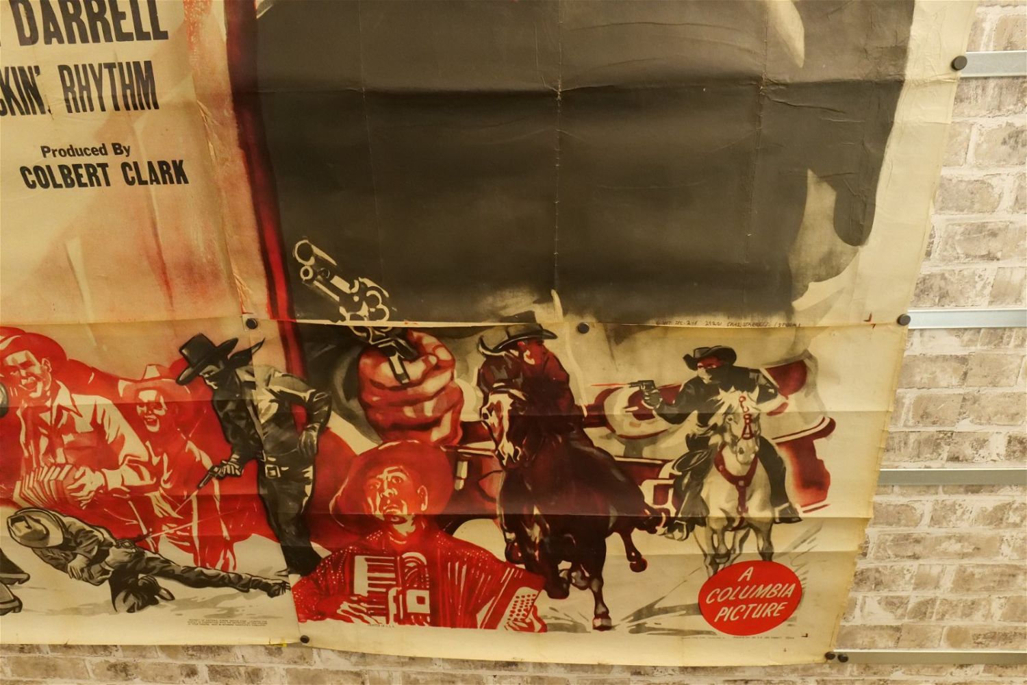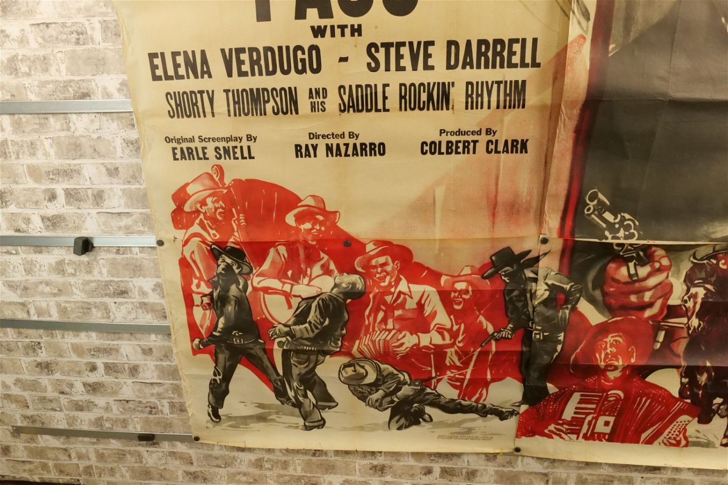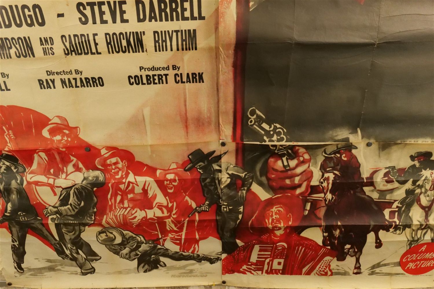 El Dorado Pass 6 Sheet Movie Poster (1948) #48/1395. Starring Elena Verdugo and Steve Darrell. Has loss to edges and tears at creases. Measures approx. 81" wide x 79.5" long. All have minor tearing and creasing unless noted in good condition. All invoices must be paid within 24 hours of the sale. We offer multiple shipping options please read the shipping terms for your options. We also offer Pick-Ups Thursday, Friday, Saturday, and Monday immediately following the sale. BY APPOINTMENT ONLY.