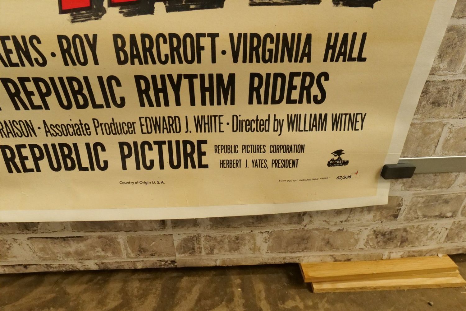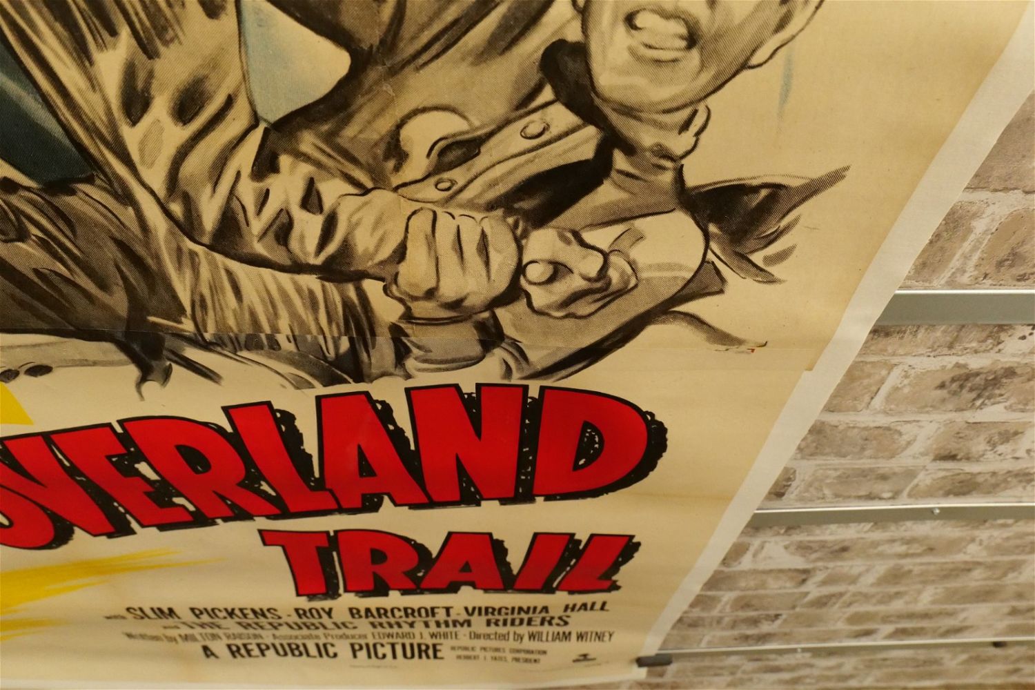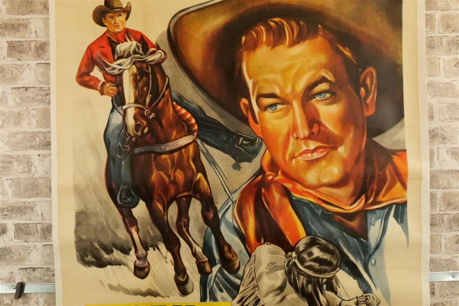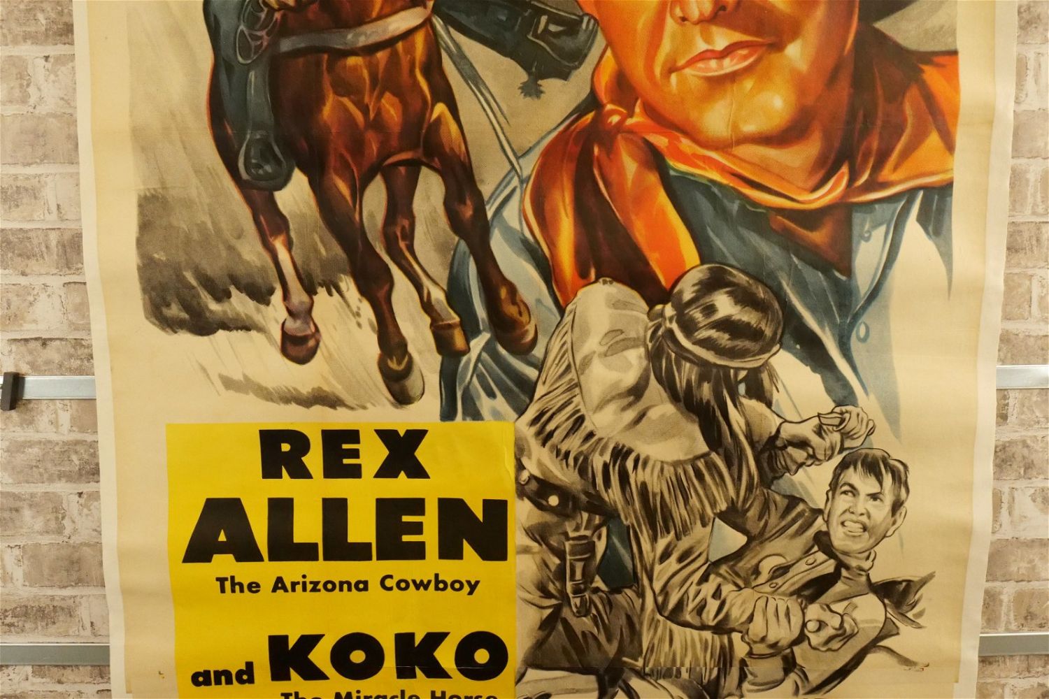 Old Overland Trail Three Sheet Movie Poster (1953). Linen Backed. #52/538. Starring Rex Allen and Koko The Miracle Horse. Restored at the word Koko and slight discoloration. Measures 42.5" wide x 81" long. All have minor tearing and creasing unless noted in good condition. All invoices must be paid within 24 hours of the sale. We offer multiple shipping options please read the shipping terms for your options. We also offer Pick-Ups Thursday, Friday, Saturday, and Monday immediately following the sale. BY APPOINTMENT ONLY.