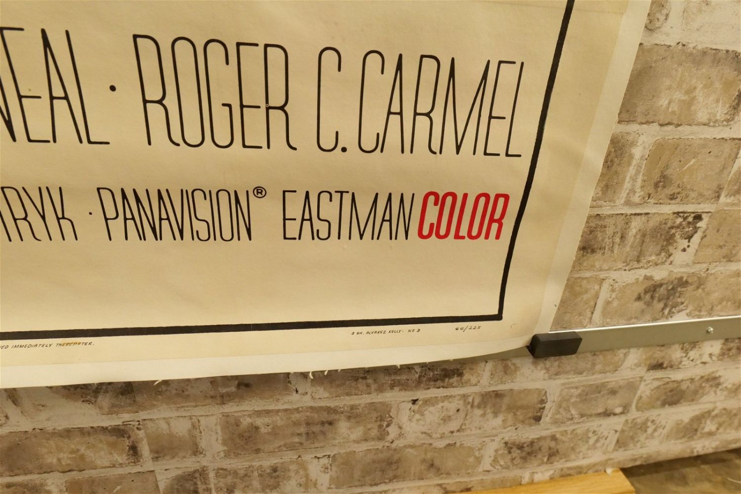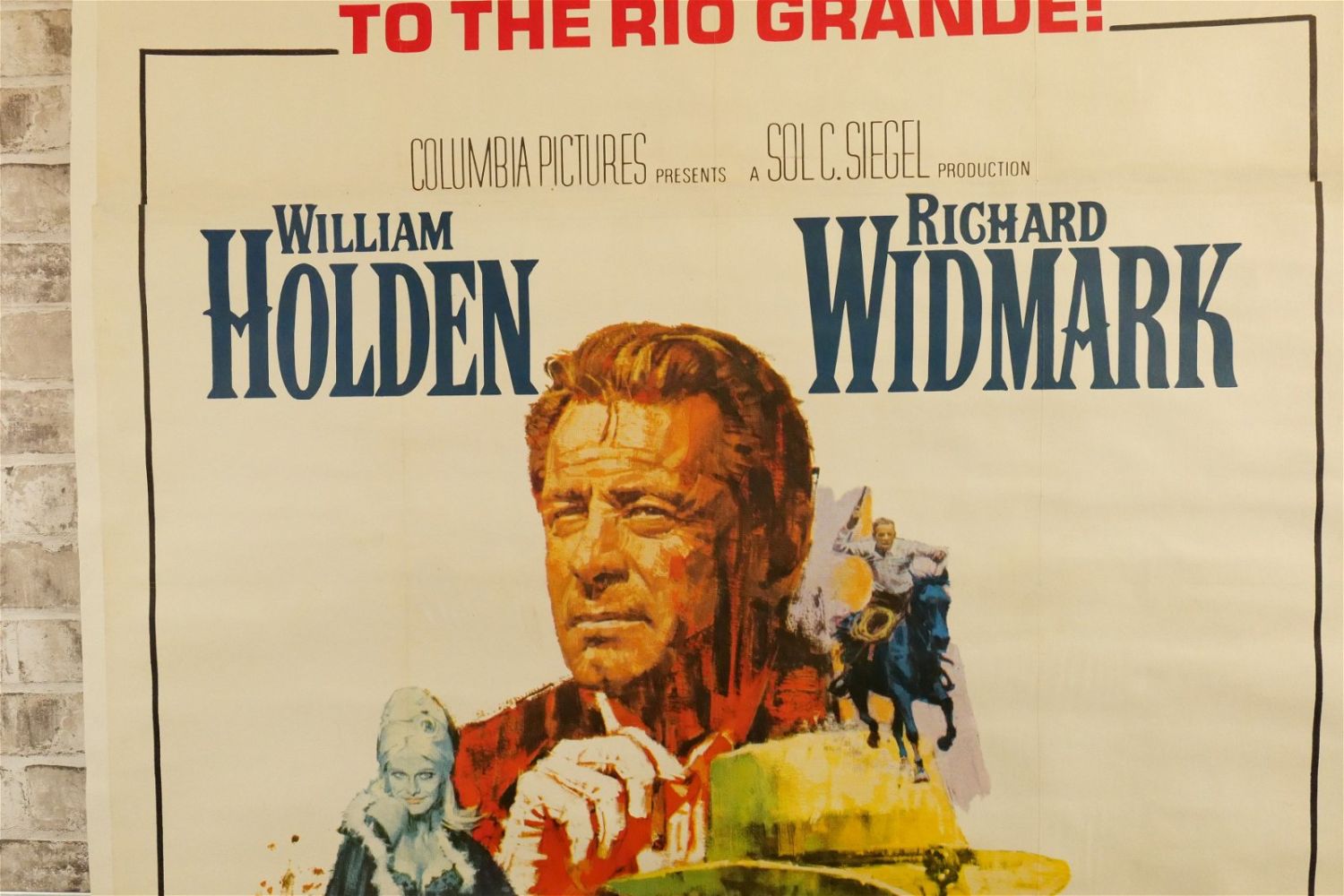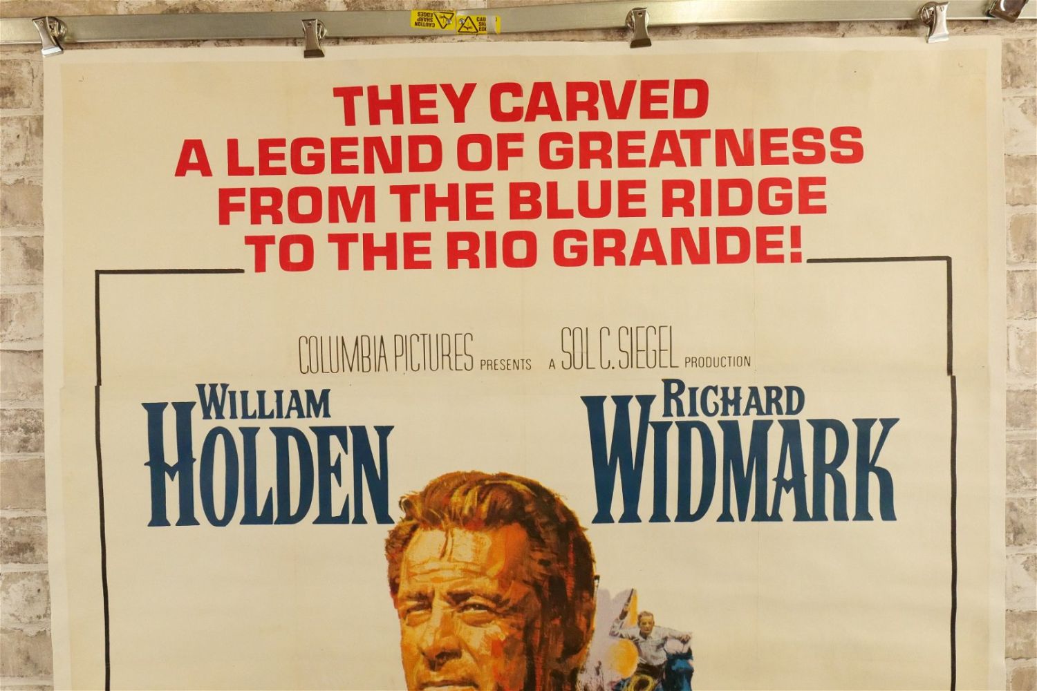 Alvarez Kelly Three Sheet Movie Poster (1966). Linen Backed. #66/225. Starring William Holden and Richard Widmark. Paint restoration throughout. Otherwise excellent condition. Measures 42.5" wide x 81" long. All have minor tearing and creasing unless noted in good condition. All invoices must be paid within 24 hours of the sale. We offer multiple shipping options please read the shipping terms for your options. We also offer Pick-Ups Thursday, Friday, Saturday, and Monday immediately following the sale. BY APPOINTMENT ONLY.