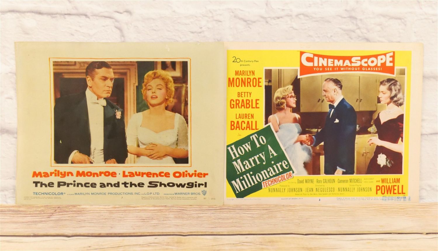 Lot of 2 Marilyn Monroe Lobby Cards. Including How to Marry a Millionaire and The Prince and the Showgirl. Nice condition for age. All invoices must be paid within 24 hours of the sale. We offer multiple shipping options please read the shipping terms for your options. We also offer Pick-Ups Thursday, Friday, Saturday, and Monday immediately following the sale. BY APPOINTMENT ONLY.