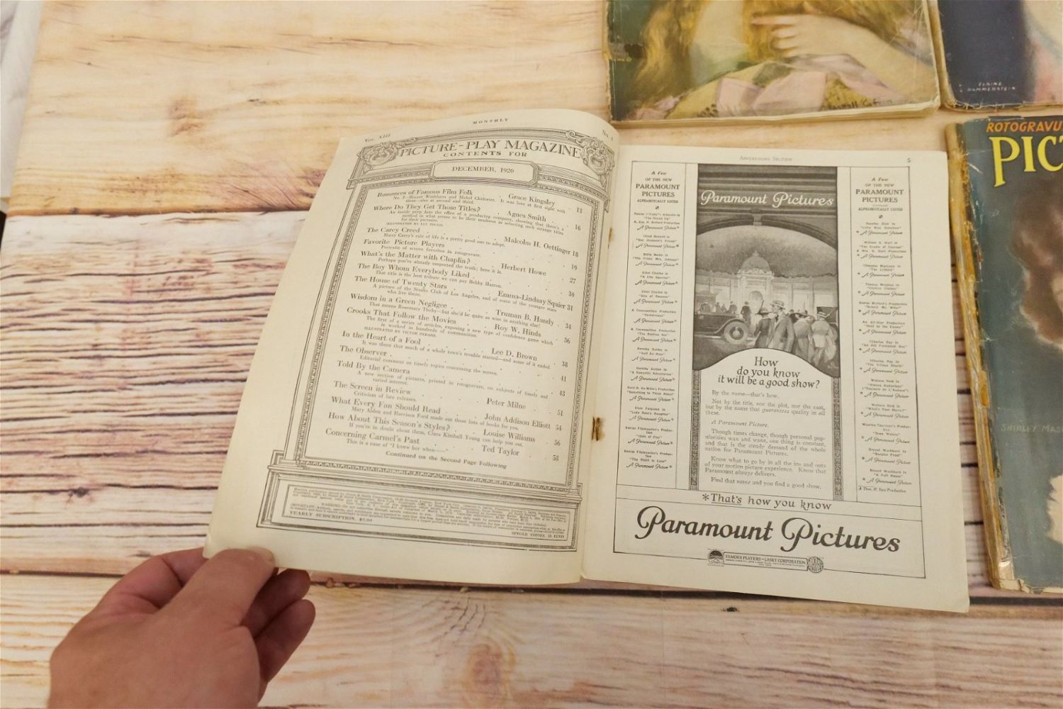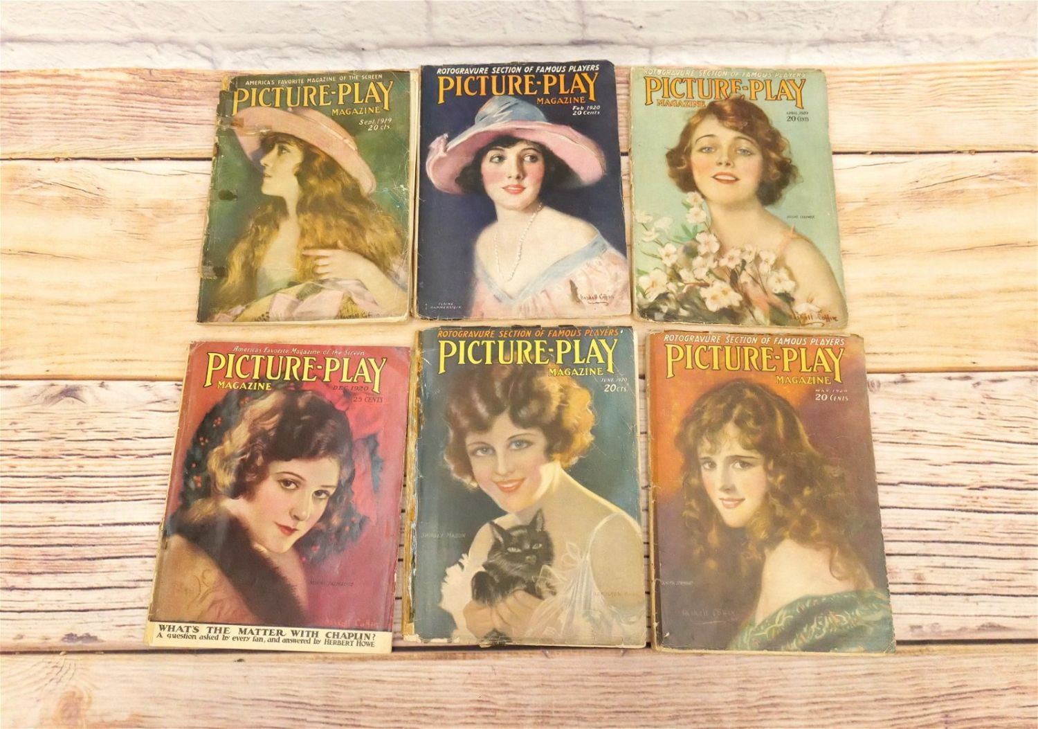 Lot of 6 Picture-Play Magazines including 1919 – Sept and 1920 (Feb, April-June, and Dec.). Many have tape to covers by spine. Conditions vary by magazine. Conditions range from poor to excellent. Some are coverless and missing pages. Some have damage to spines, discoloration, tears, etc. They have not been looked over from cover to cover. All invoices must be paid within 24 hours of the sale. We offer multiple shipping options please read the shipping terms for your options. We also offer Pick-Ups Thursday, Friday, Saturday, and Monday immediately following the sale. BY APPOINTMENT ONLY.