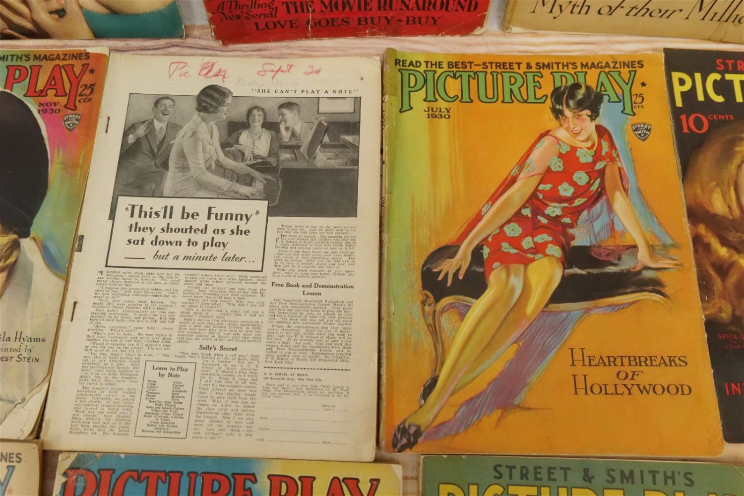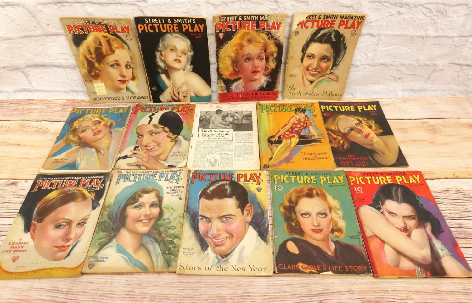 Lot of 15 Picture-Play Magazines including 7 Issues from 1930 (Feb, May-July, Sept., Nov., & Dec) and 8 Issues from 1931 (Feb., March, May, June – Coverless, Aug., and Oct.-Dec). Many have tape to covers by spine. Conditions vary by magazine. Conditions range from poor to excellent. Some are coverless and missing pages. Some have damage to spines, discoloration, tears, etc. They have not been looked over from cover to cover. All invoices must be paid within 24 hours of the sale. We offer multiple shipping options please read the shipping terms for your options. We also offer Pick-Ups Thursday, Friday, Saturday, and Monday immediately following the sale. BY APPOINTMENT ONLY.
