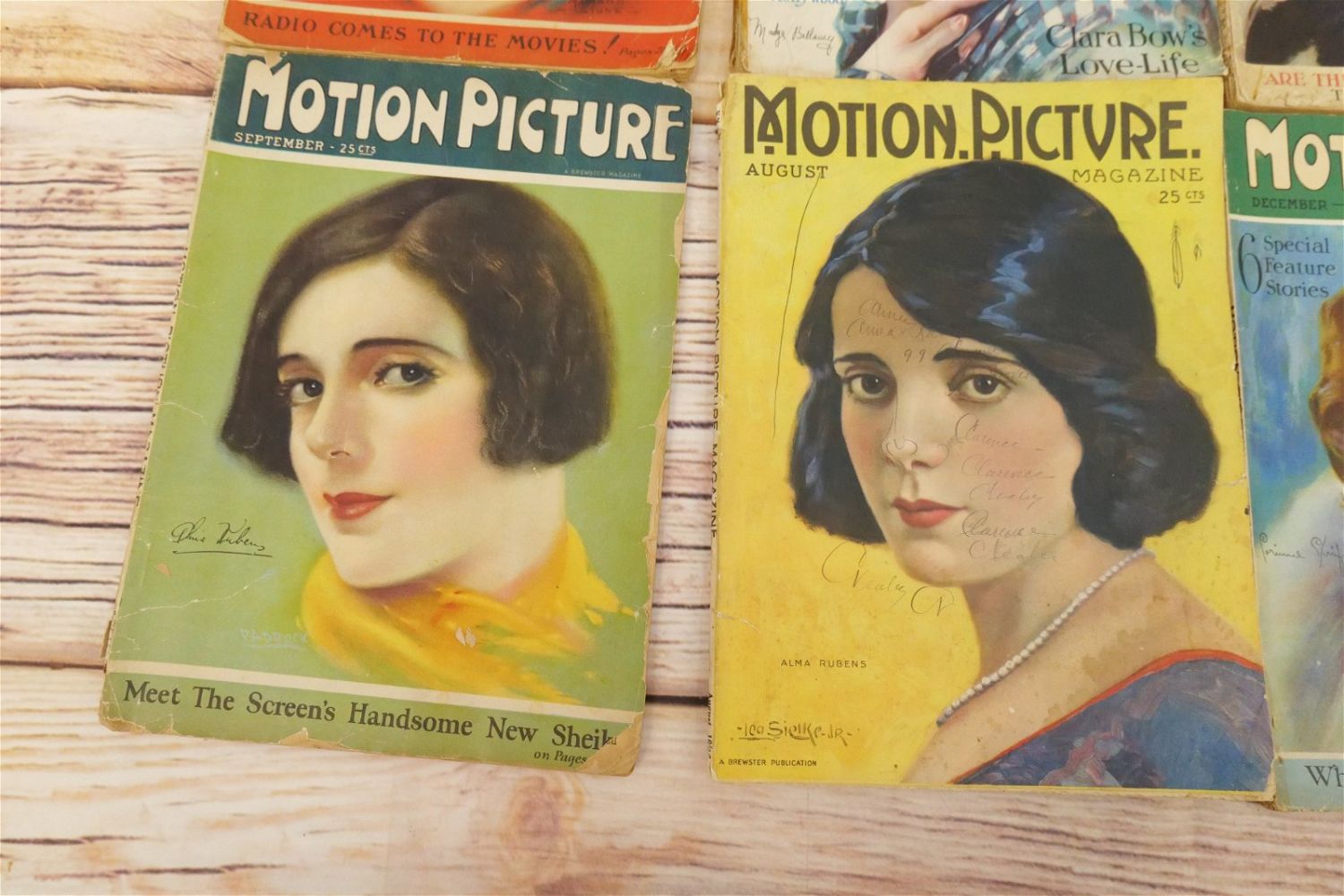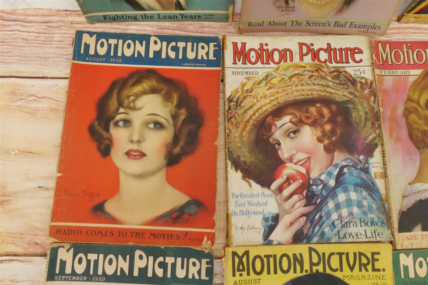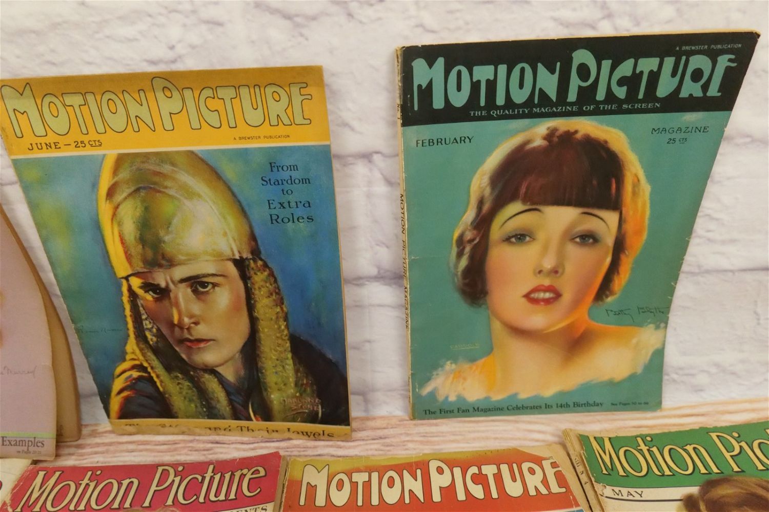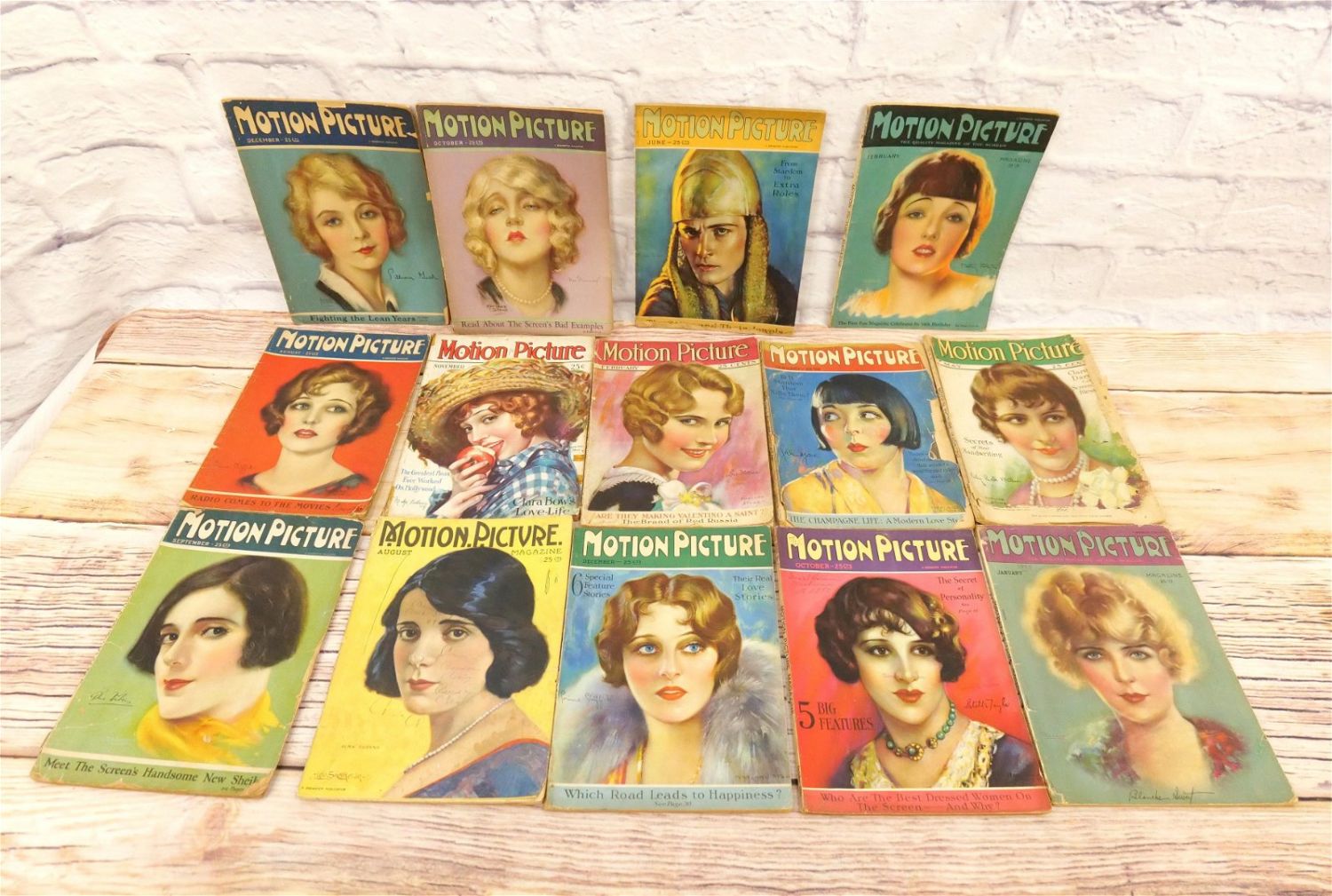 Lot of 14 Motion Picture Magazines – 1925-1928. Including 1925 (Jan, Feb, Aug-Oct & Dec.), 1926 (June, Aug, Oct, & Dec), 1927 (Jan & May) and 1928 (Feb & Nov). Many have taped spines and are in frail conditions with loss to paper edges. Many covers loose or detached. Conditions vary by magazine. Conditions range from poor to excellent. Some are coverless and missing pages. Some have damage to spines, discoloration, tears, etc. They have not been looked over from cover to cover. All invoices must be paid within 24 hours of the sale. We offer multiple shipping options please read the shipping terms for your options. We also offer Pick-Ups Thursday, Friday, Saturday, and Monday immediately following the sale. BY APPOINTMENT ONLY.
