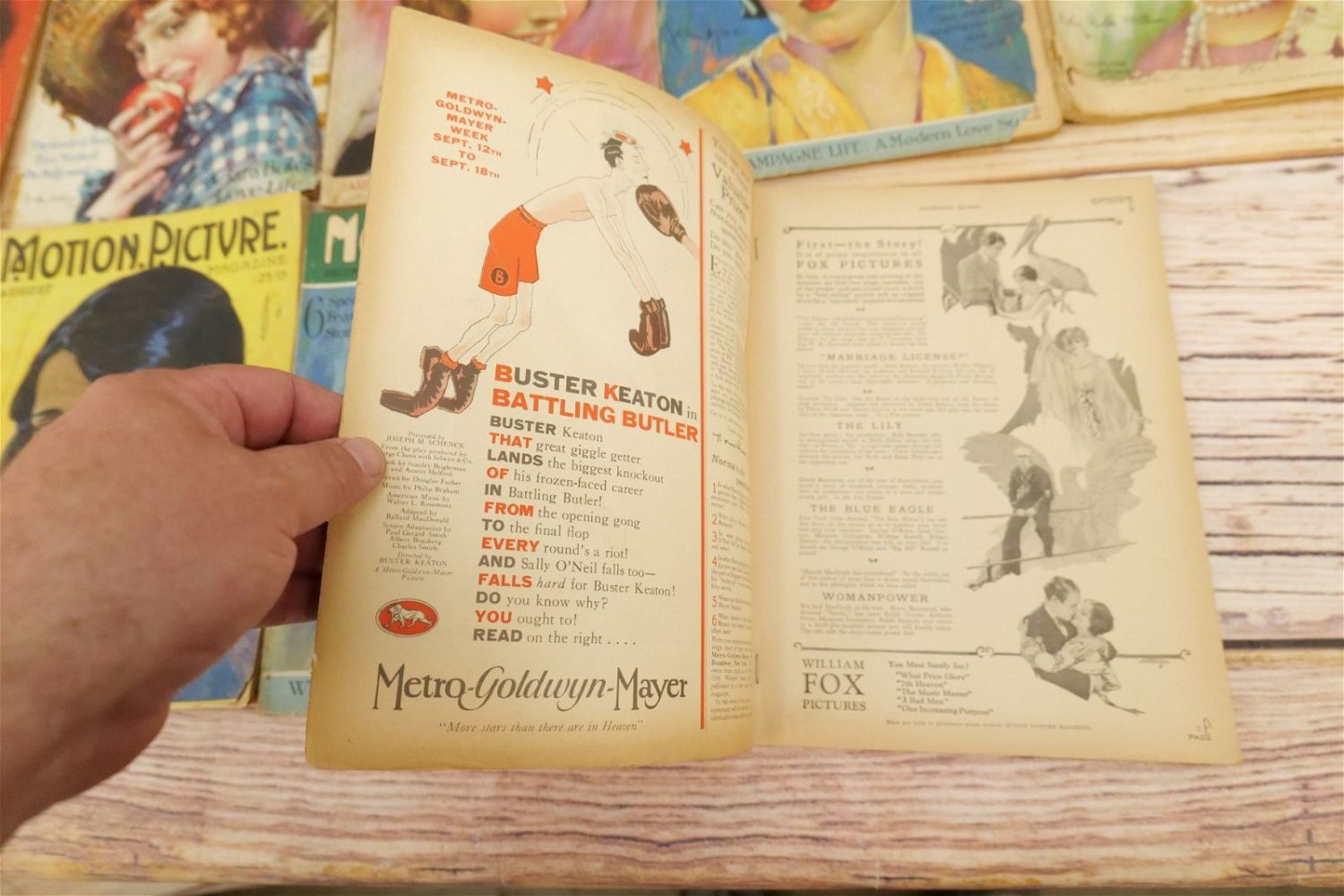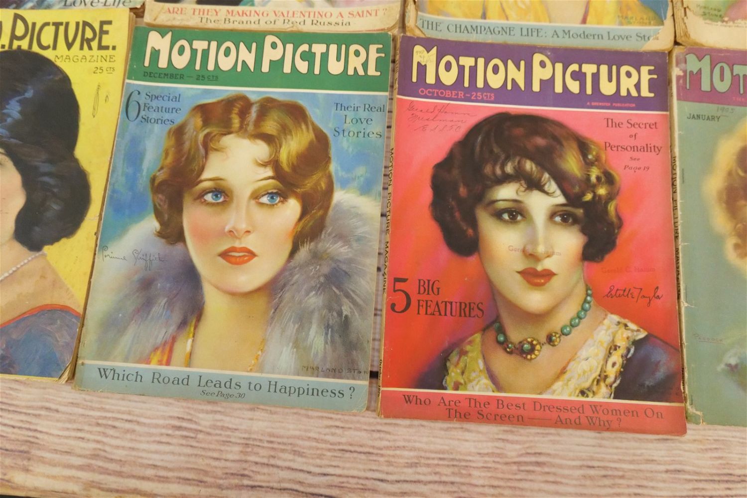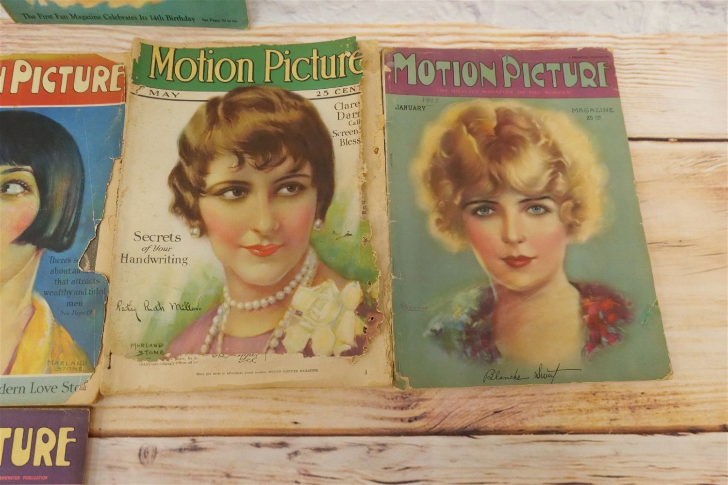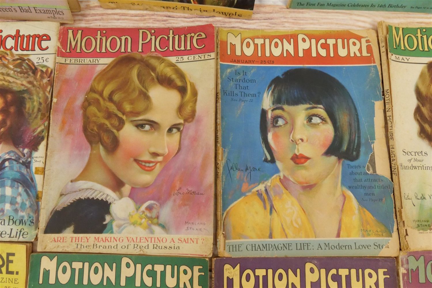 Lot of 14 Motion Picture Magazines – 1925-1928. Including 1925 (Jan, Feb, Aug-Oct & Dec.), 1926 (June, Aug, Oct, & Dec), 1927 (Jan & May) and 1928 (Feb & Nov). Many have taped spines and are in frail conditions with loss to paper edges. Many covers loose or detached. Conditions vary by magazine. Conditions range from poor to excellent. Some are coverless and missing pages. Some have damage to spines, discoloration, tears, etc. They have not been looked over from cover to cover. All invoices must be paid within 24 hours of the sale. We offer multiple shipping options please read the shipping terms for your options. We also offer Pick-Ups Thursday, Friday, Saturday, and Monday immediately following the sale. BY APPOINTMENT ONLY.