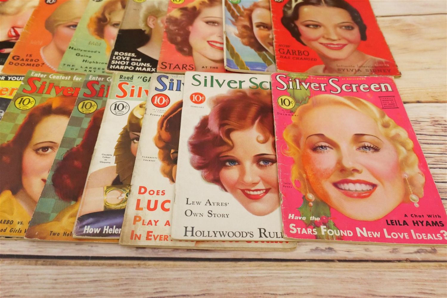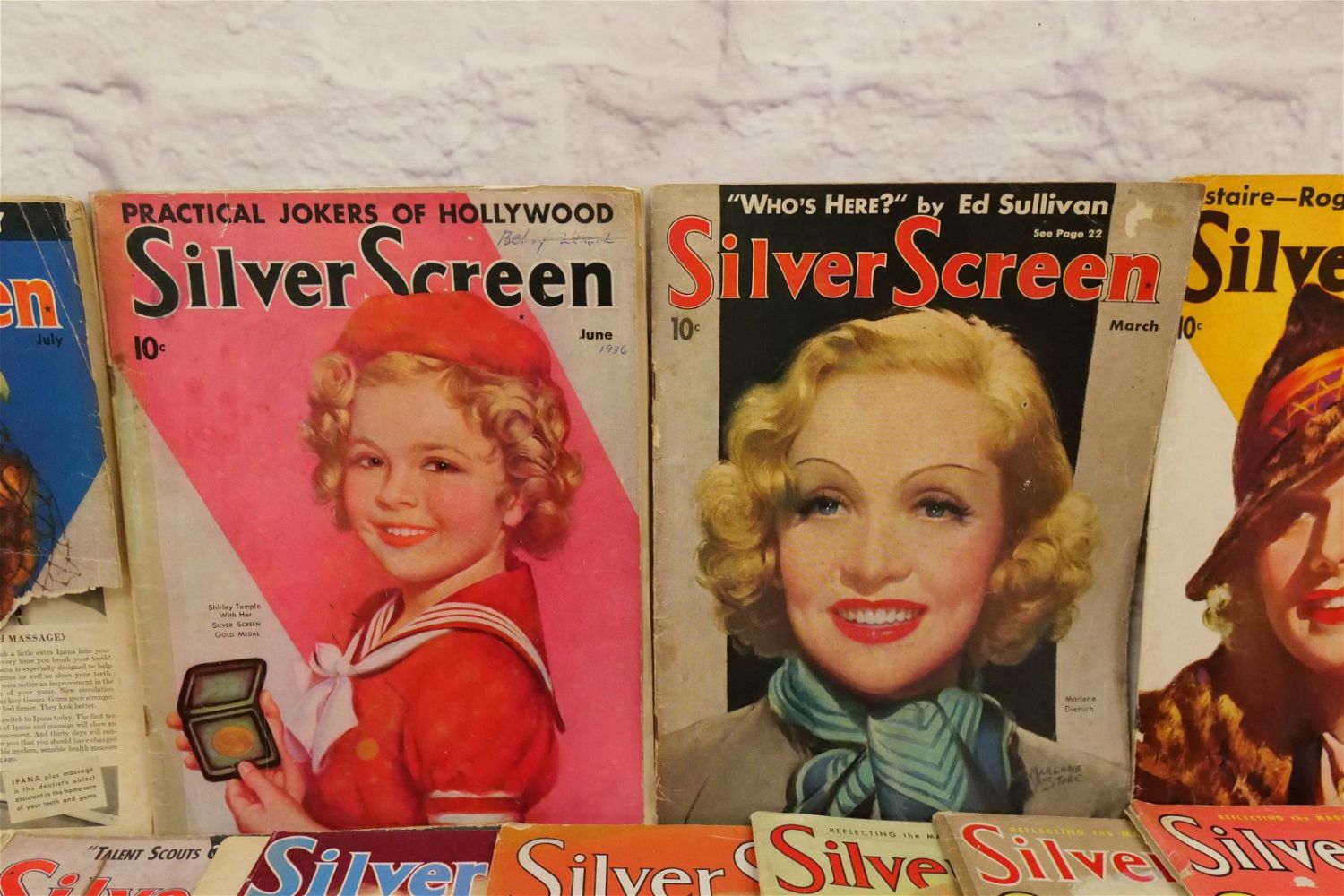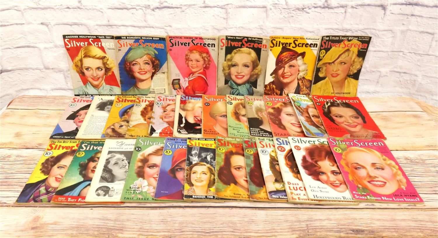 Large Lot of Silver Screen Magazines – 1930’s. Includes Cover Art of Loretta Young, Claudette Colbert, Janet Gaynor, Shirley Temple, Bette Davis, Marlene Dietrich and More. A couple are coverless. Conditions vary by magazine. Conditions range from poor to excellent. Some are coverless and missing pages. Some have damage to spines, discoloration, tears, etc. They have not been looked over from cover to cover. All invoices must be paid within 24 hours of the sale. We offer multiple shipping options please read the shipping terms for your options. We also offer Pick-Ups Thursday, Friday, Saturday, and Monday immediately following the sale. BY APPOINTMENT ONLY.