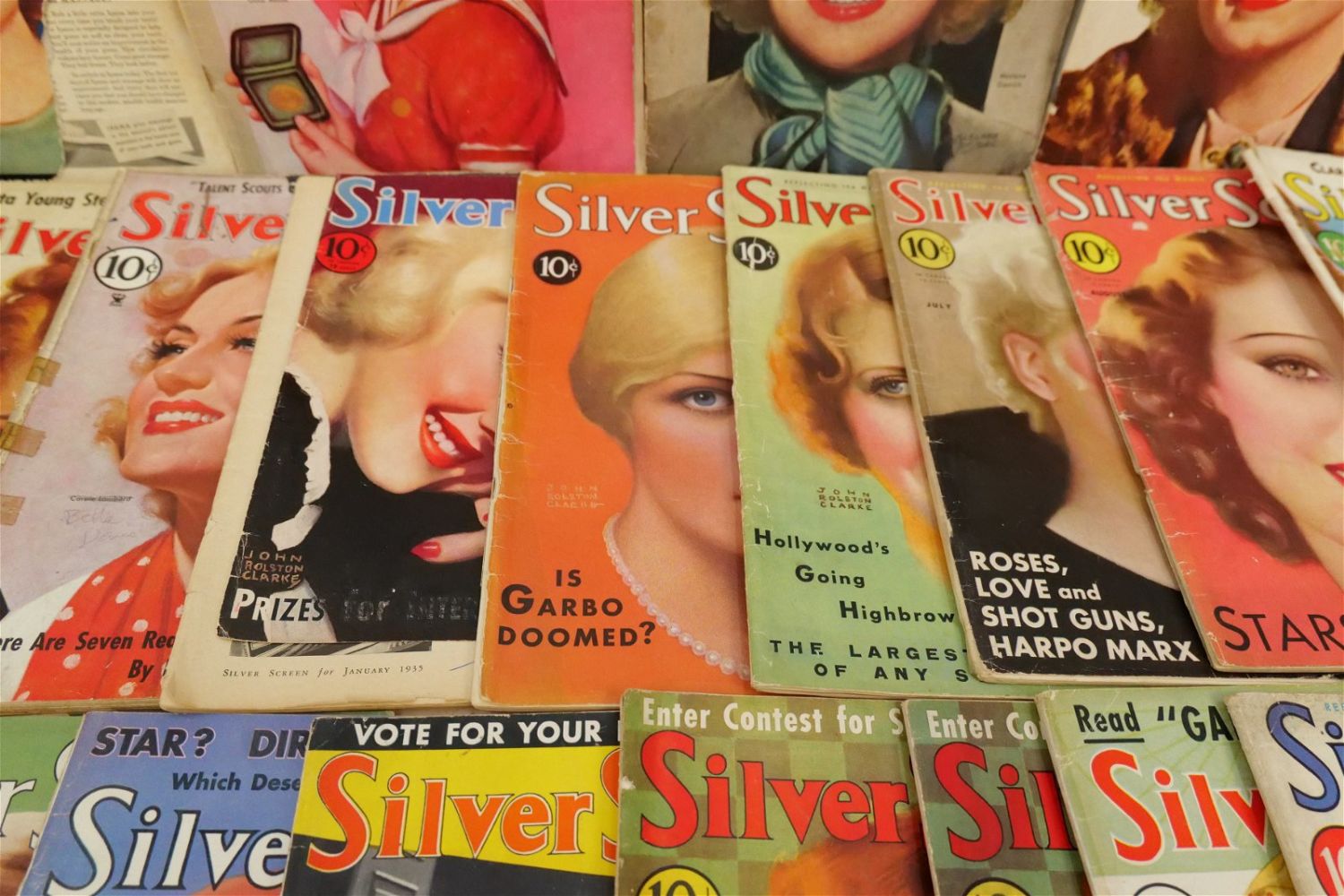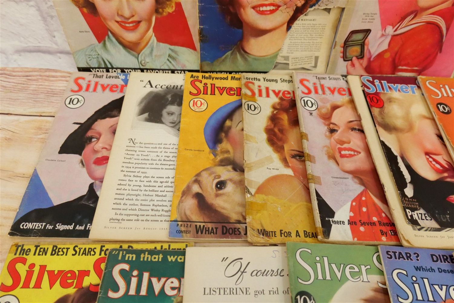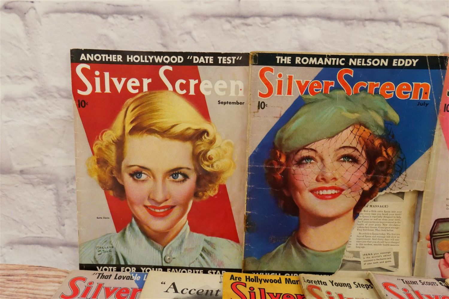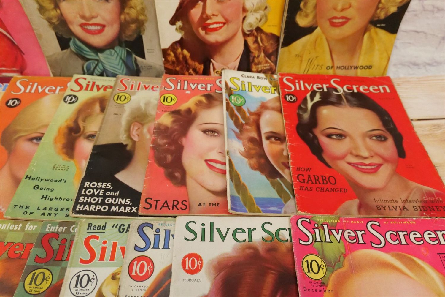 Large Lot of Silver Screen Magazines – 1930’s. Includes Cover Art of Loretta Young, Claudette Colbert, Janet Gaynor, Shirley Temple, Bette Davis, Marlene Dietrich and More. A couple are coverless. Conditions vary by magazine. Conditions range from poor to excellent. Some are coverless and missing pages. Some have damage to spines, discoloration, tears, etc. They have not been looked over from cover to cover. All invoices must be paid within 24 hours of the sale. We offer multiple shipping options please read the shipping terms for your options. We also offer Pick-Ups Thursday, Friday, Saturday, and Monday immediately following the sale. BY APPOINTMENT ONLY.