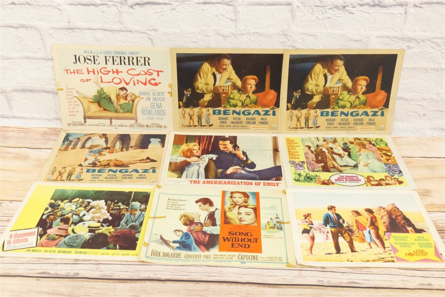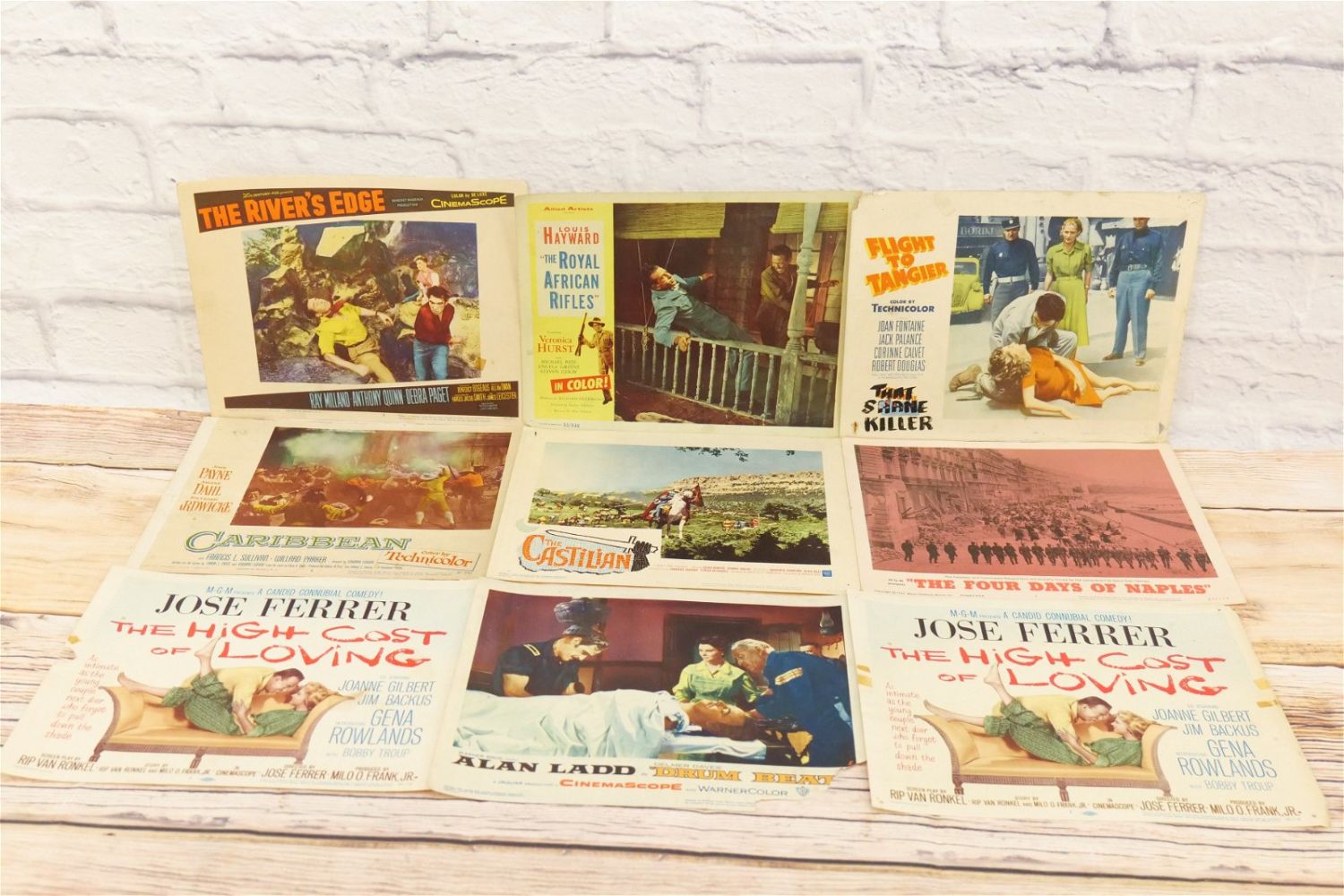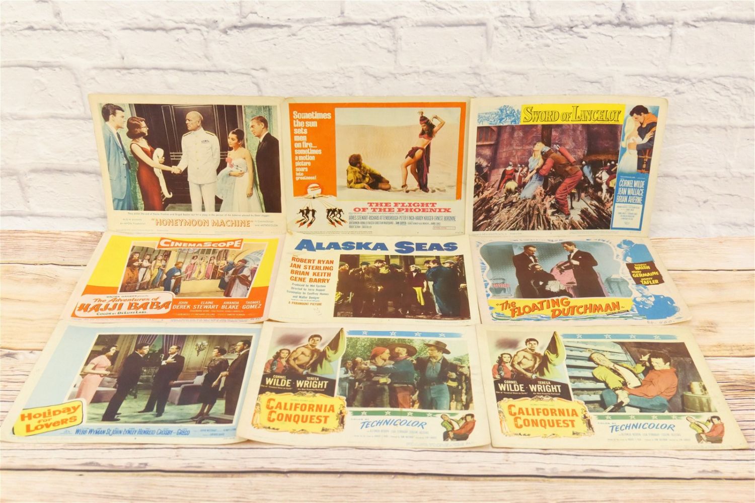 Lot of 50 Lobby Cards from the 50’s and 60’s. Including Sword of Lancelot, Five Finger Exercise, Song Without End, It Happened in Athens, Bengazi, The High Cost of Loving, The Royal African Rifles, Caribbean, The Rivers Edge, California Conquest, Alaska Seas, The Adventures of Hajji Baba and More. All invoices must be paid within 24 hours of the sale. We offer multiple shipping options please read the shipping terms for your options. We also offer Pick-Ups Thursday, Friday, Saturday, and Monday immediately following the sale. BY APPOINTMENT ONLY.