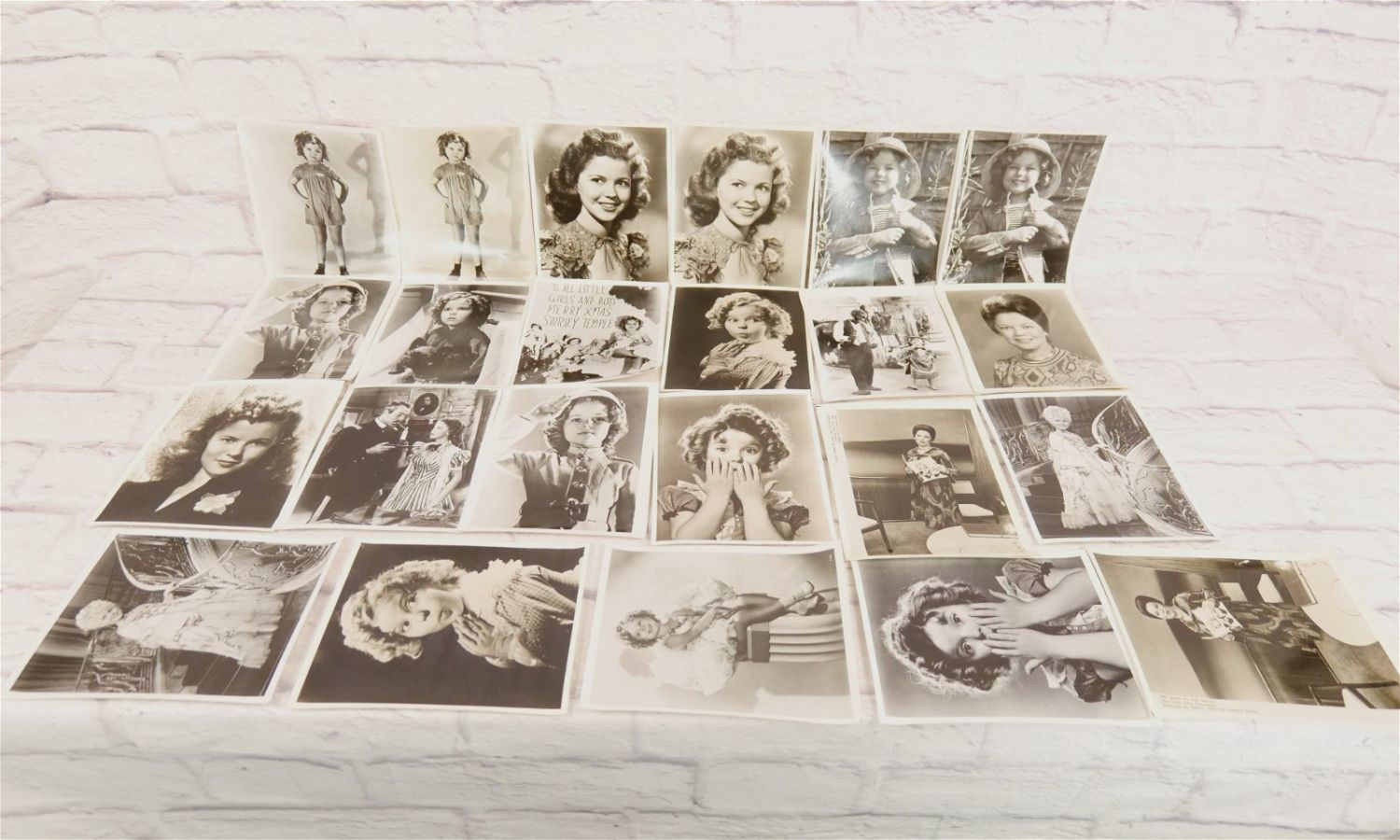 Lot of 21 Original Shirley Temple Photographs from the Estate of Gustavo Parras. Has some bending and water damage from improper storage. Photos appear to have a basement smell. All invoices must be paid within 24 hours of the sale. We offer multiple shipping options please read the shipping terms for your options. We also offer Pick-Ups Thursday, Friday, Saturday, and Monday immediately following the sale. BY APPOINTMENT ONLY.