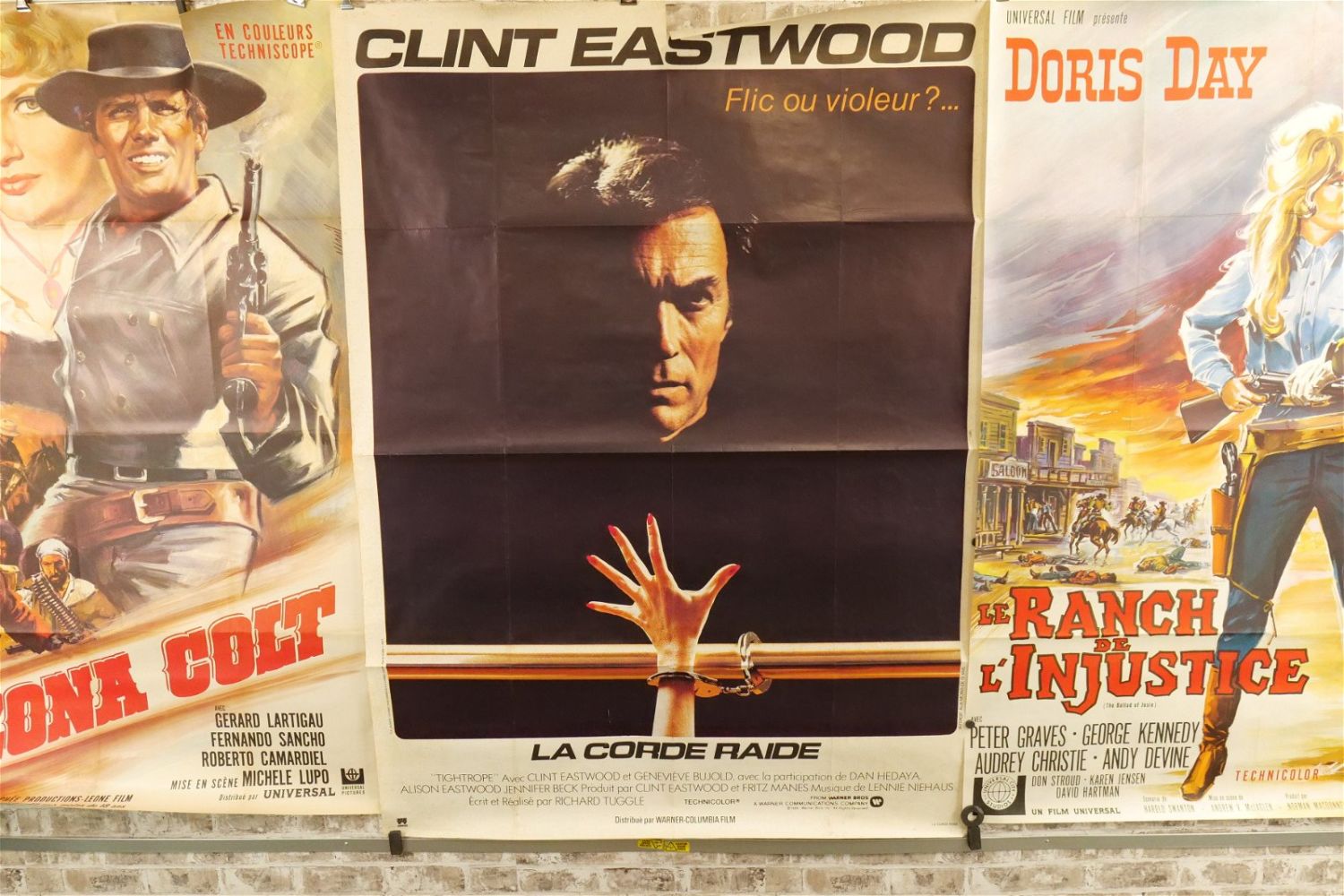 Lot of 3 Oversized One Sheet French Movie Posters. Including La Corde Raide (1984) Starring Clint Eastwood. Has some foxing to poster and small tears, holes and creases. Second – Le Ranch de L’Injustice (1967) – US Movie Translation – "The Ballad of Josie". Starring Doris Day. Some creases and small tears but overall very good condition. Third – Arizona Colt (1966). Starring Giuliano Gemma and Corinne Marchand. Some tears but overall excellent condition. All have minor tearing and creasing unless noted in good condition. All invoices must be paid within 24 hours of the sale. We offer multiple shipping options please read the shipping terms for your options. We also offer Pick-Ups Thursday, Friday, Saturday, and Monday immediately following the sale. BY APPOINTMENT ONLY.
