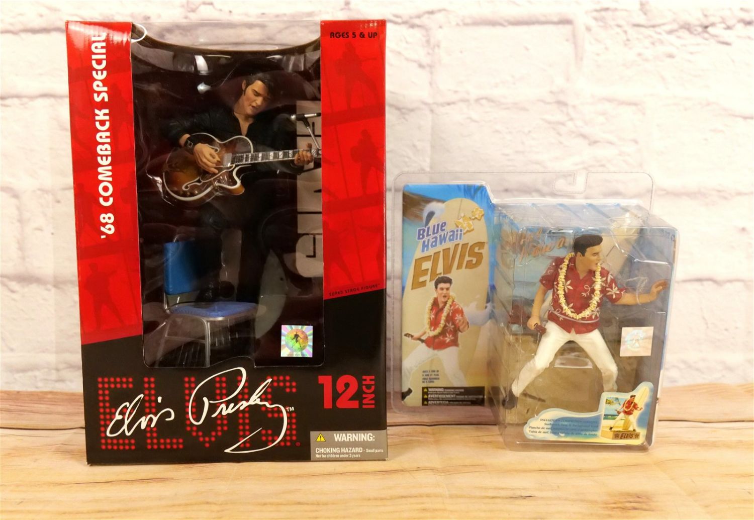 Lot of 2 McFarlane Elvis Figures including ’68 Comeback Special 12" Figure and Blue Hawaii Elvis. Both new in package. All invoices must be paid within 24 hours of the sale. We offer multiple shipping options please read the shipping terms for your options. Local pickups are at our Monmouth Junction location on Thursday, Friday, Saturday and Monday ONLY! All pickups are by appointment only.