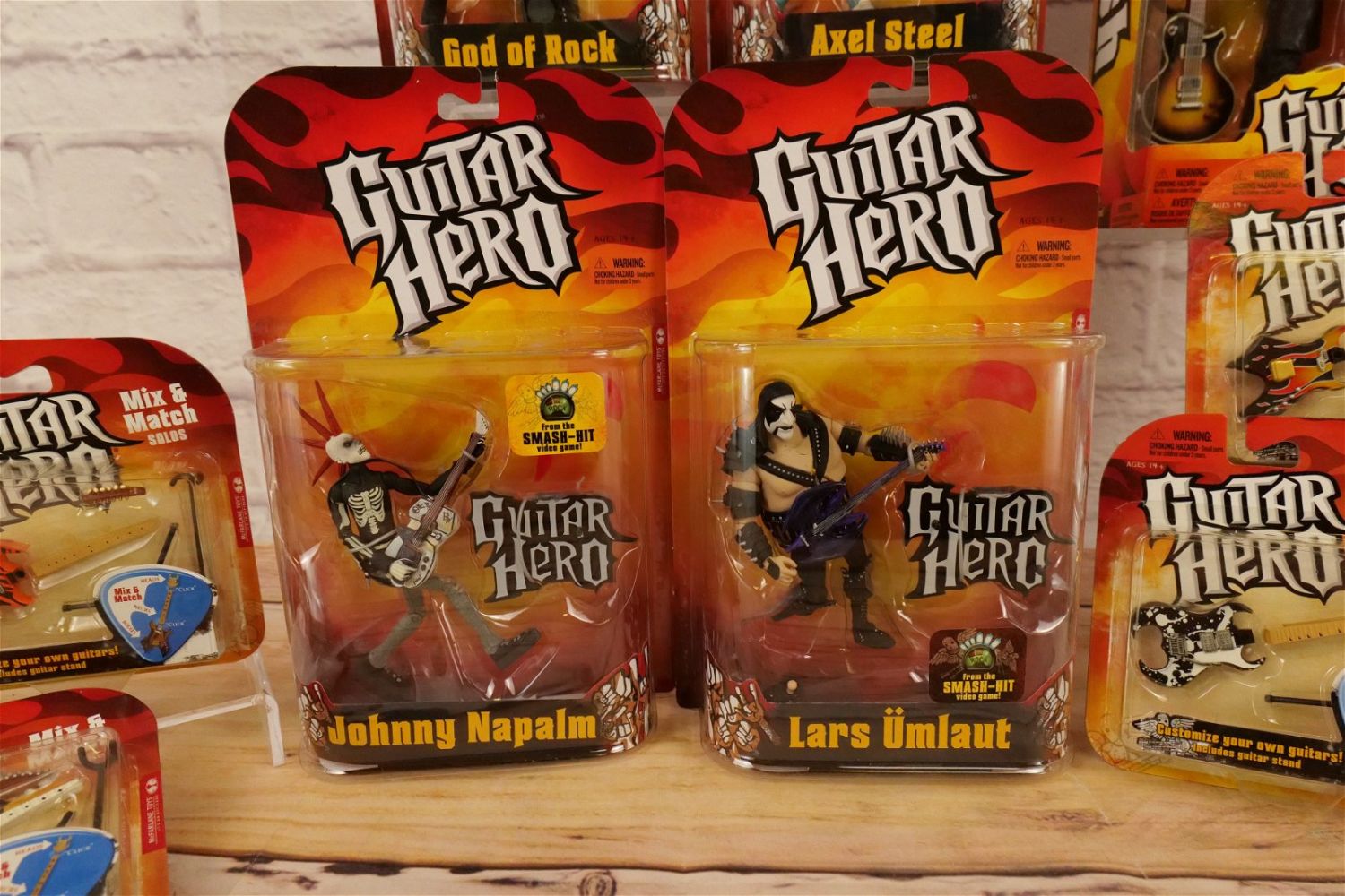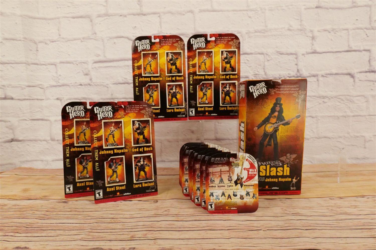 Lot of McFarlane Guitar Hero Action Figures including 10" Slash, God of Rock, Axel Steel Lars Umlaut, Johnny Napalm, and 9 Mix and Match Solos Mini Guitars. Lars has a loose foot inside of the package. All new in package. All invoices must be paid within 24 hours of the sale. We offer multiple shipping options please read the shipping terms for your options. Local pickups are at our Monmouth Junction location on Thursday, Friday, Saturday and Monday ONLY! All pickups are by appointment only.