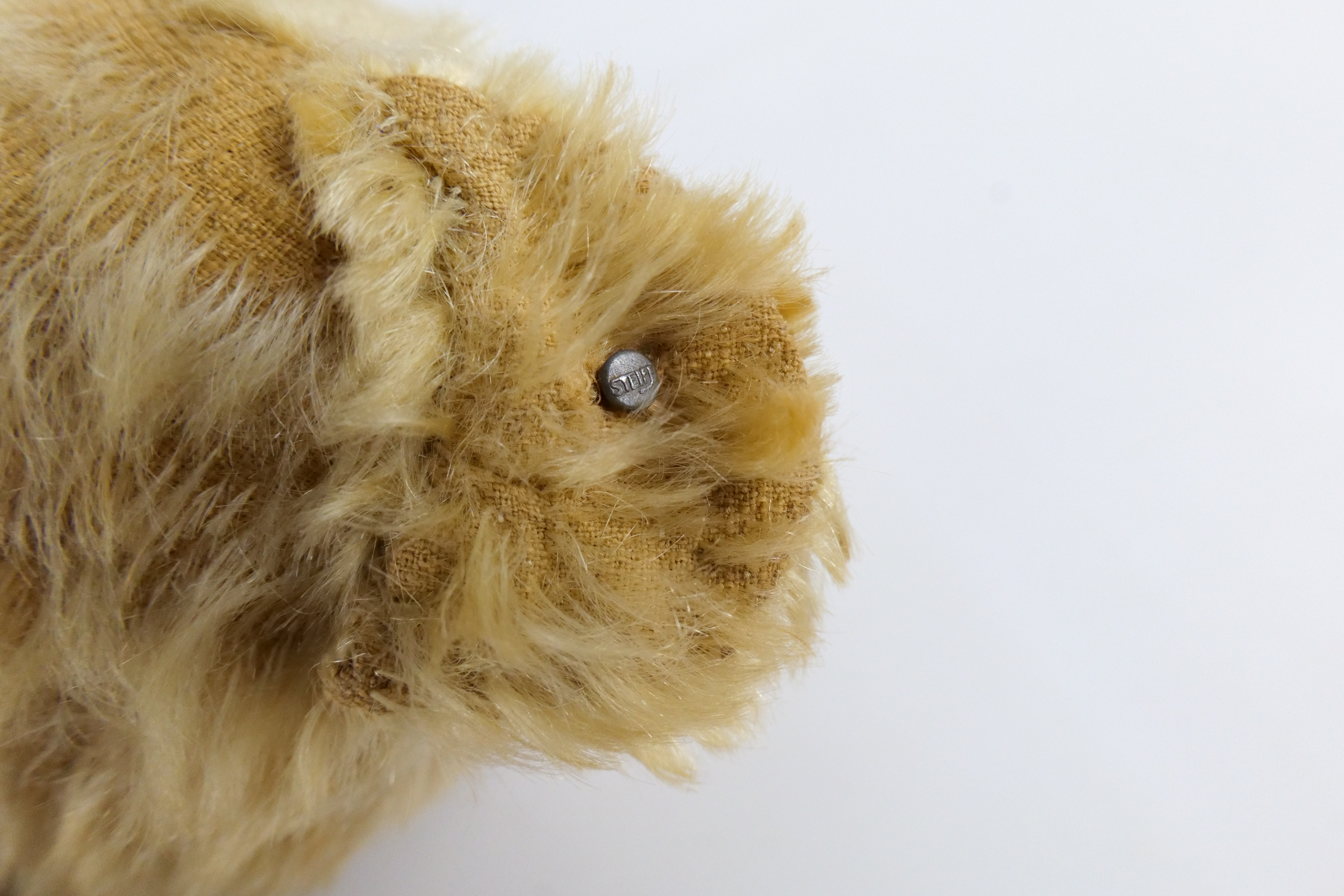 Antique Steiff Mohair Teddy Bear. Has some condition issues – missing mohair, string coming loose, felt off feet has tears. Just needs a little TLC. Measures 18″ long. All invoices must be paid within 24 hours of the sale. We offer multiple shipping options please read the shipping terms to understand your options. We also offer Pick-Ups Friday, Saturday, and Monday immediately following the sale. BY APPOINTMENT ONLY.