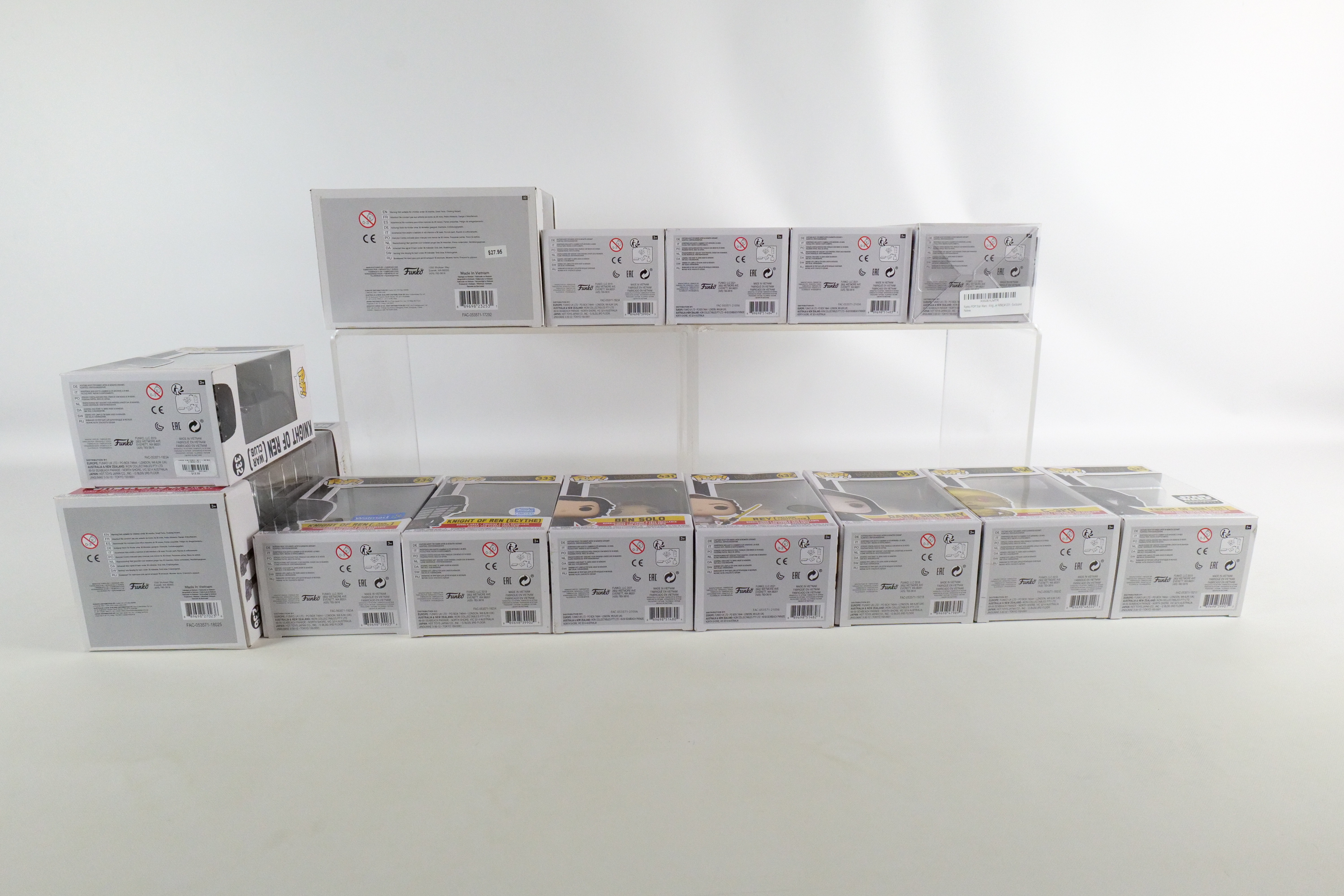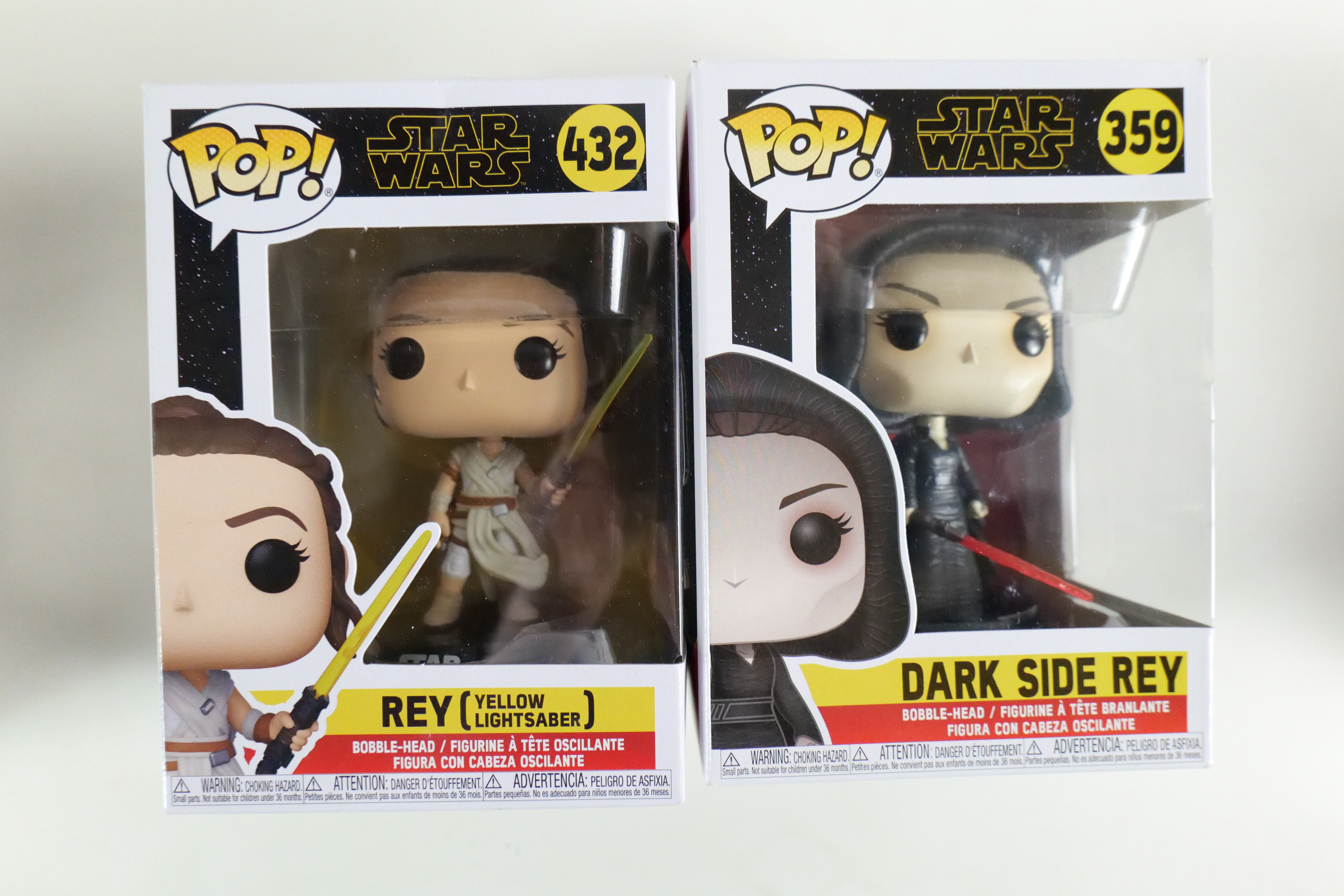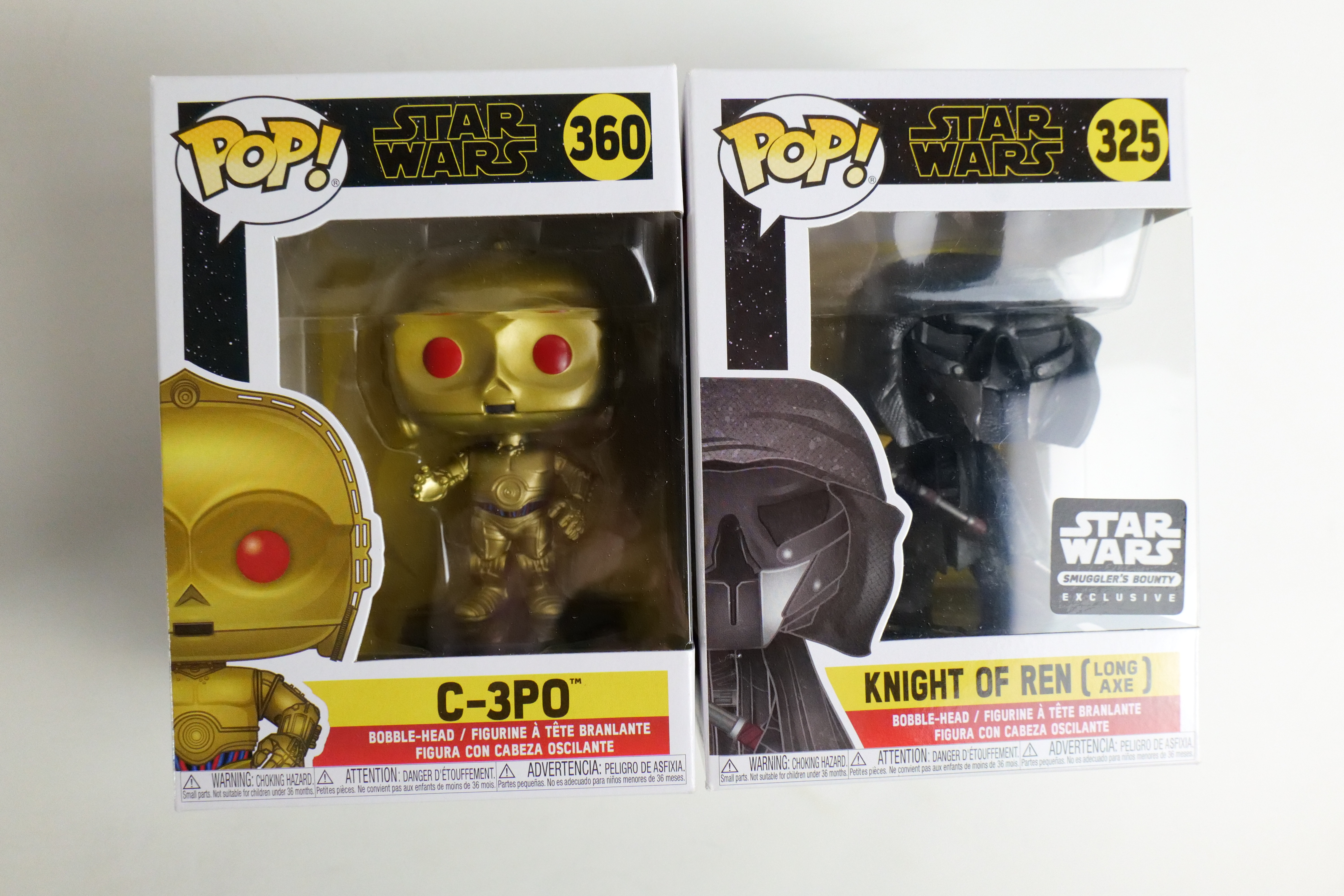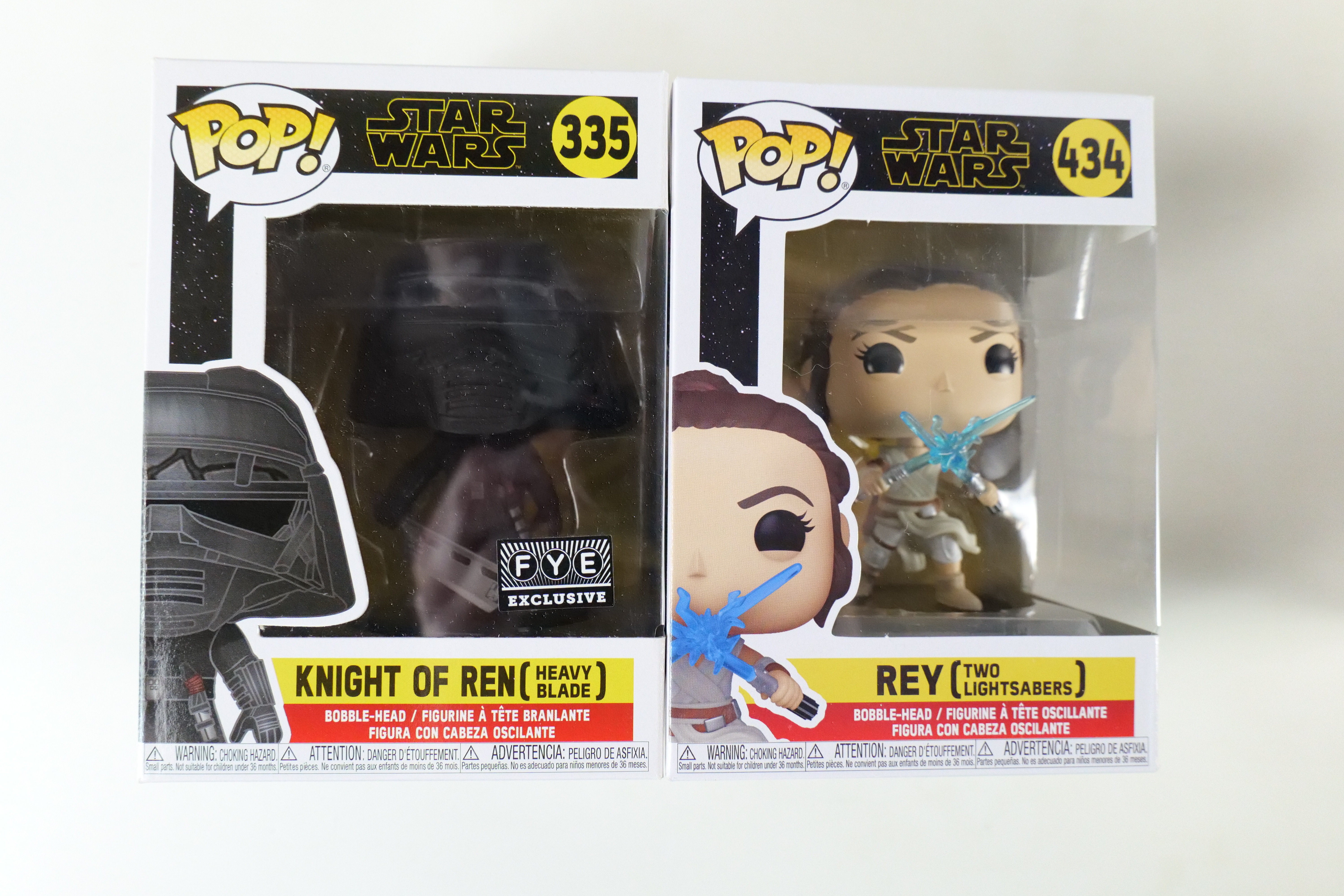 Lot of 14 Funko Star Wars Pops. Including Luke Skywalker with Speeder Bike #229 Chase, Chewbacca with AT-ST #236, Knight of Ren (Long Axe) #325 Smugglers Bounty Exclusive, Knight of Ren (Blaster Rifle) #331 GameStop Exclusive, Knight of Ren (War Club) #332 Hot Topic Exclusive, Knight of Ren (Scythe) #333 Limited Edition, Knight of Ren (Arm Cannon) #334 Walmart Exclusive, Knight of Ren (Heavy Blade) #335 FYE Exclusive, Dark Side Rey #359, C-3PO #360, Ben Solo #431, Rey (Yellow Lightsaber) #432, Emperor Palpatine #433 and Rey (Two Lightsabers) #434. All pops are in new condition and come in the original boxes. The boxes may have slight wear/slight creasing/dings from storage. All invoices must be paid within 24 hours of the sale. We offer multiple shipping options please read the shipping terms to understand your options. We also offer Pick-Ups Friday, Saturday, and Monday immediately following the sale. BY APPOINTMENT ONLY.