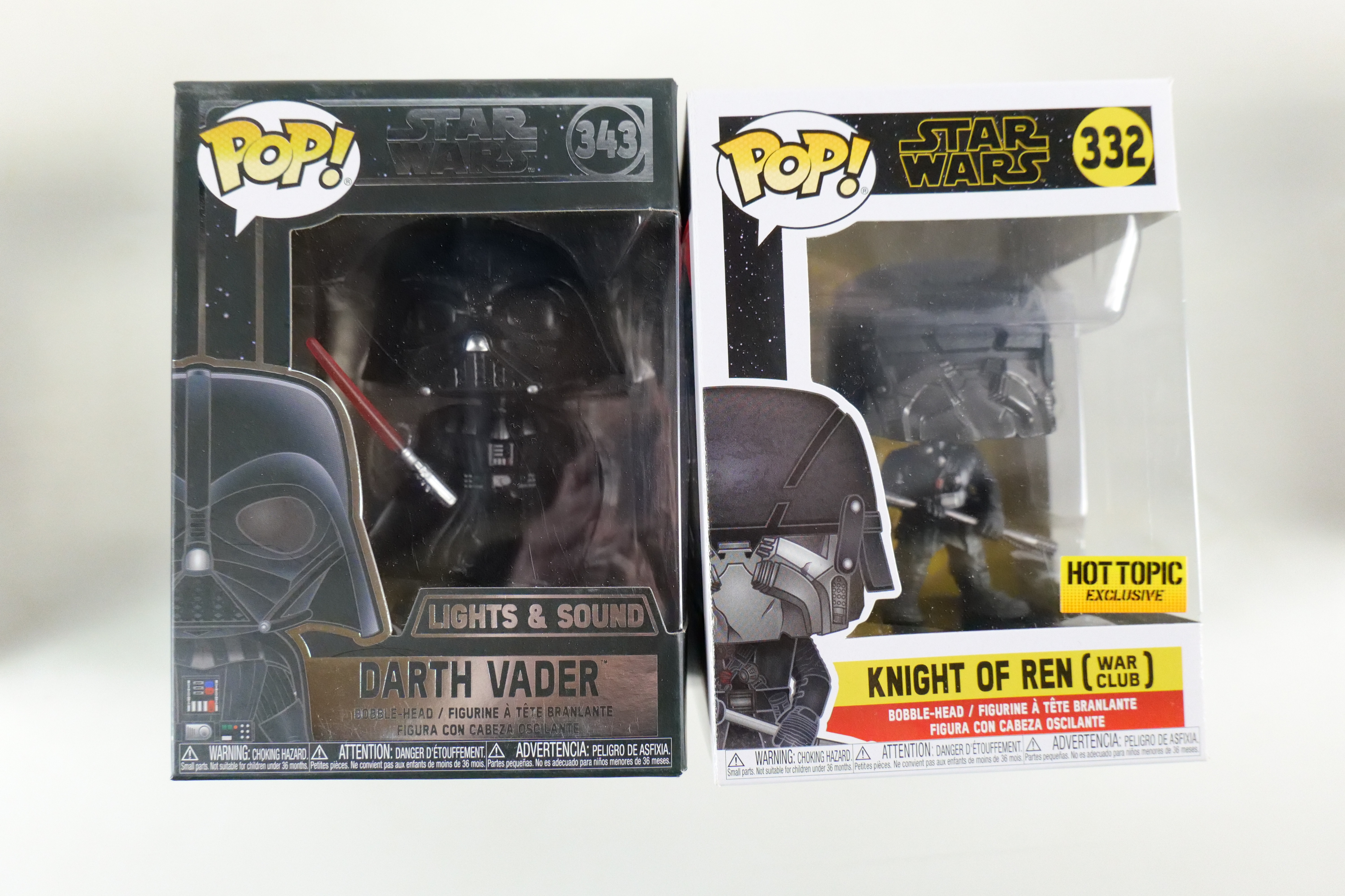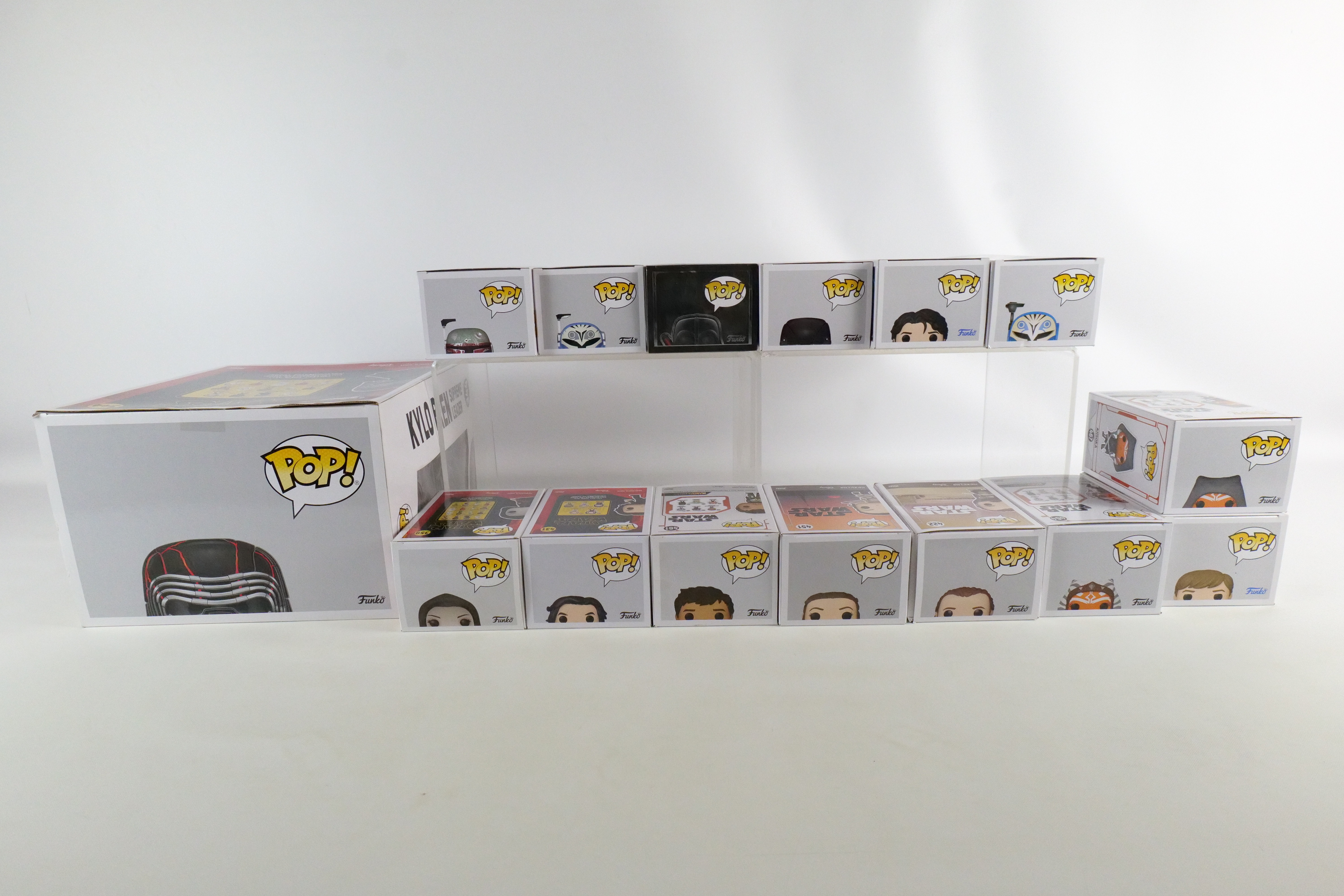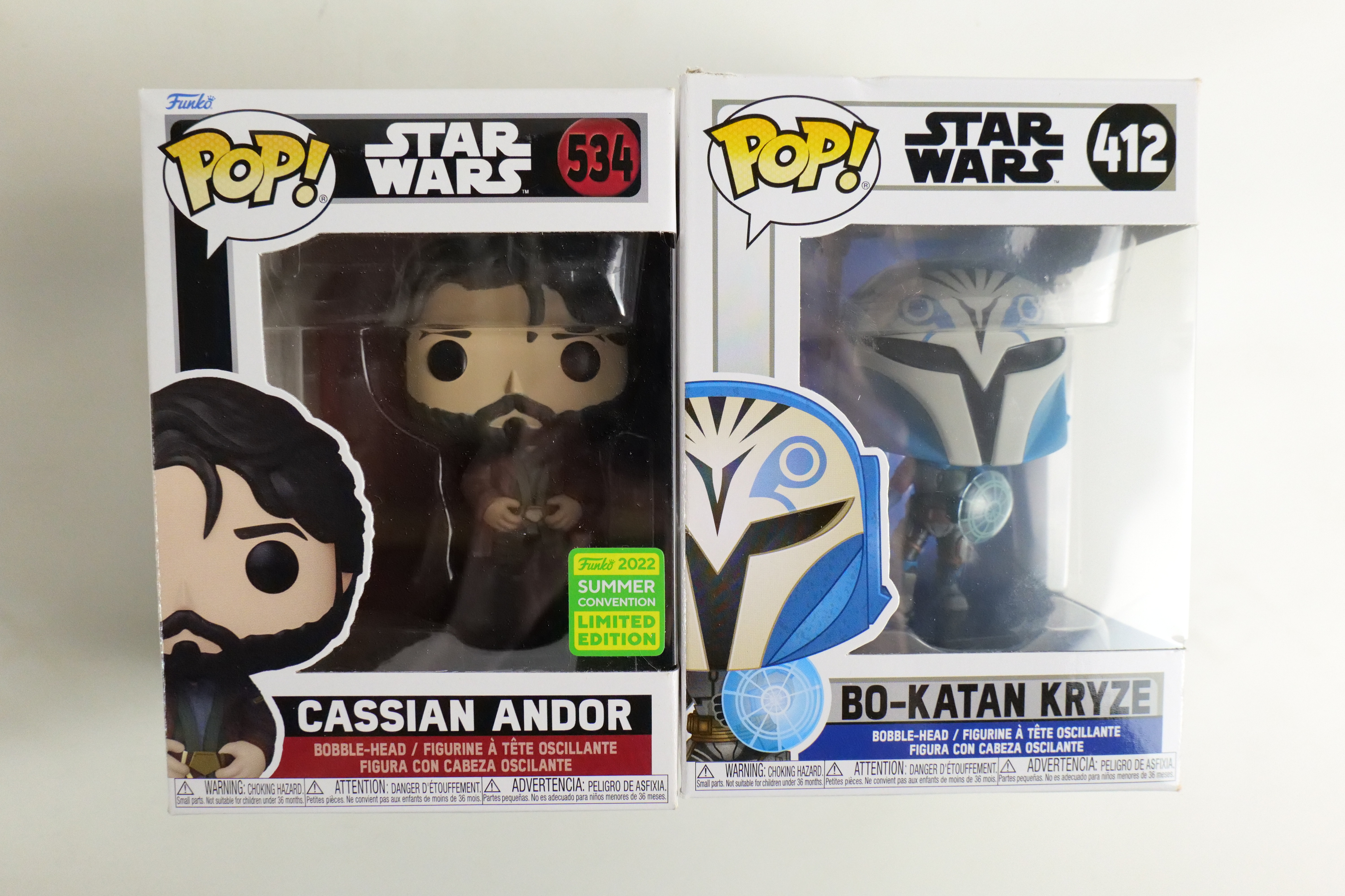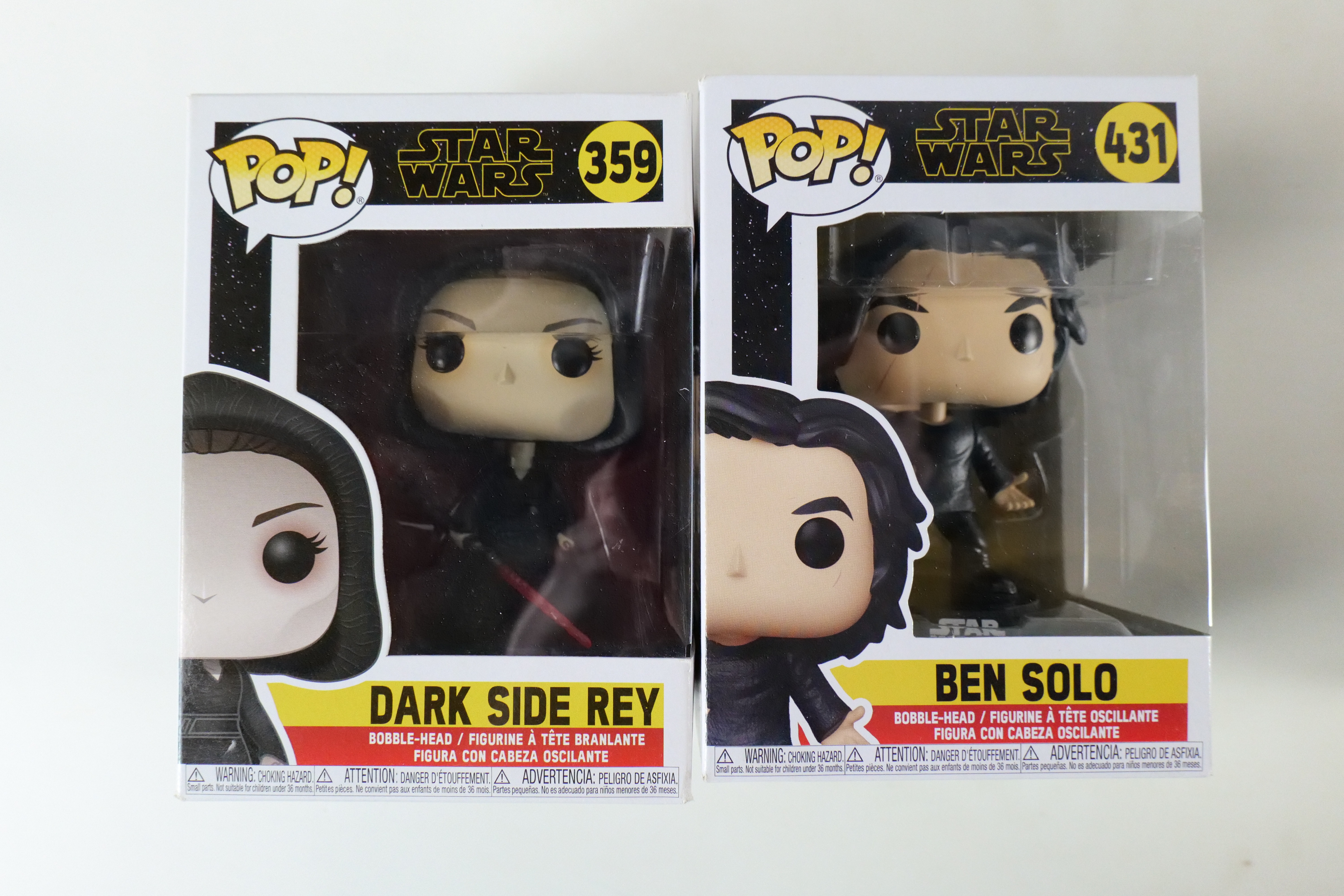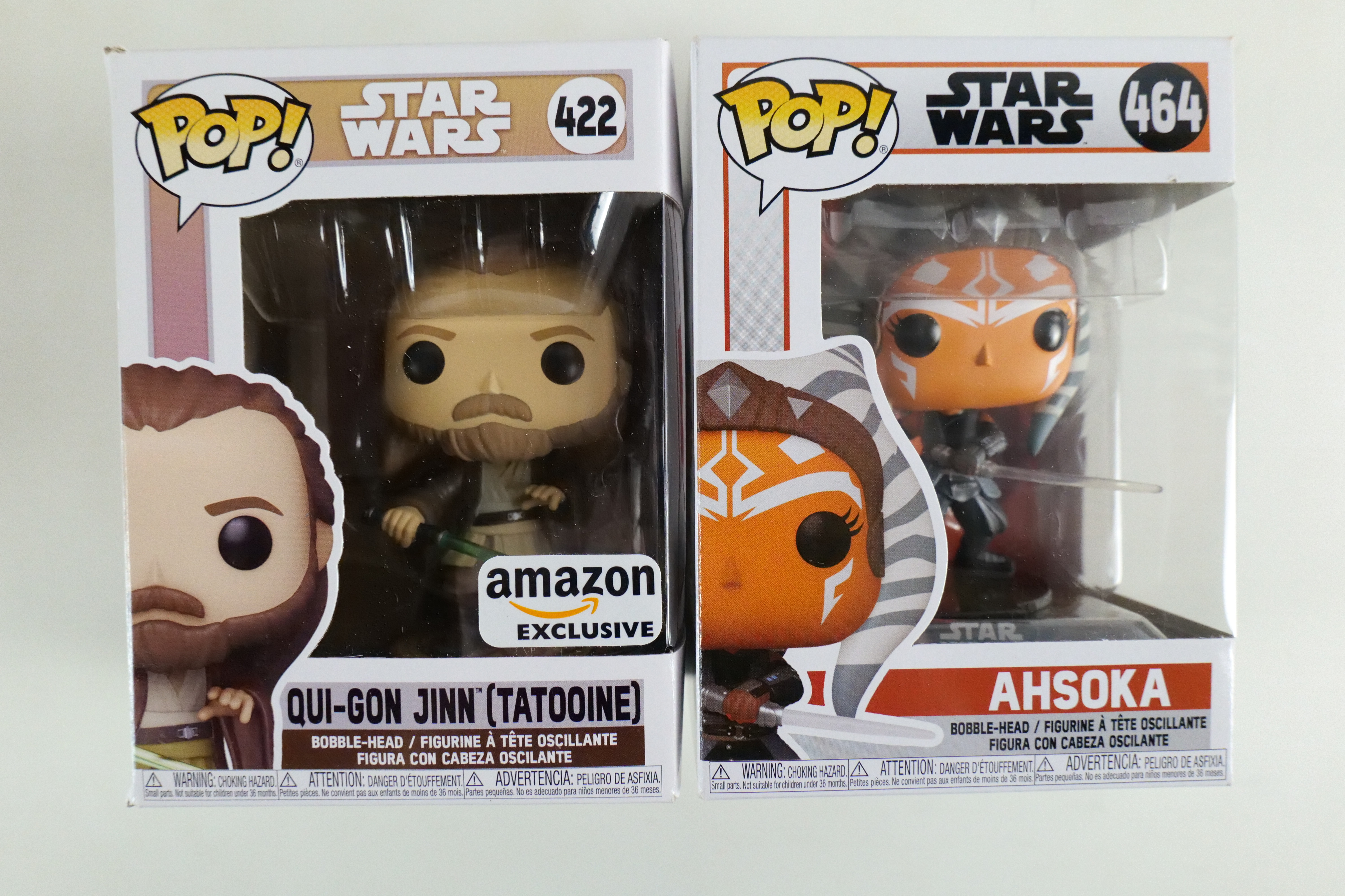 Lot of 15 Funko Star Wars Pops. Including Knight of Ren (War Club) #332, Darth Vader #343 Lights and Sound, Kylo Ren Supreme Leader #344 Glow in the Dark, Dark Side Rey #359, Bo-Katan Kryze #412, Qui-Gon Jinn #422 Amazon Exclusive – Some box dings, Ben Solo #431, Rey (Jakku) #451 Summer Convention Exclusive, The Mandalorian with Grogu #461, Boba Fett #462, Bo-Katan Kryze #463, Ahsoka #464, Ahsoka #467 Amazon Exclusive, Luke Skywalker with Grogu #482, and Cassian Andor #534 Summer Convention Exclusive. All pops are in new condition and come in the original boxes. The boxes may have slight wear/slight creasing/dings from storage. All invoices must be paid within 24 hours of the sale. We offer multiple shipping options please read the shipping terms to understand your options. We also offer Pick-Ups Friday, Saturday, and Monday immediately following the sale. BY APPOINTMENT ONLY.