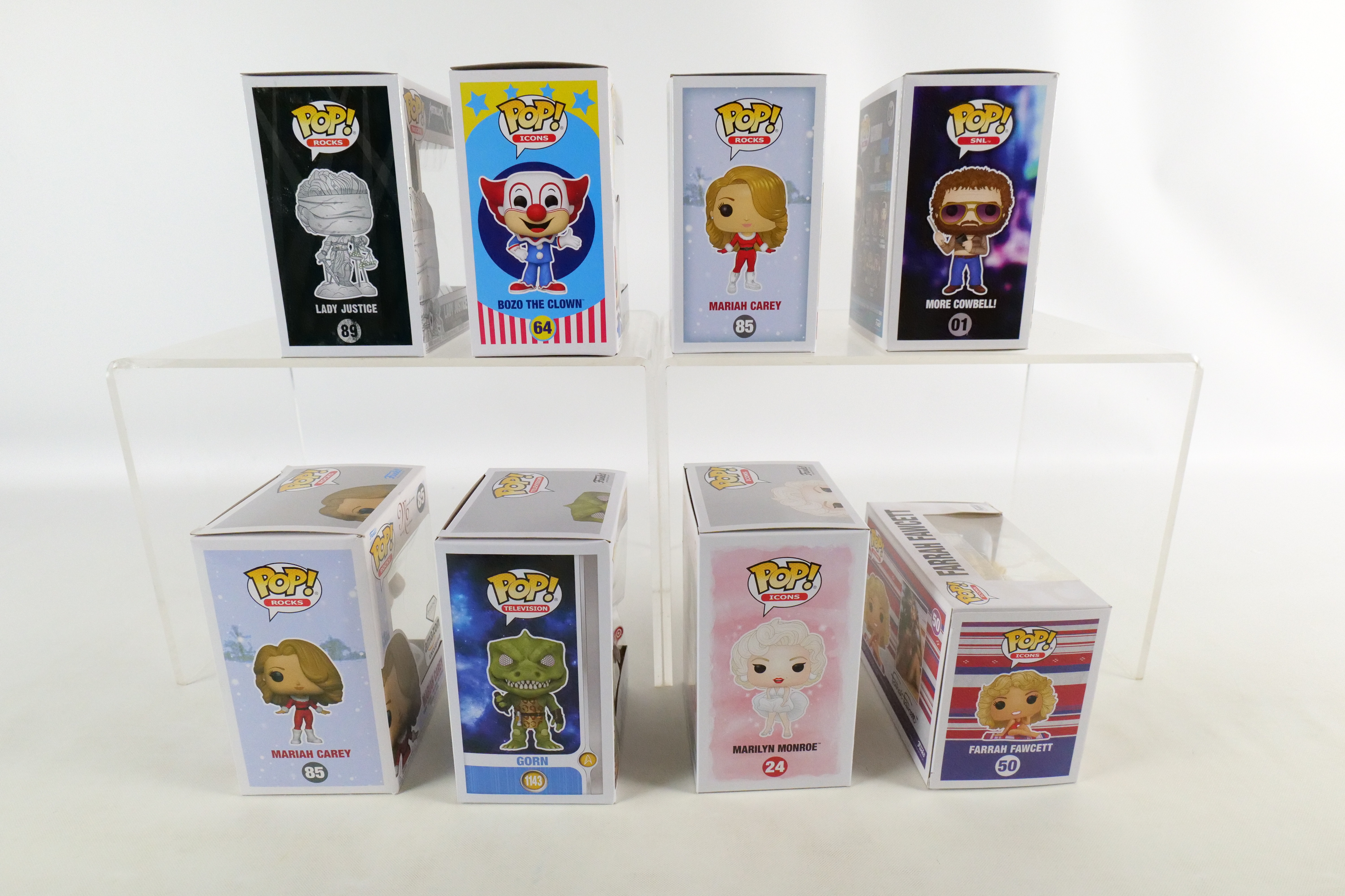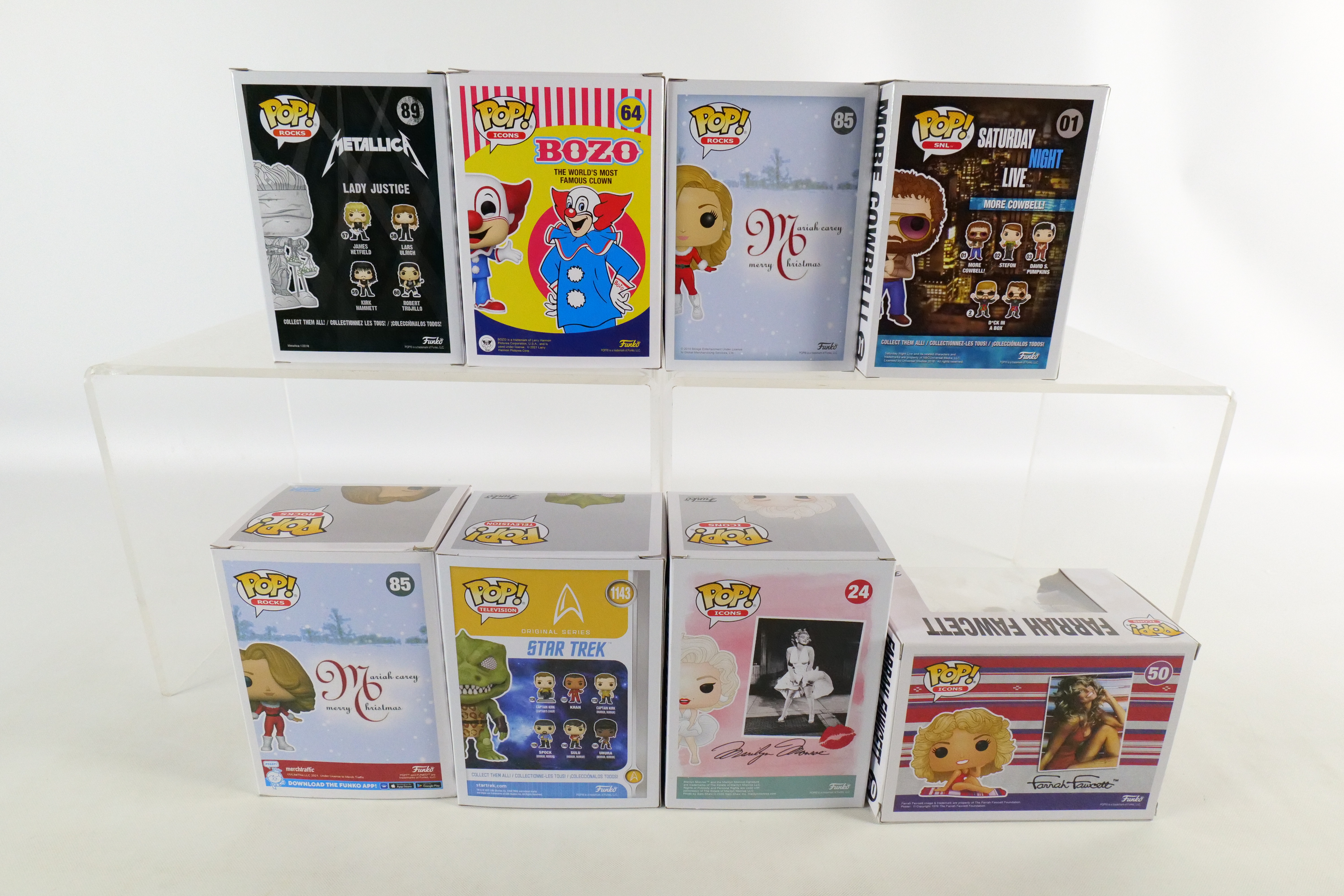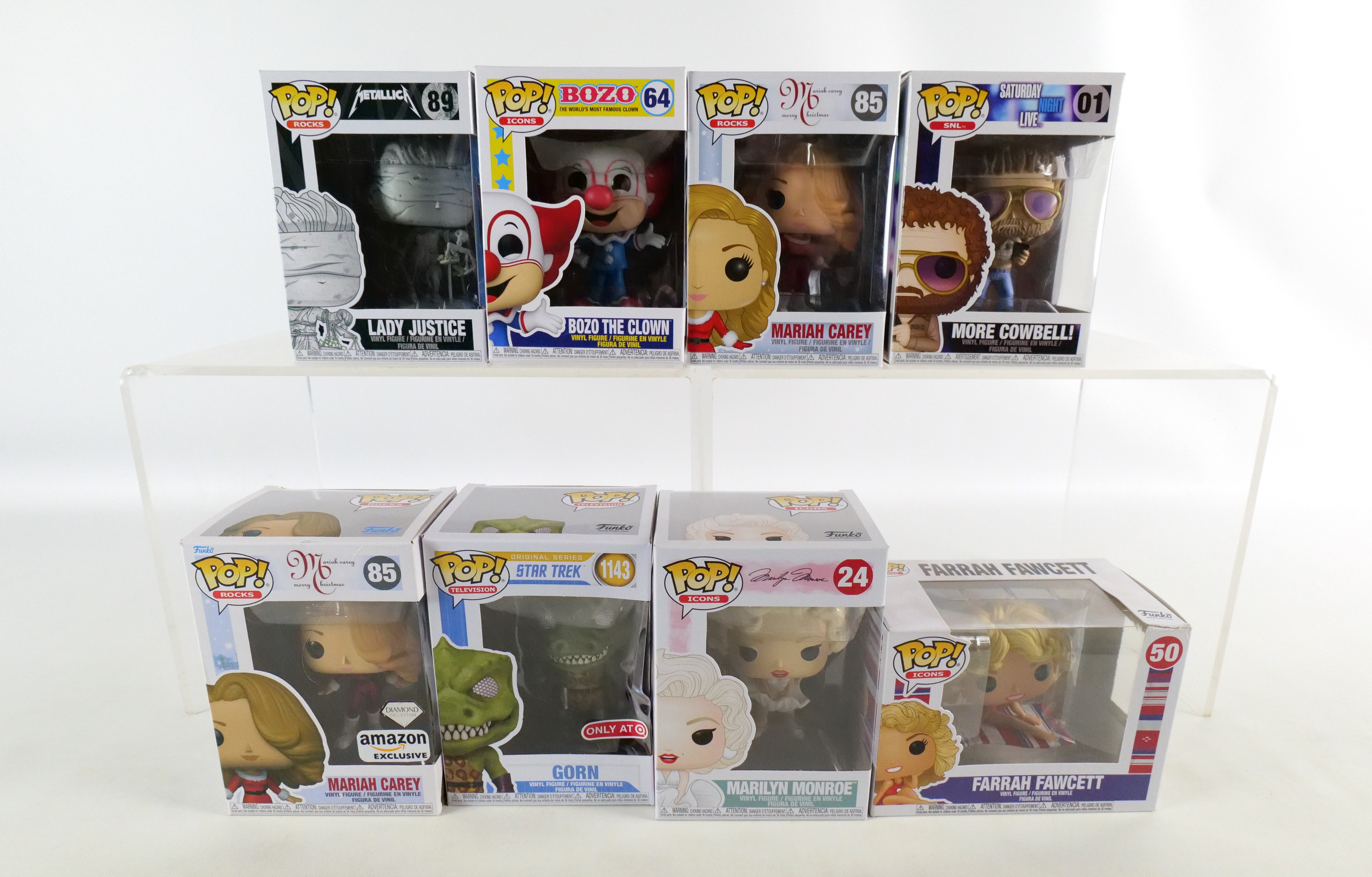 Lot of 8 Mixed Funko Pops. Including Star Trek: Gorn #1143 Target Exclusive – Damage on plastic, Icons: Marilyn Monroe #24, Farrah Fawcett #50 – Damage to top corner of box, and Bozo the Clown #64, Saturday Night Live: More Cowbell #01, and Rocks: Mariah Carey #85 Common and Amazon Exclusive, and Metallica Lady Justice #89. All pops are in new condition and come in the original boxes. The boxes may have slight wear/slight creasing/dings from storage. All invoices must be paid within 24 hours of the sale. We offer multiple shipping options please read the shipping terms to understand your options. We also offer Pick-Ups Friday, Saturday, and Monday immediately following the sale. BY APPOINTMENT ONLY.