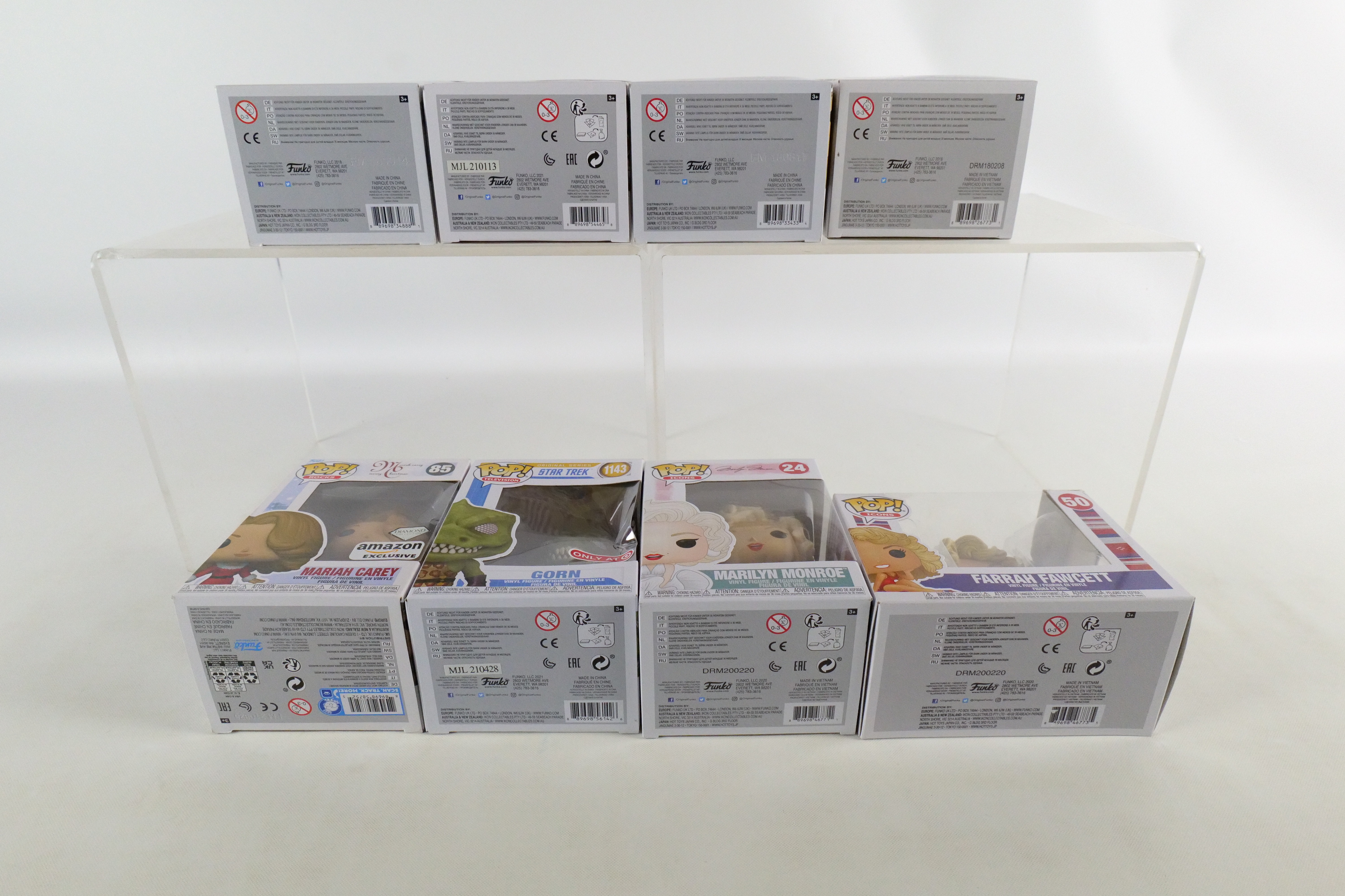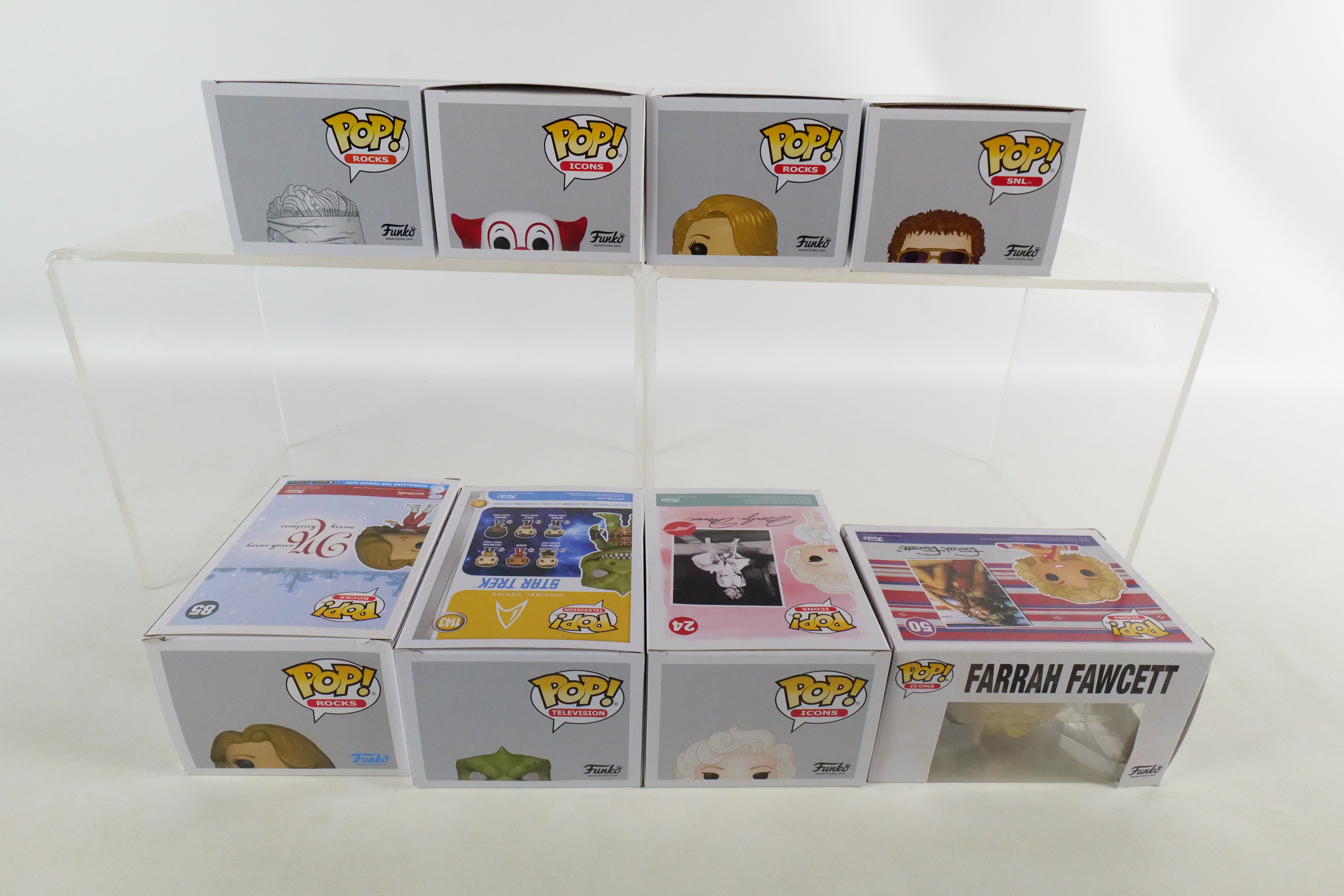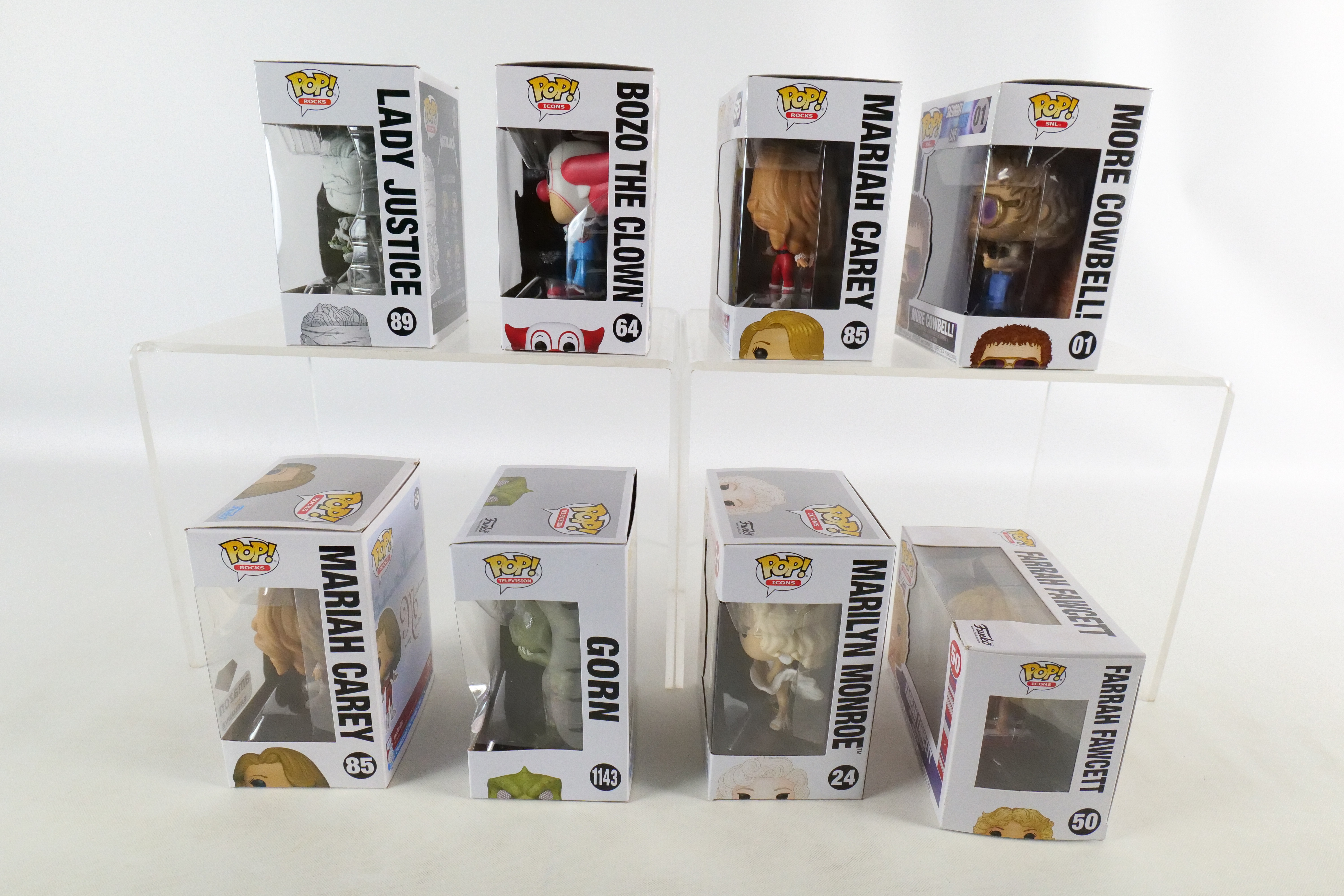 Lot of 8 Mixed Funko Pops. Including Star Trek: Gorn #1143 Target Exclusive – Damage on plastic, Icons: Marilyn Monroe #24, Farrah Fawcett #50 – Damage to top corner of box, and Bozo the Clown #64, Saturday Night Live: More Cowbell #01, and Rocks: Mariah Carey #85 Common and Amazon Exclusive, and Metallica Lady Justice #89. All pops are in new condition and come in the original boxes. The boxes may have slight wear/slight creasing/dings from storage. All invoices must be paid within 24 hours of the sale. We offer multiple shipping options please read the shipping terms to understand your options. We also offer Pick-Ups Friday, Saturday, and Monday immediately following the sale. BY APPOINTMENT ONLY.