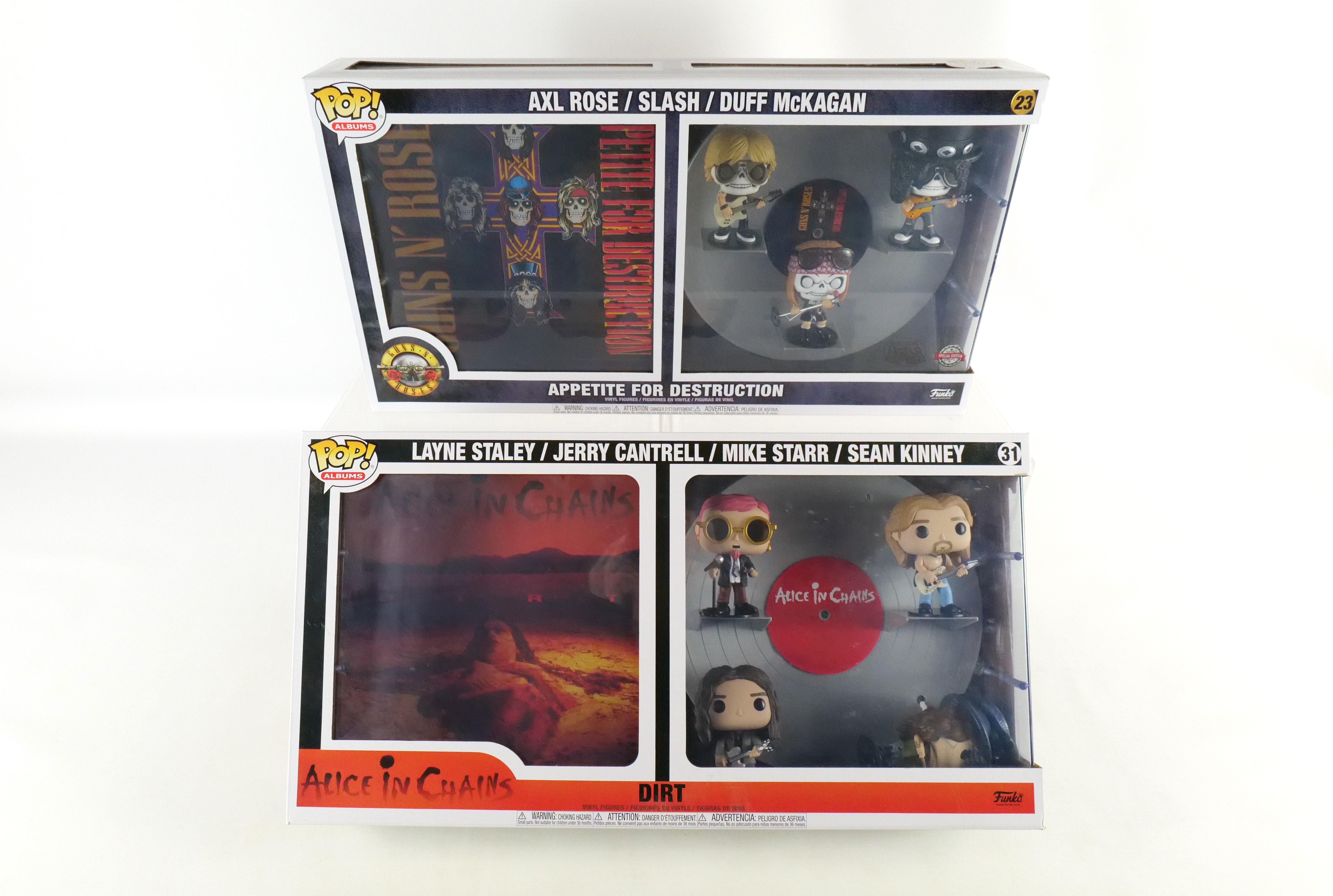 Lot of 2 Funko Pop Albums. Including Guns N Roses – Appetite for Destruction #23 Special Edition and Alice in Chains – Dirt #31. All pops are in new condition and come in the original boxes. The boxes may have slight wear/slight creasing/dings from storage. All invoices must be paid within 24 hours of the sale. We offer multiple shipping options please read the shipping terms to understand your options. We also offer Pick-Ups Friday, Saturday, and Monday immediately following the sale. BY APPOINTMENT ONLY.