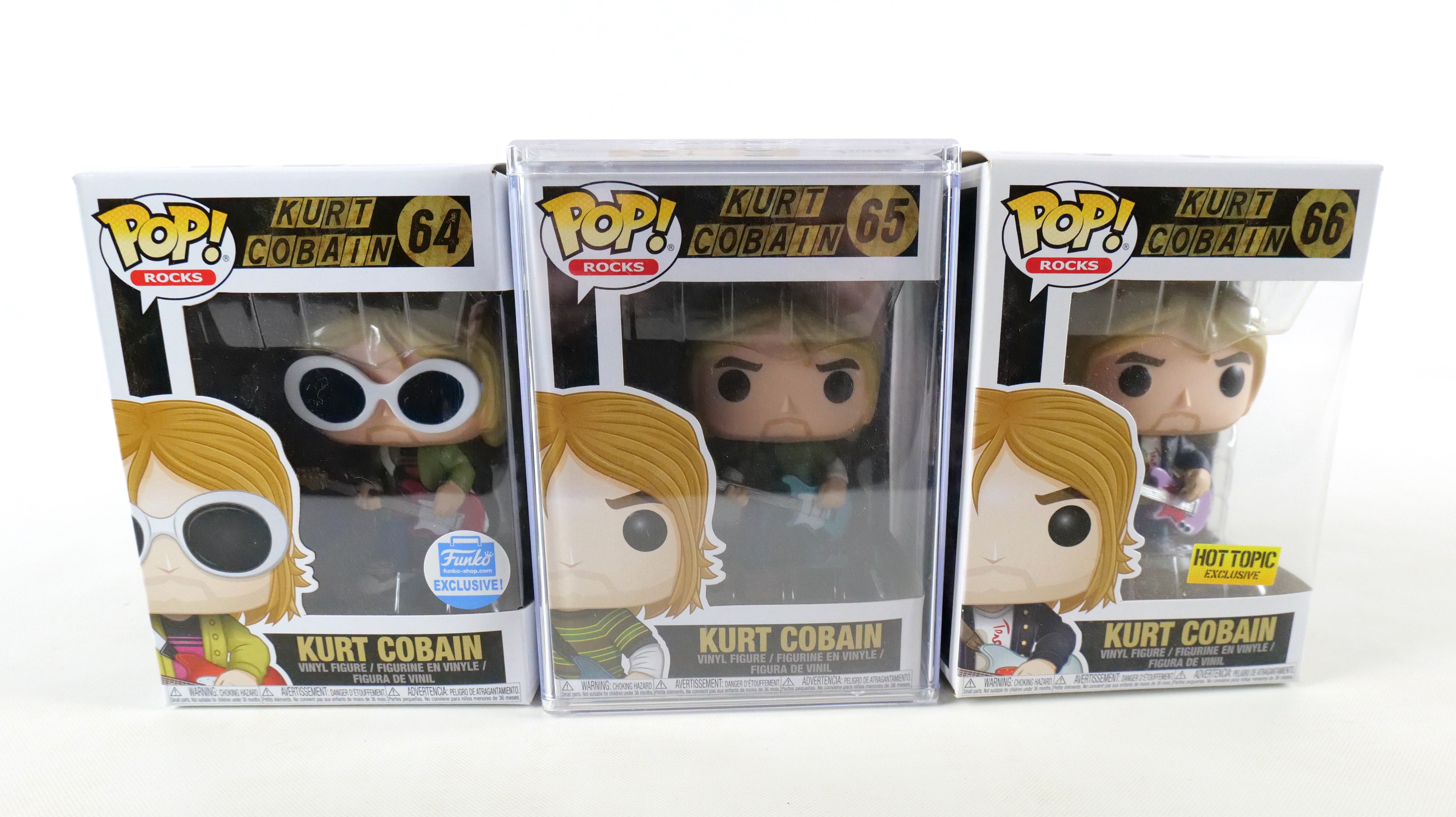 Lot of 3 Funko Kurt Cobain Pops. Including #64 Funko Exclusive, #65 Common, and #66 Hot Topic Exclusive. All pops are in new condition and come in the original boxes. The boxes may have slight wear/slight creasing/dings from storage. All invoices must be paid within 24 hours of the sale. We offer multiple shipping options please read the shipping terms to understand your options. We also offer Pick-Ups Friday, Saturday, and Monday immediately following the sale. BY APPOINTMENT ONLY.