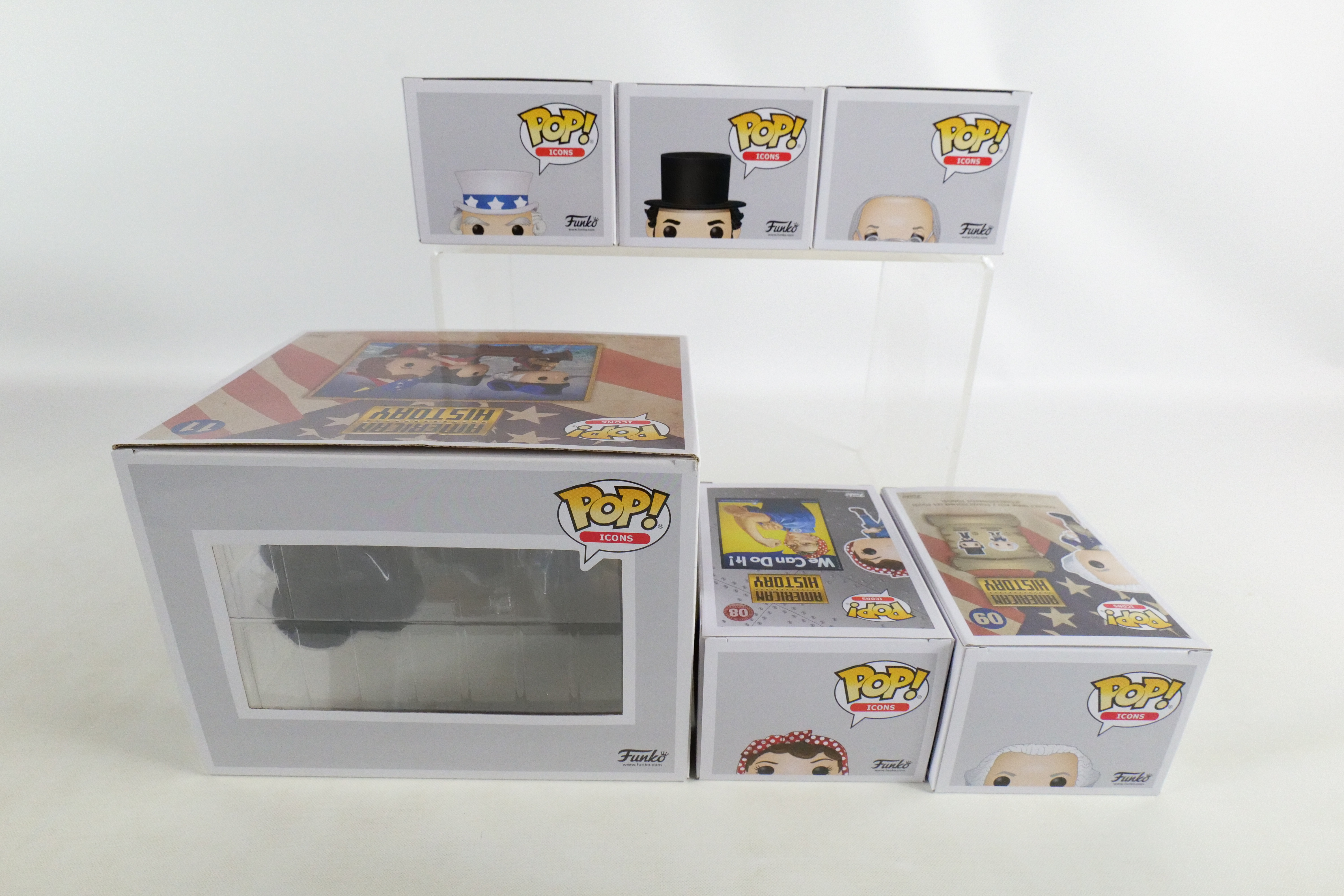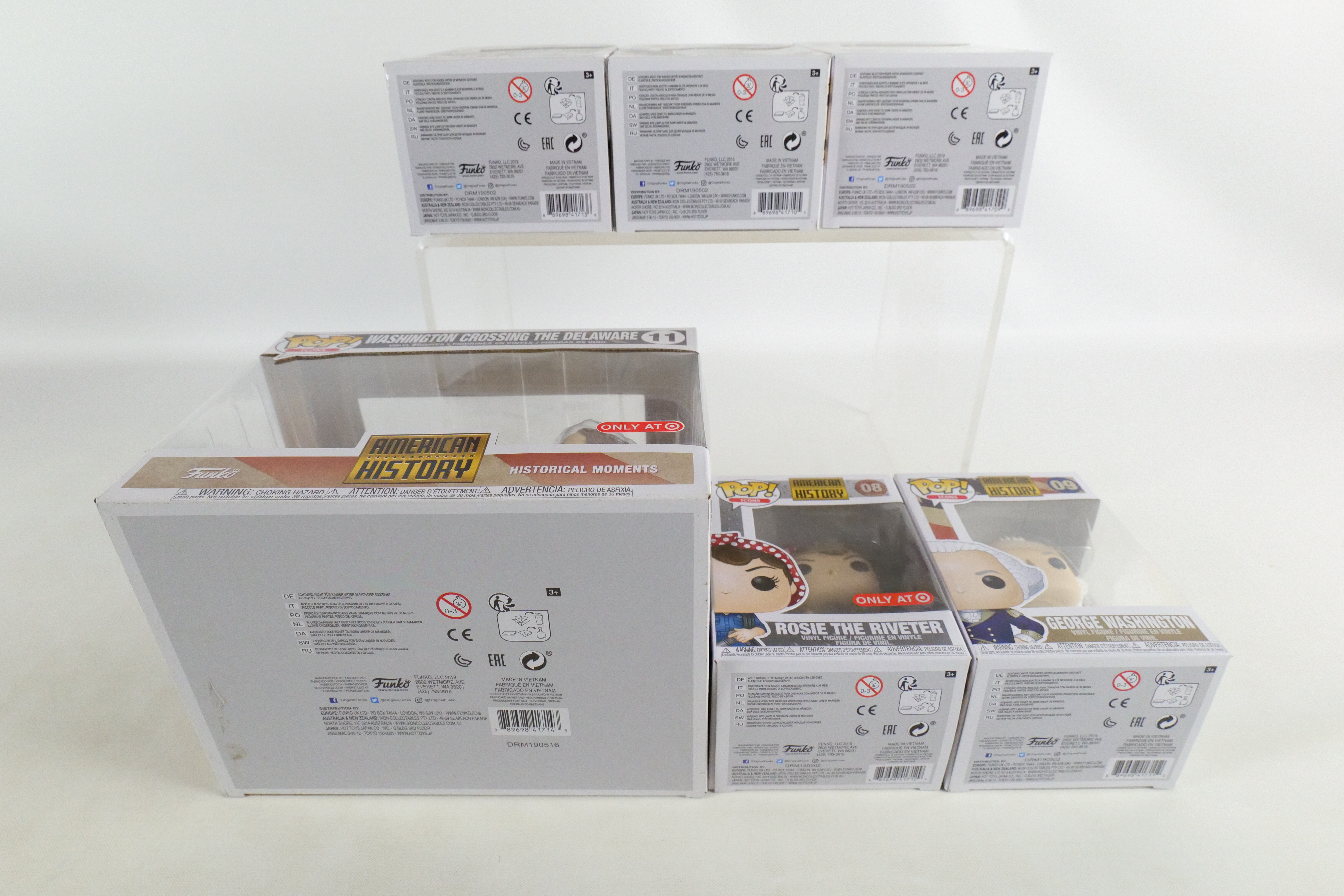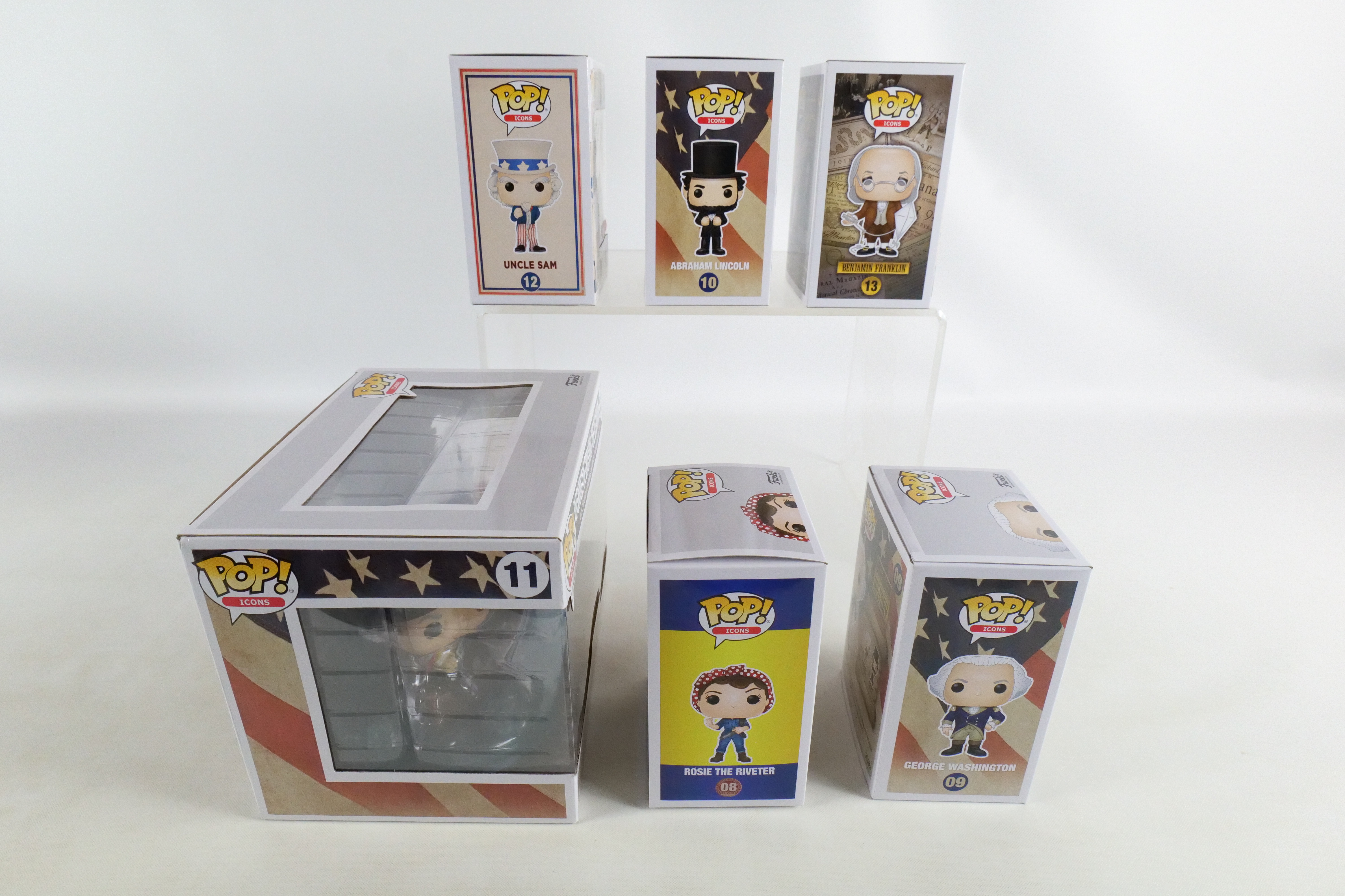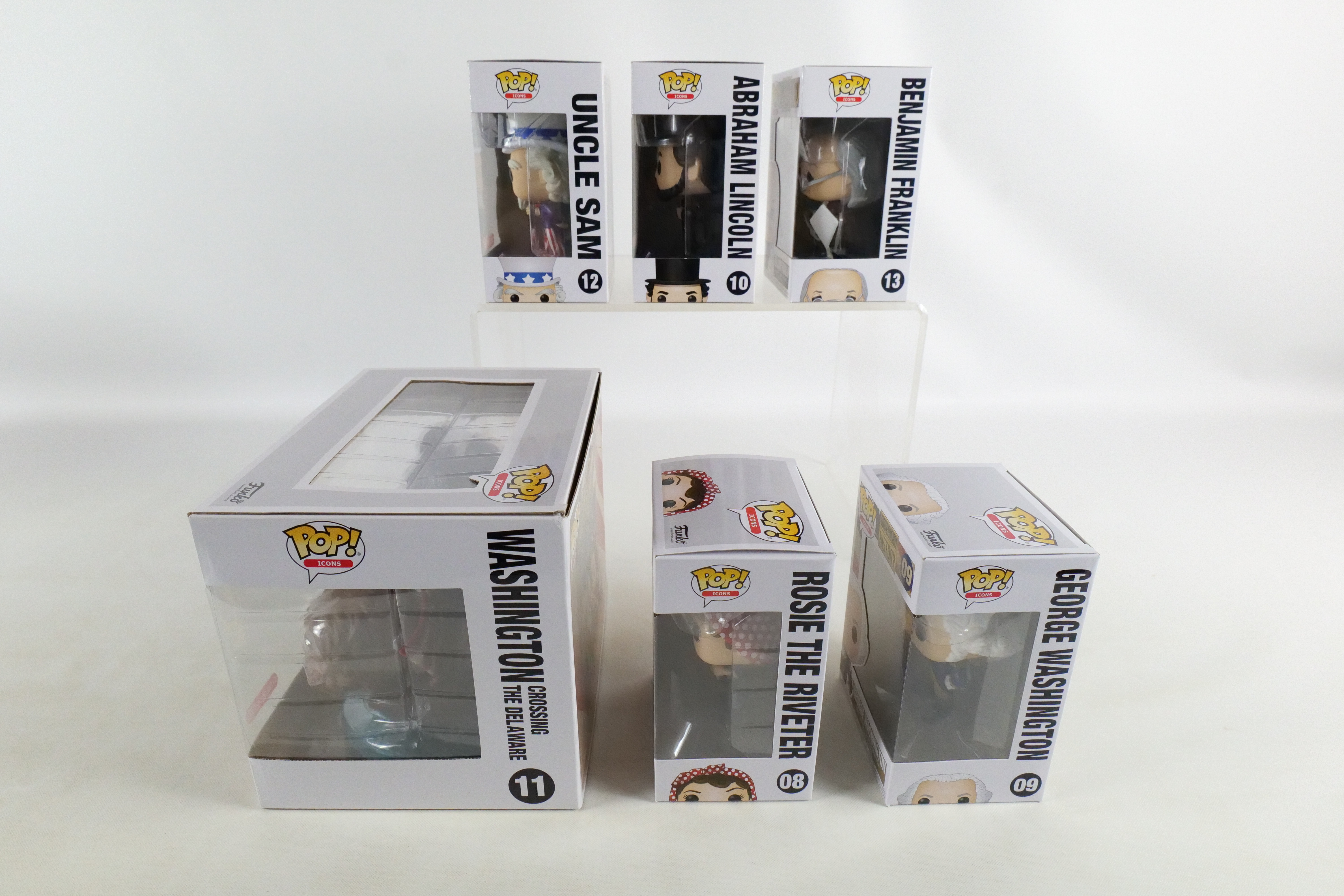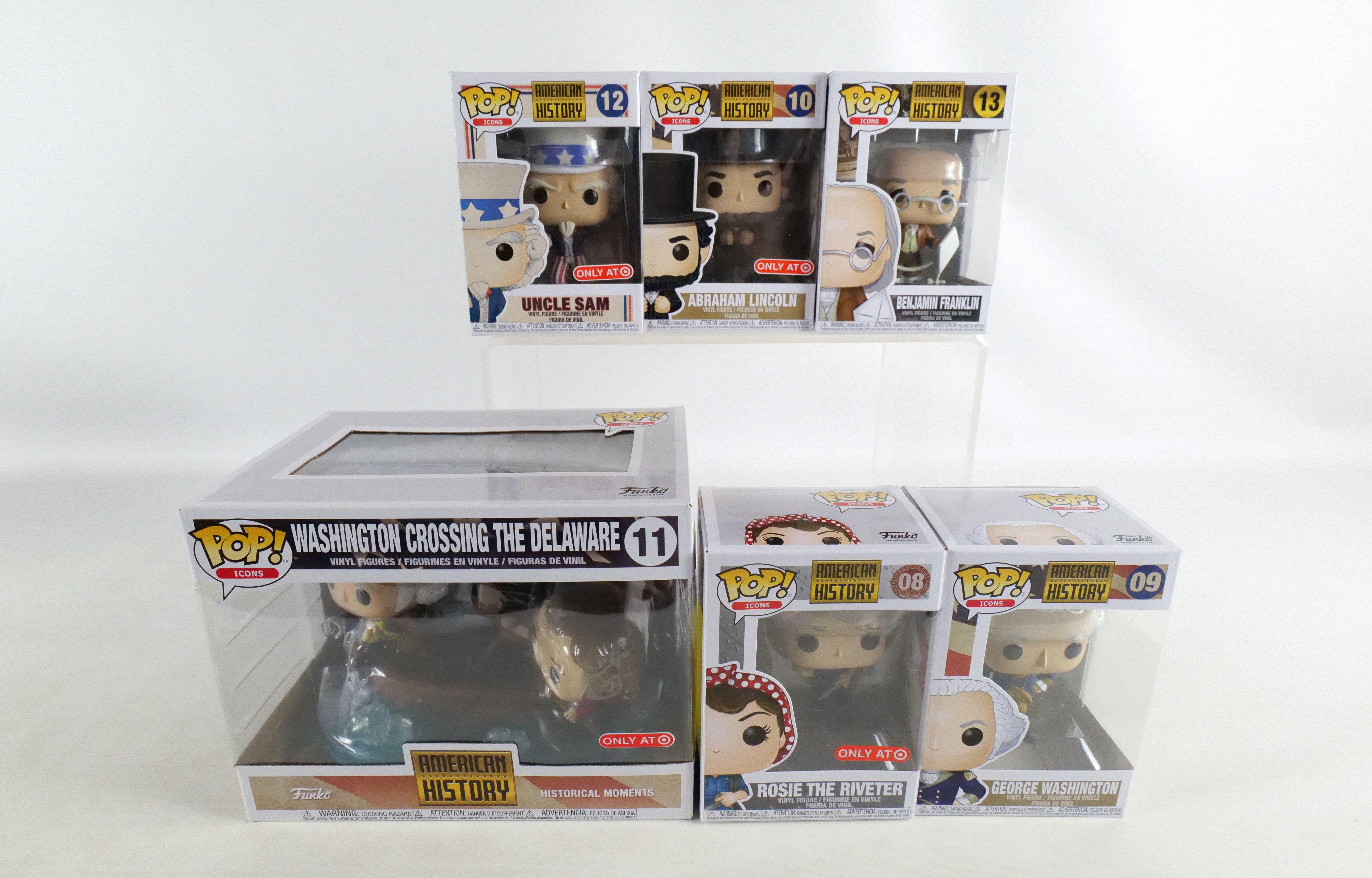 Lot of 6 Funko American History Pops. Including Rosie the Riveter #08 Target Exclusive, George Washington #09, Abraham Lincoln #10 Target Exclusive, Washington Crossing the Delaware #11 Target Exclusive, Uncle Sam #12 Target Exclusive, and Benjamin Franklin #13. All pops are in new condition and come in the original boxes. The boxes may have slight wear/slight creasing/dings from storage. All invoices must be paid within 24 hours of the sale. We offer multiple shipping options please read the shipping terms to understand your options. We also offer Pick-Ups Friday, Saturday, and Monday immediately following the sale. BY APPOINTMENT ONLY.