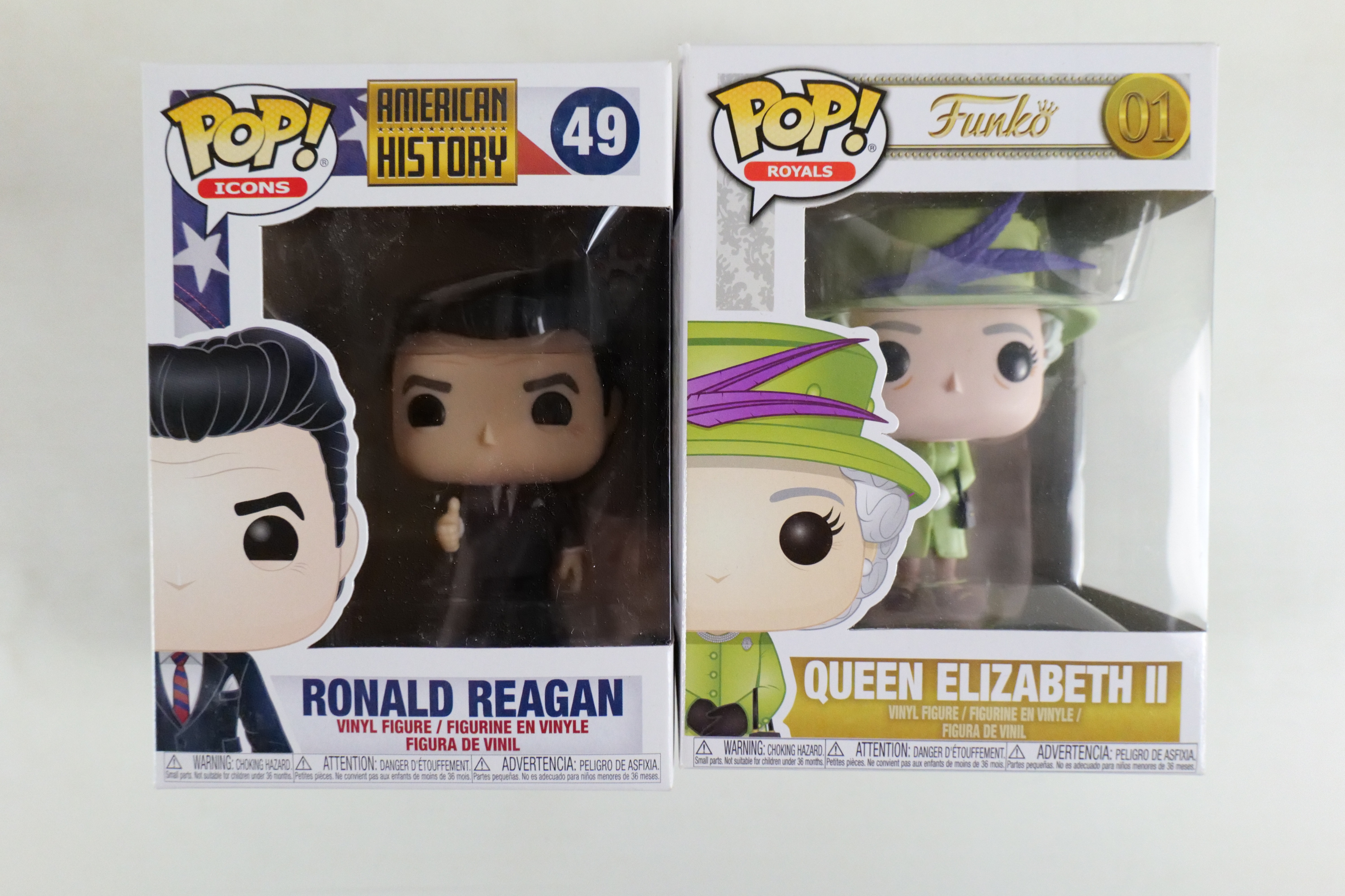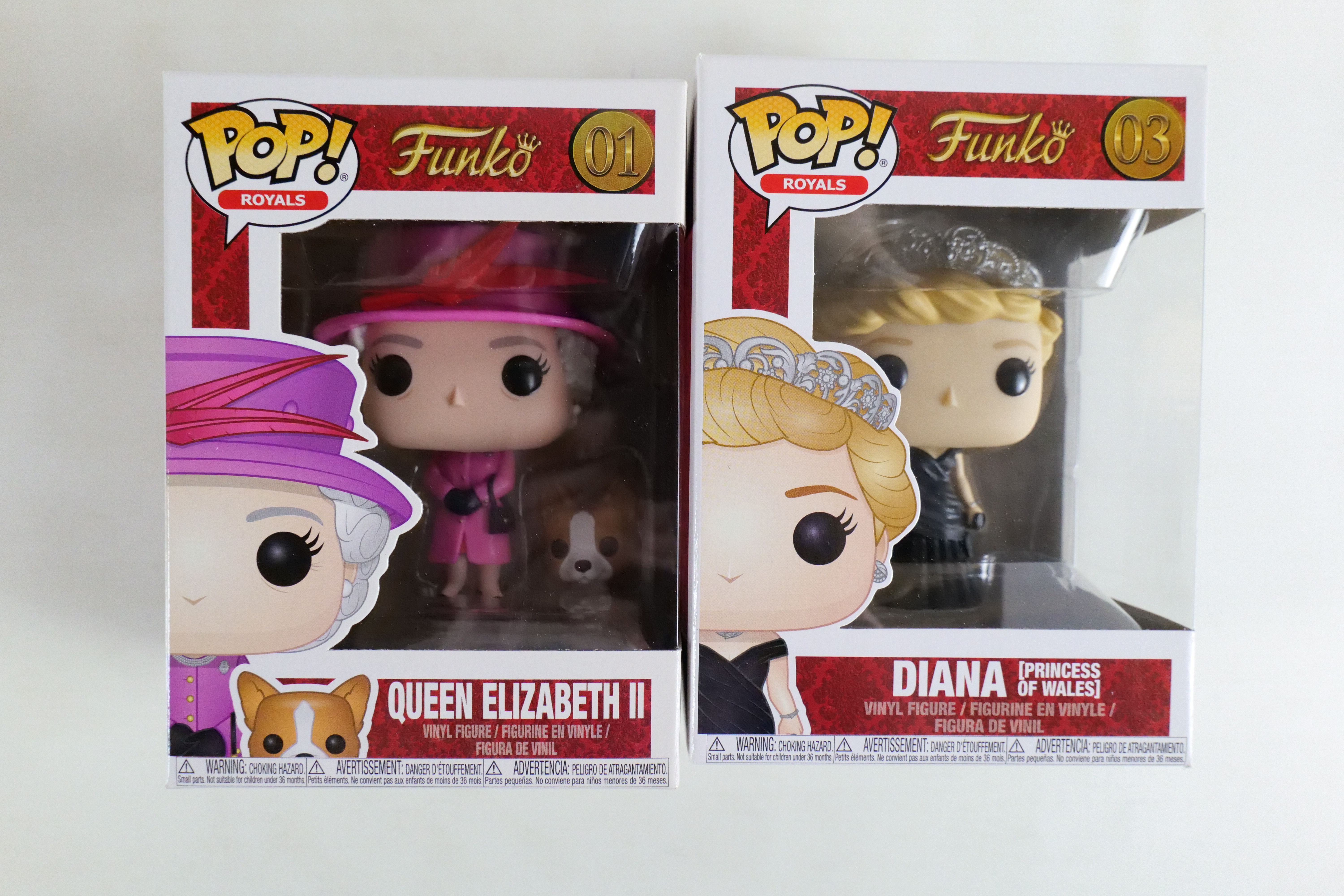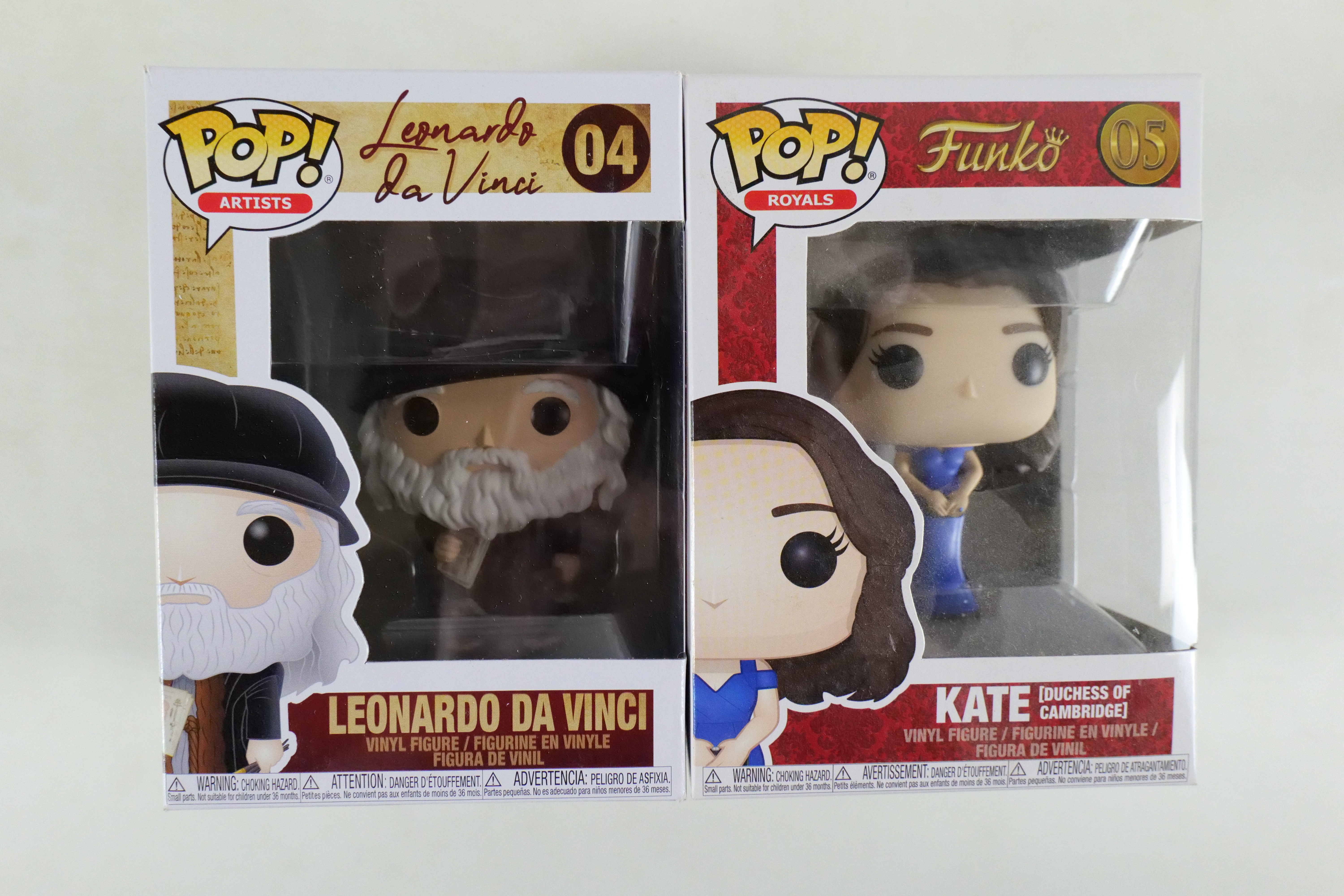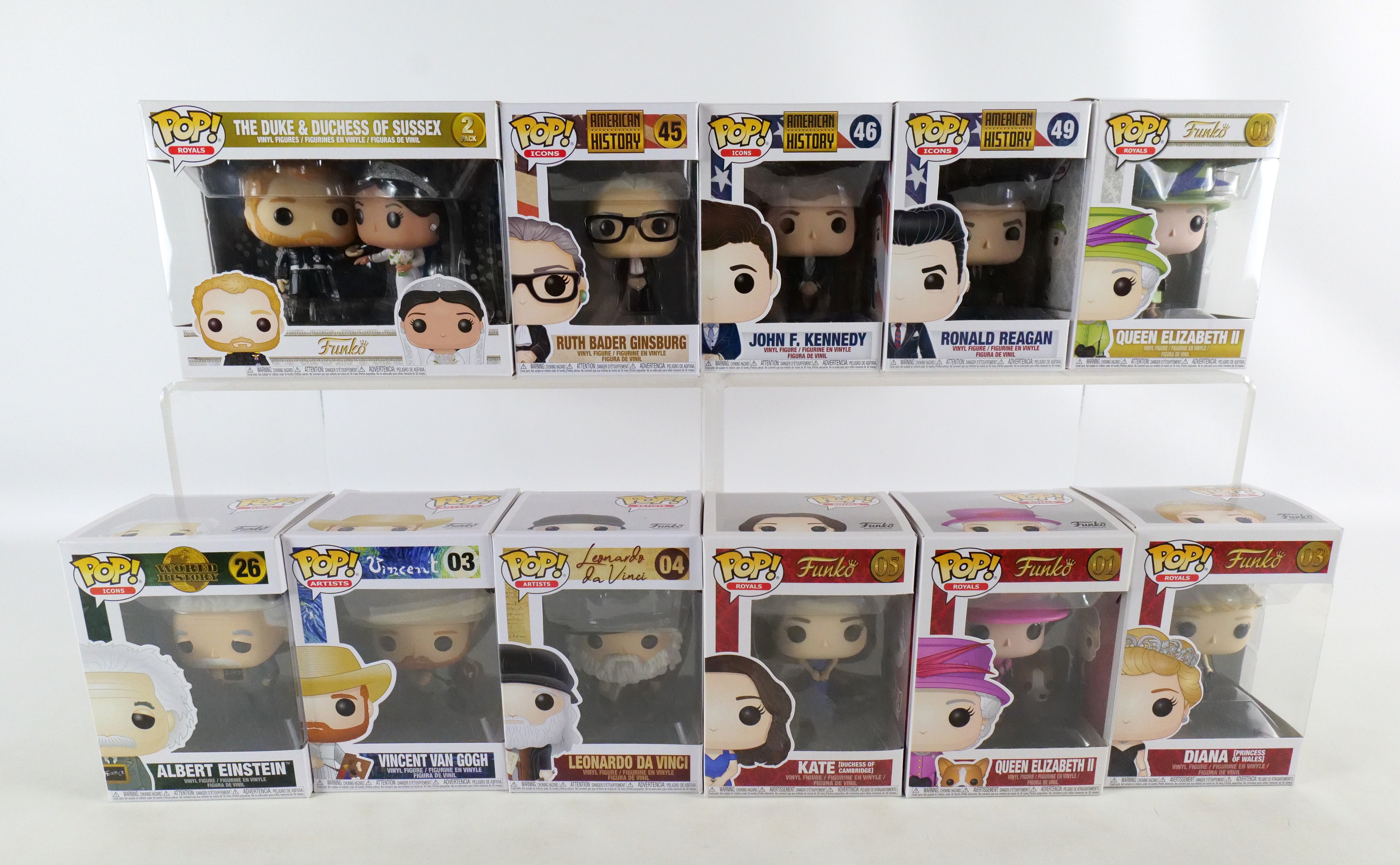 Lot of 11 Funko Pops. Including Royals: Queen Elizabeth #01 – Red and Green, Diana (Princess of Wales) #03, Kate (Duchess of Cambridge) #05 and The Duke and Duchess of Sussex 2 Pack, American History: Ruth Bader Ginsburg #45, John F. Kennedy #46, Ronald Reagan #49, World History: Albert Einstein #26, Vincent Van Gogh #03 and Leonardo Di Vinci #04. All pops are in new condition and come in the original boxes. The boxes may have slight wear/slight creasing/dings from storage. All invoices must be paid within 24 hours of the sale. We offer multiple shipping options please read the shipping terms to understand your options. We also offer Pick-Ups Friday, Saturday, and Monday immediately following the sale. BY APPOINTMENT ONLY.